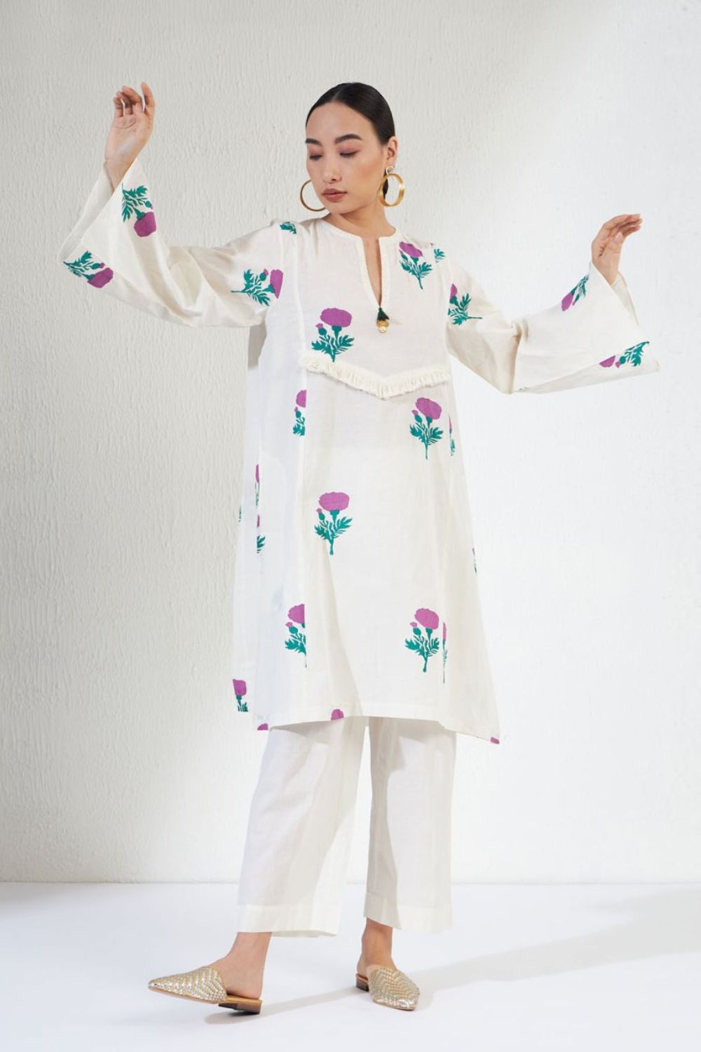 Hand block print, Cotton tassel on the yoke, relaxed fit
