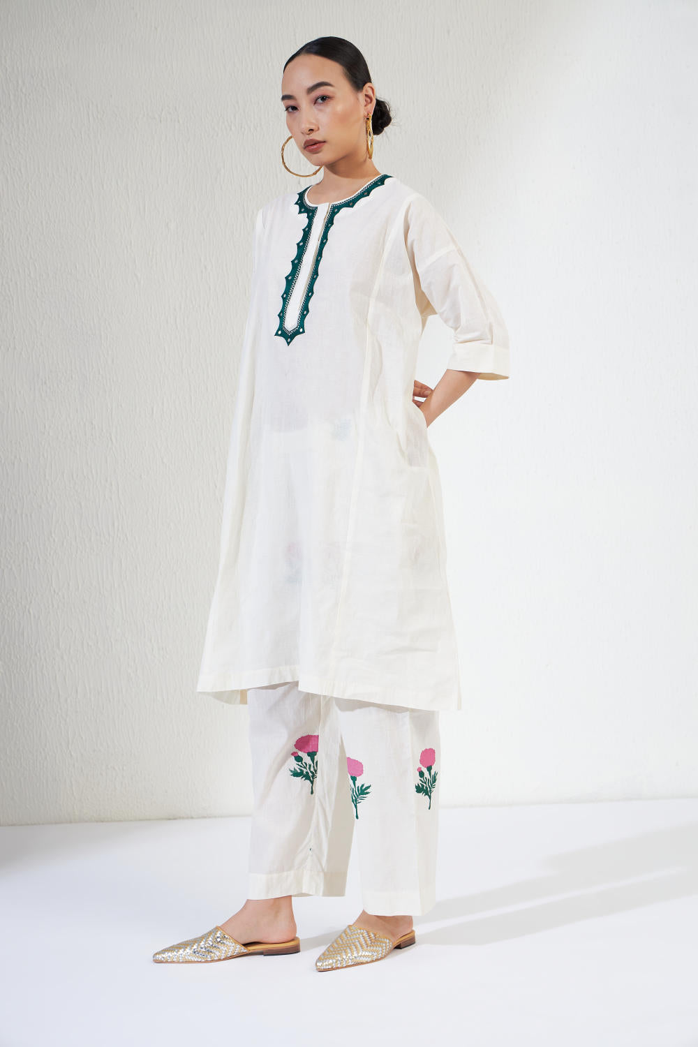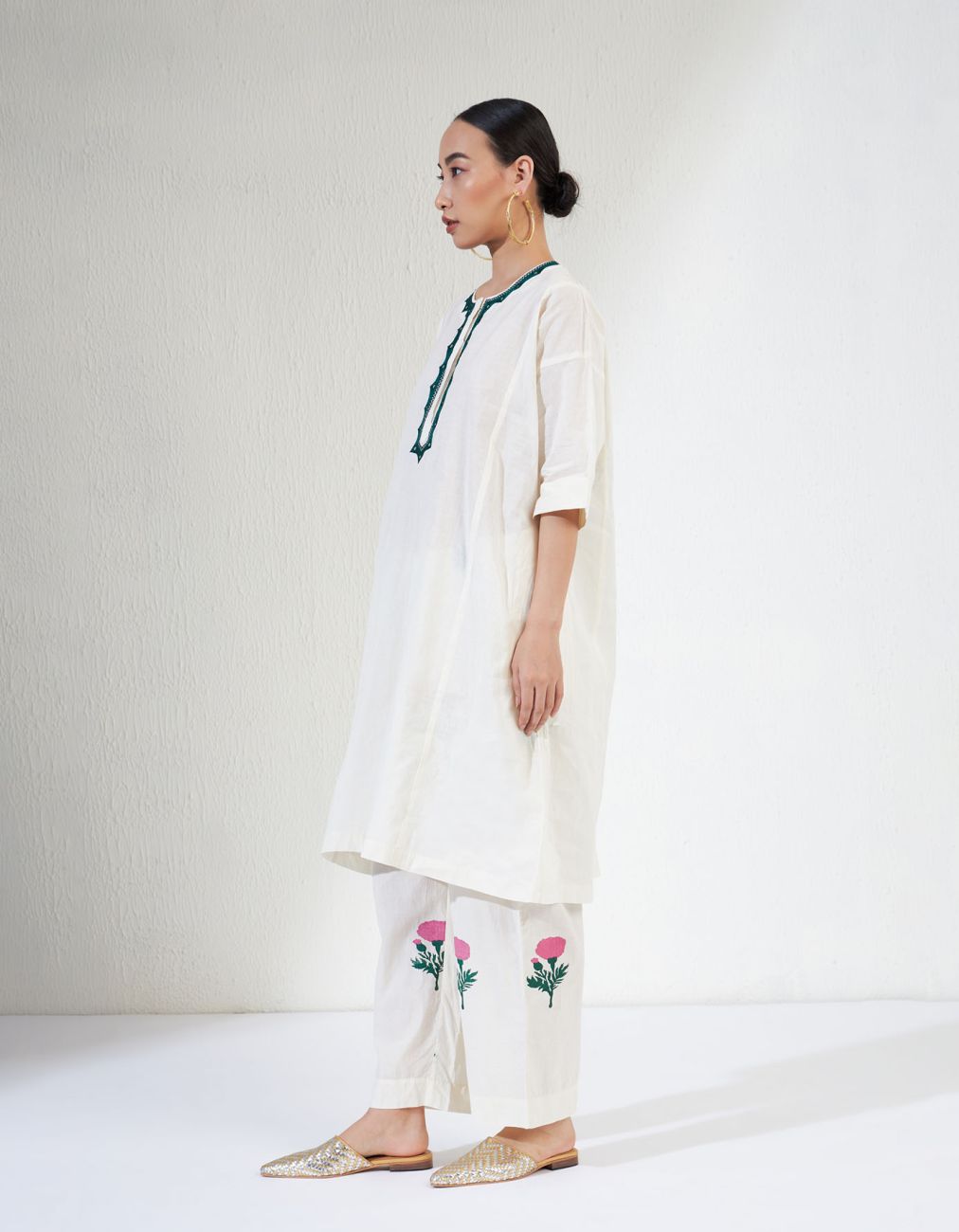 Hand Block Prints pants,Hand Embroidred ,Loose Fit Kurta