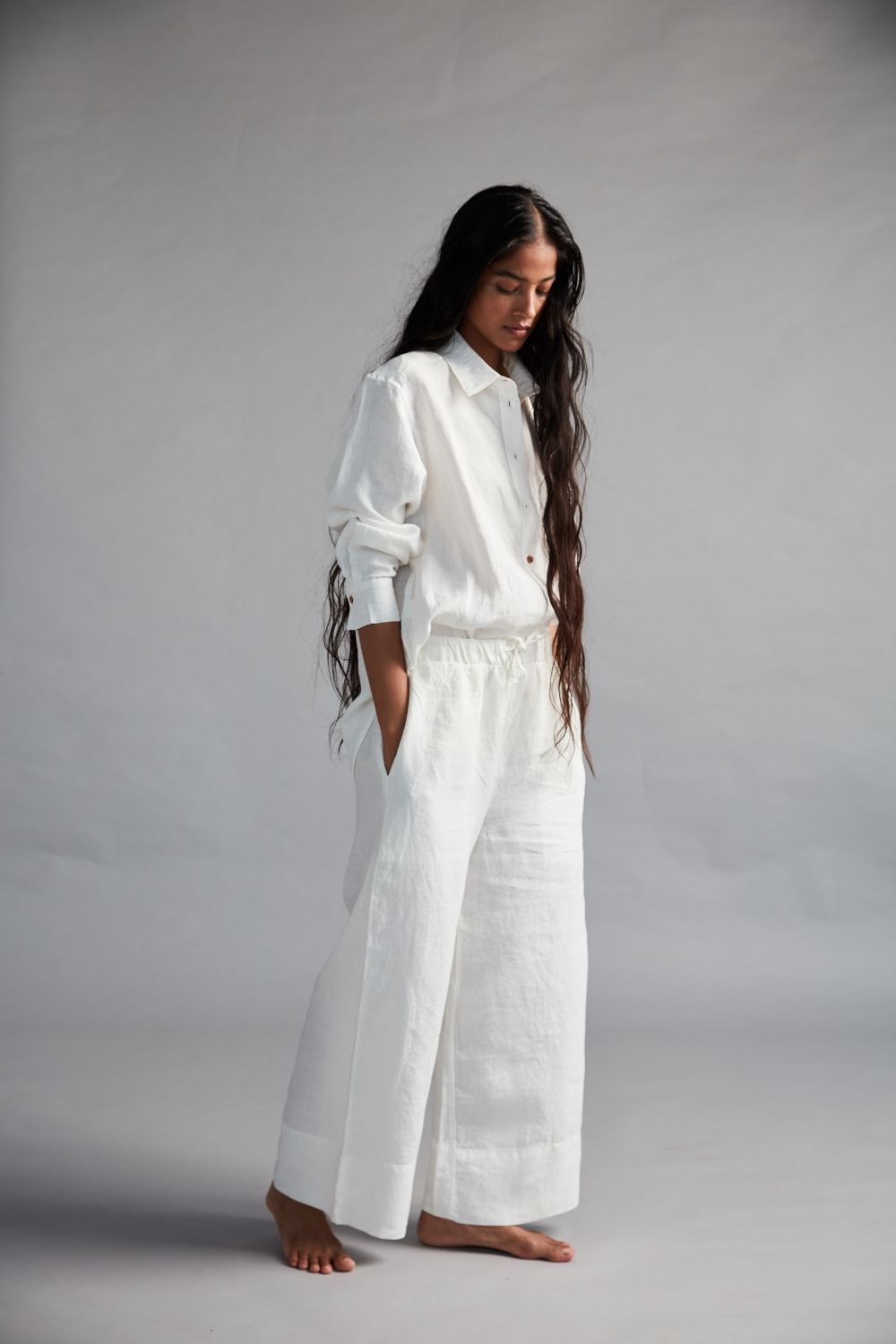 Their pieces are crafted exclusively from high-quality, ethically sourced Euroflax-certified linen, chosen for its purity, longevity, and low environmental impact. The brand’s design language mirrors the nature of the textile itself: clean-lined, airy, minimal, and beautifully unfussy. These are garments that live with you — softening, easing, and developing their own patina over time.