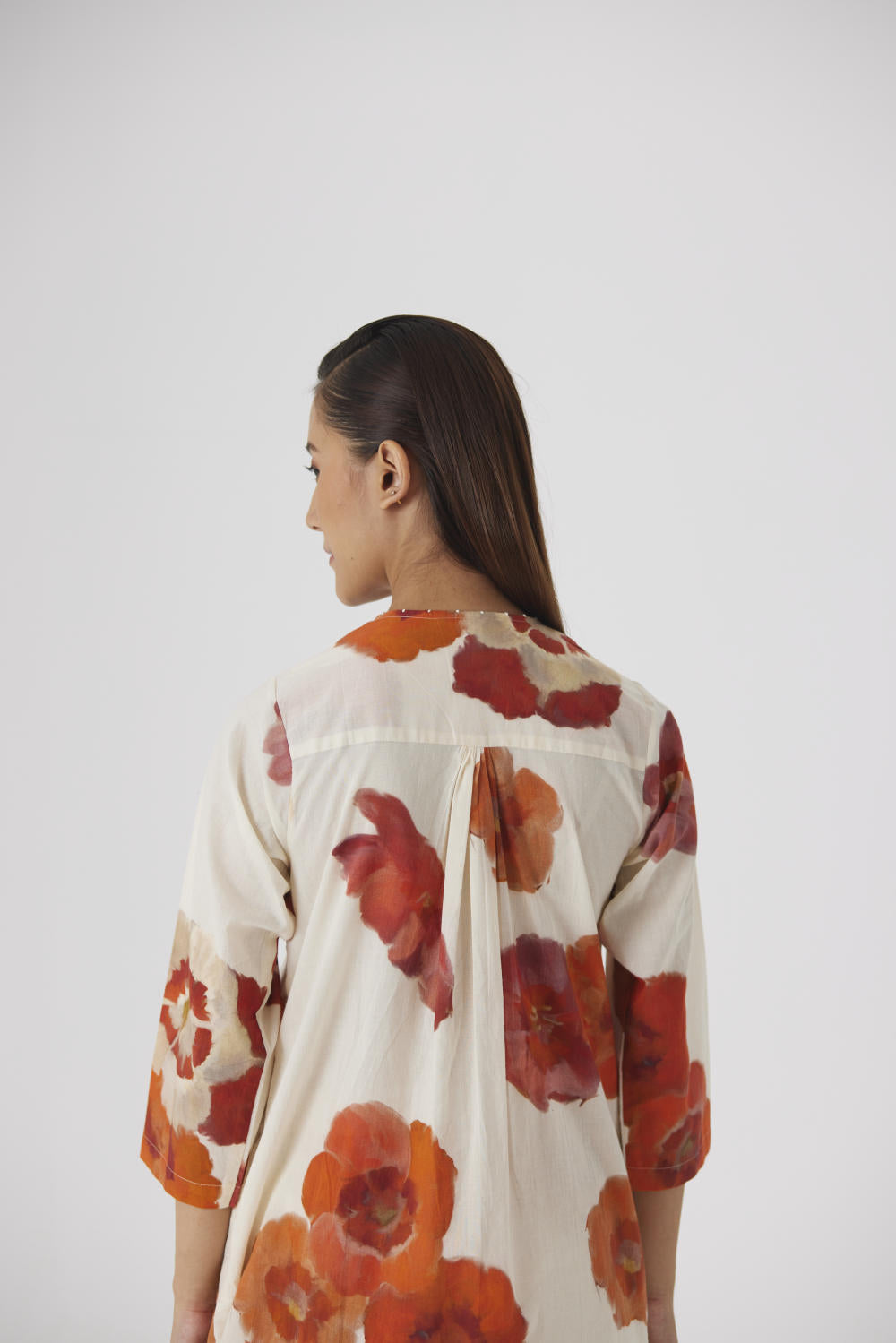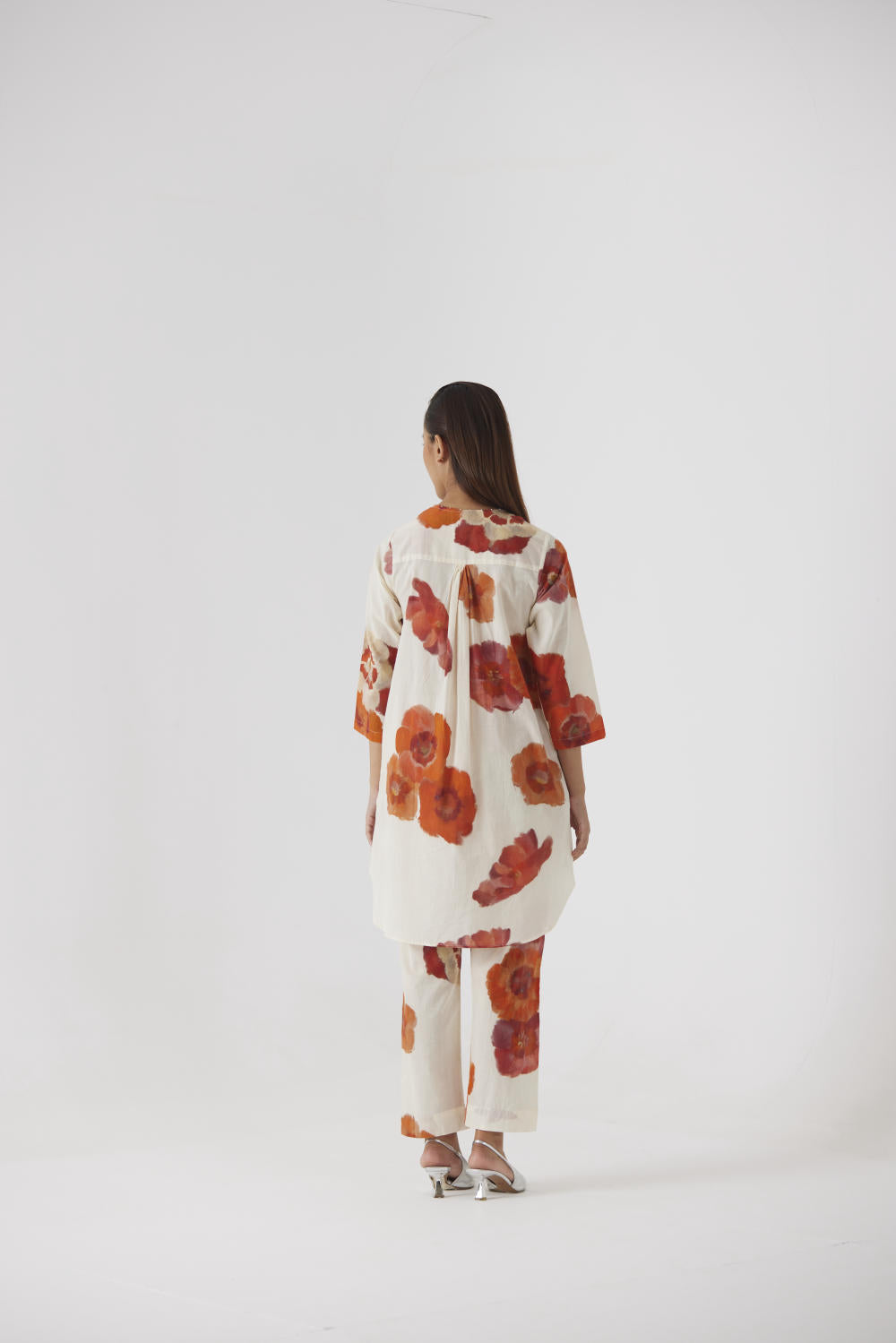 This print of the set is crafted in white colour with shades of massive poppies carefully printed on cotton