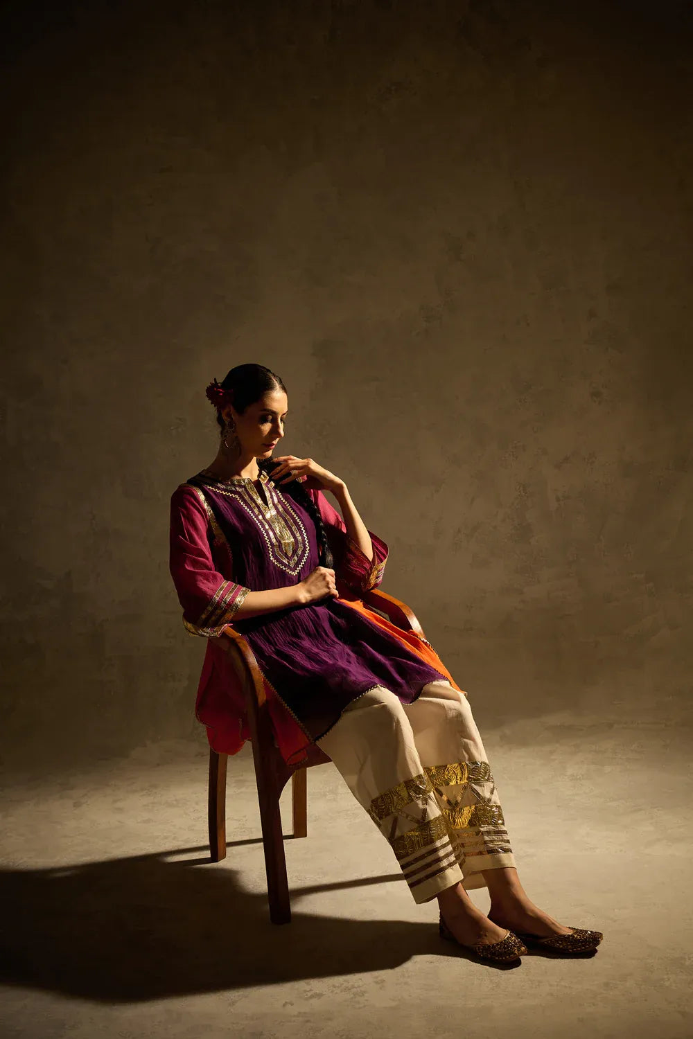 Fabric: Cotton chanderi kurta with cotton cambric salwar