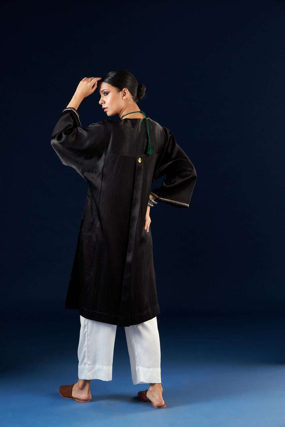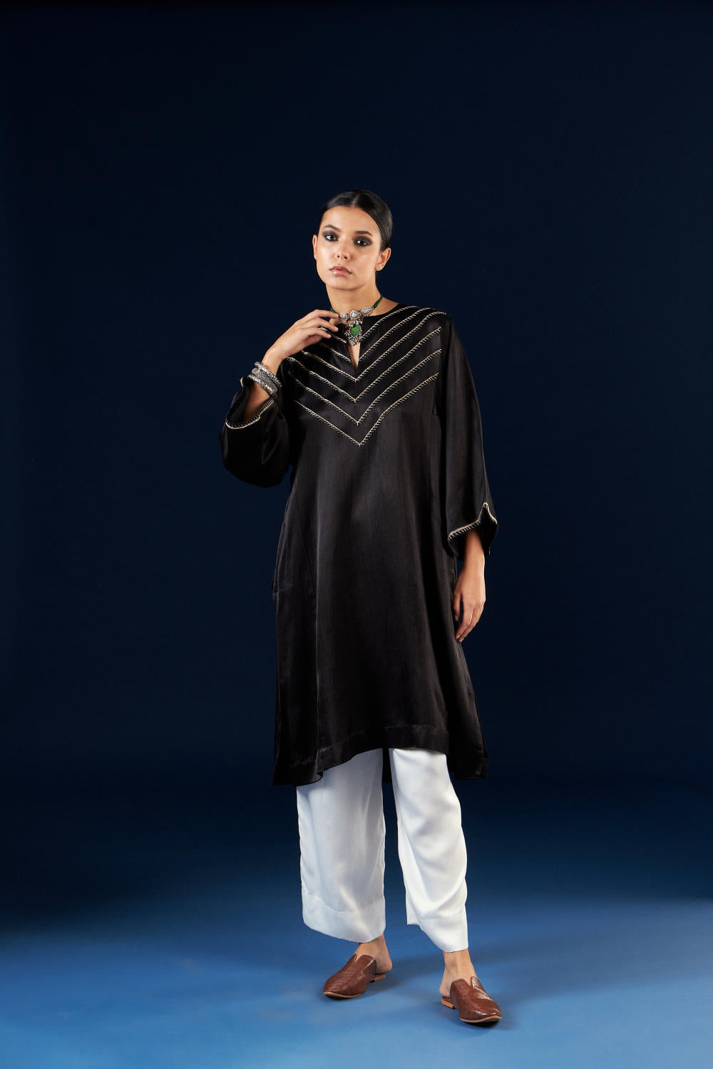 Kalidaar Kurta Set - Coal Black & Off white
