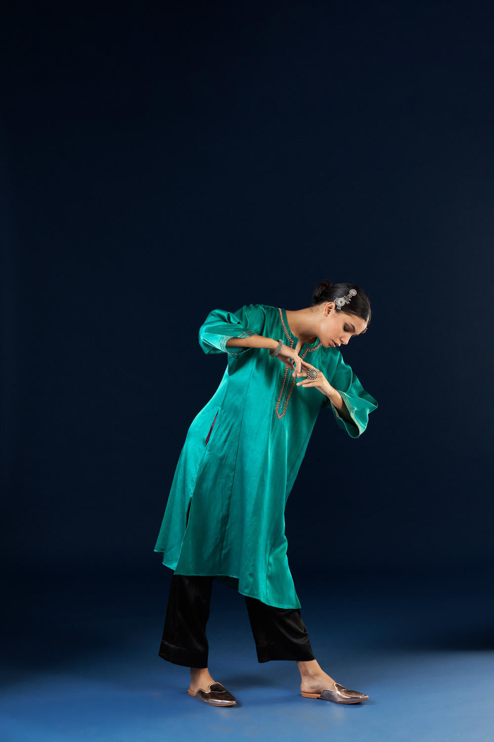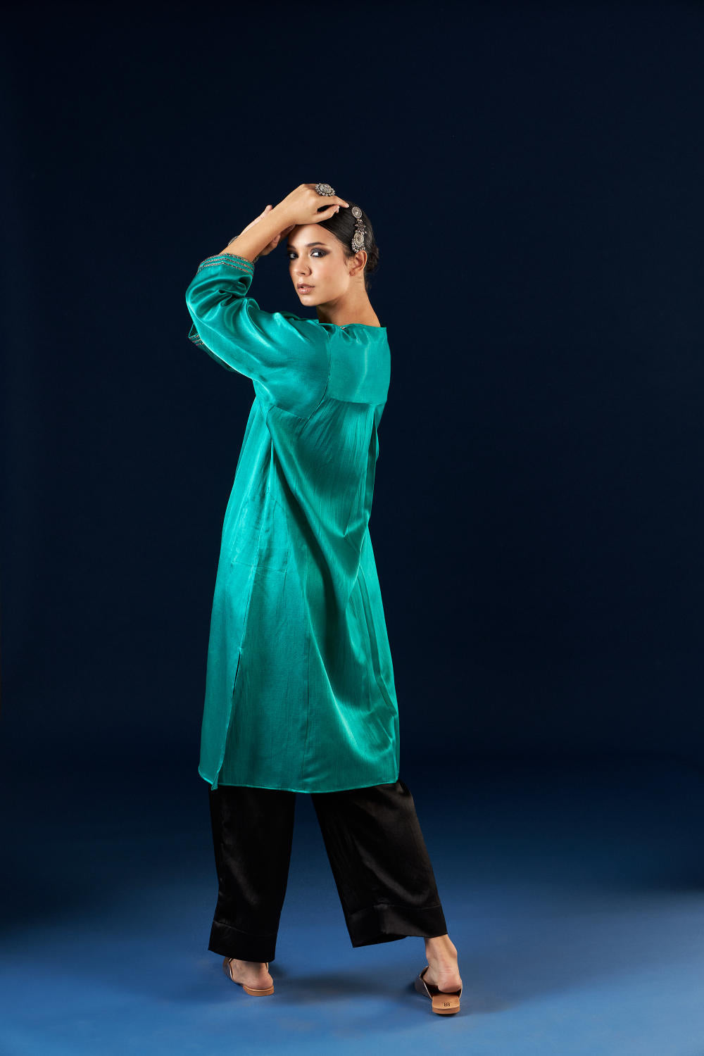 Kalidaar Kurta Set - Emerald green & Coal Black