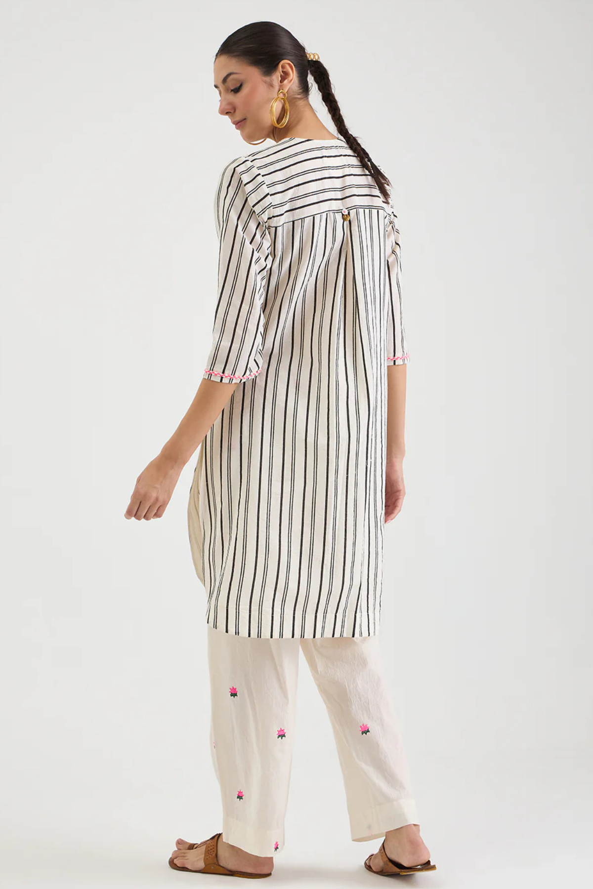 Classic kurta cut, hand embroidered and paired with delicate lotus print pants