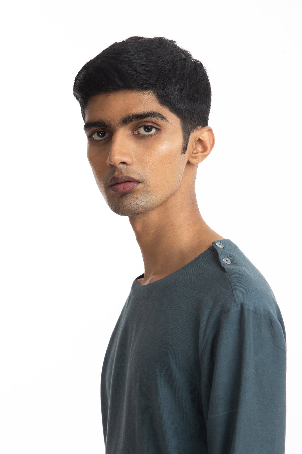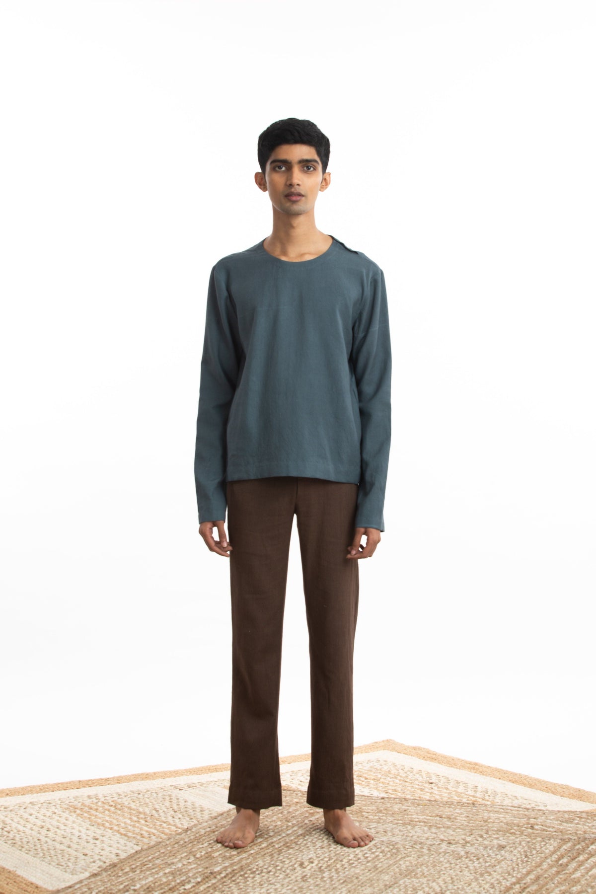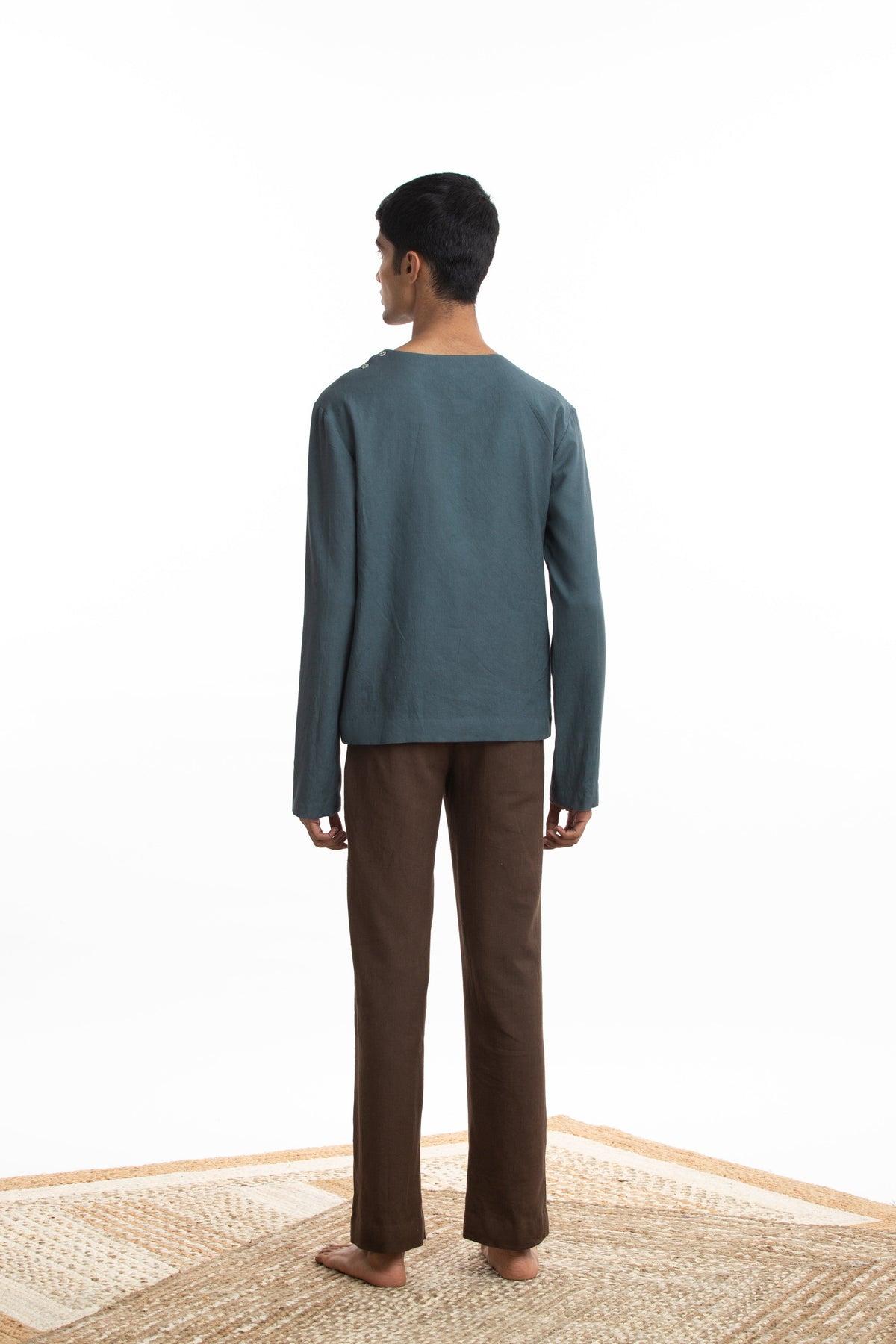 Handwoven Round Blue Pullover Zen Shirt Men Akaaro Men