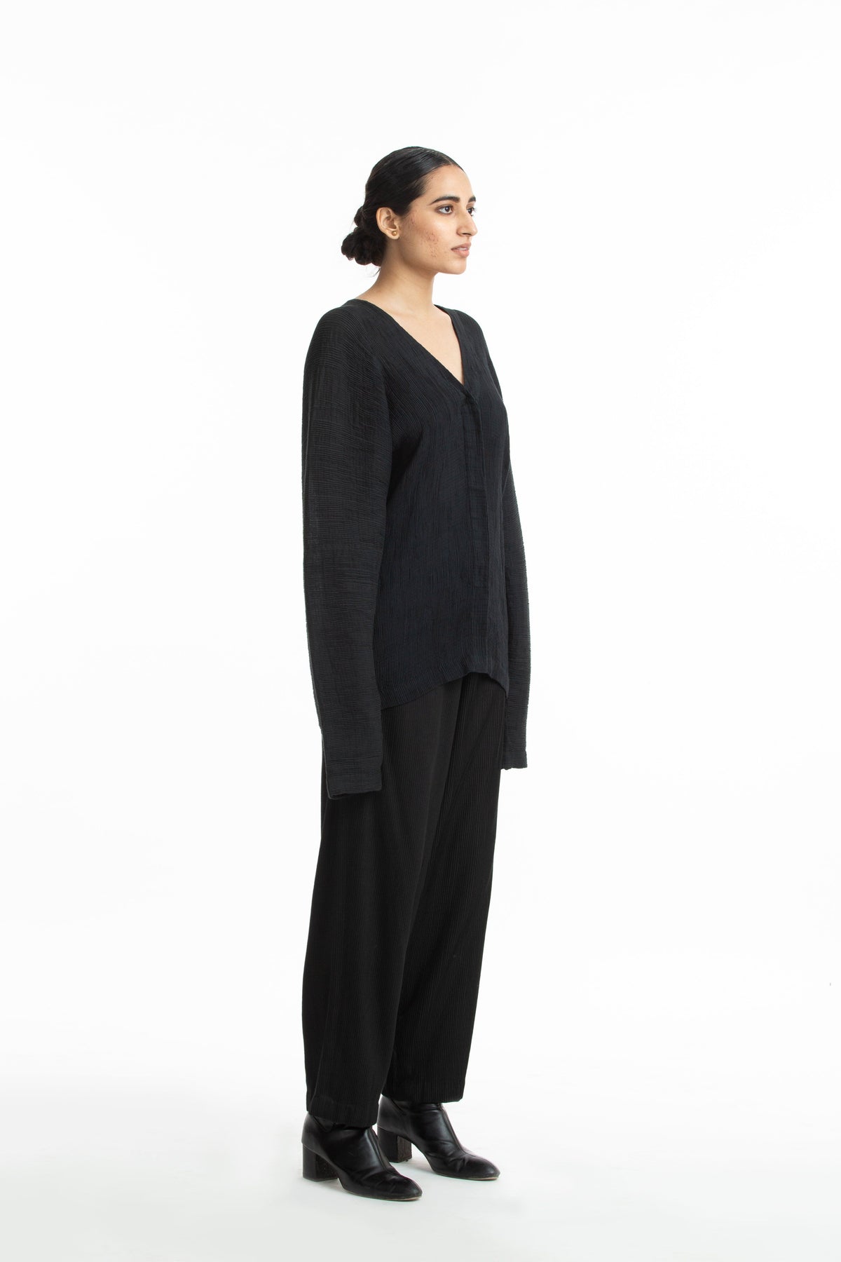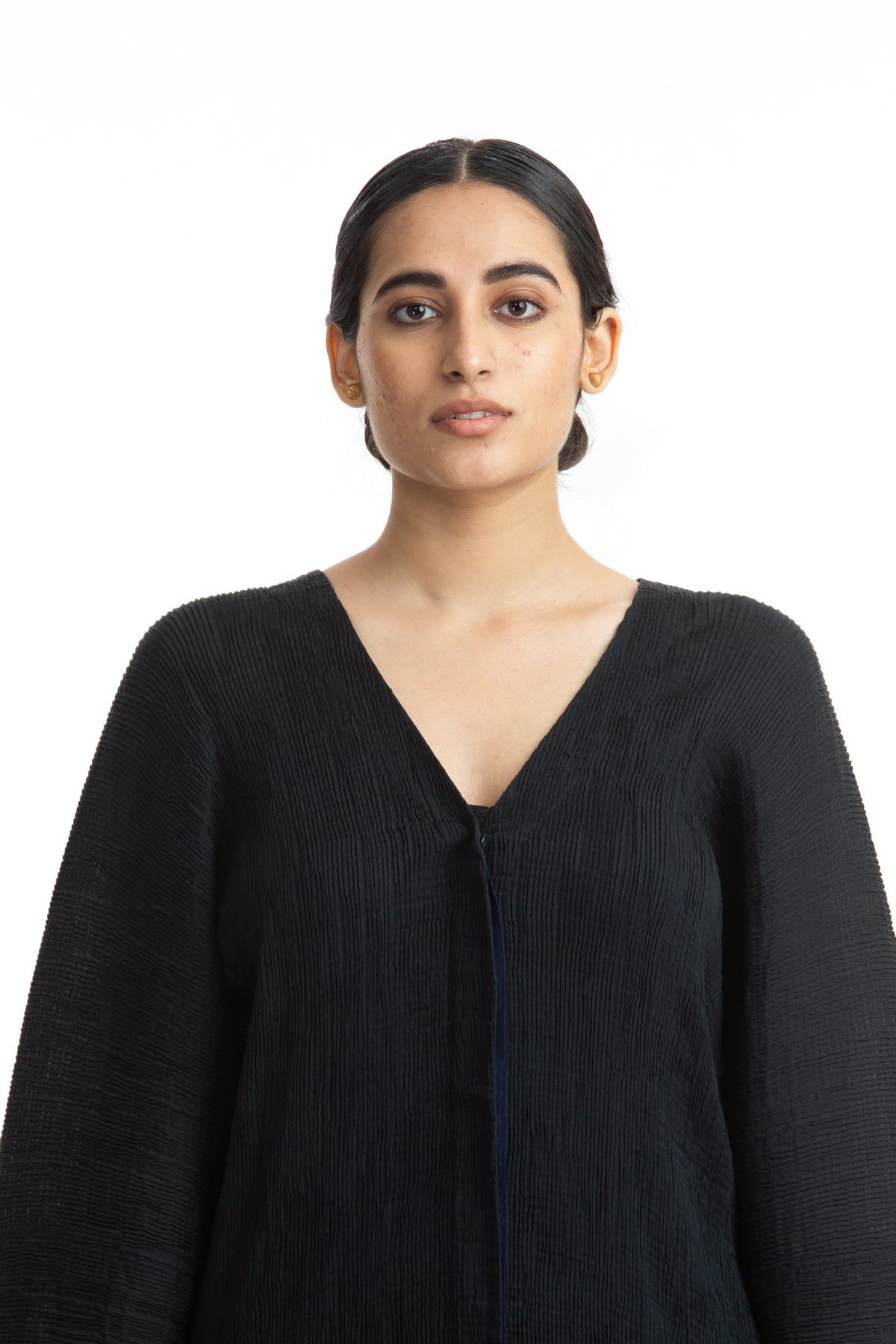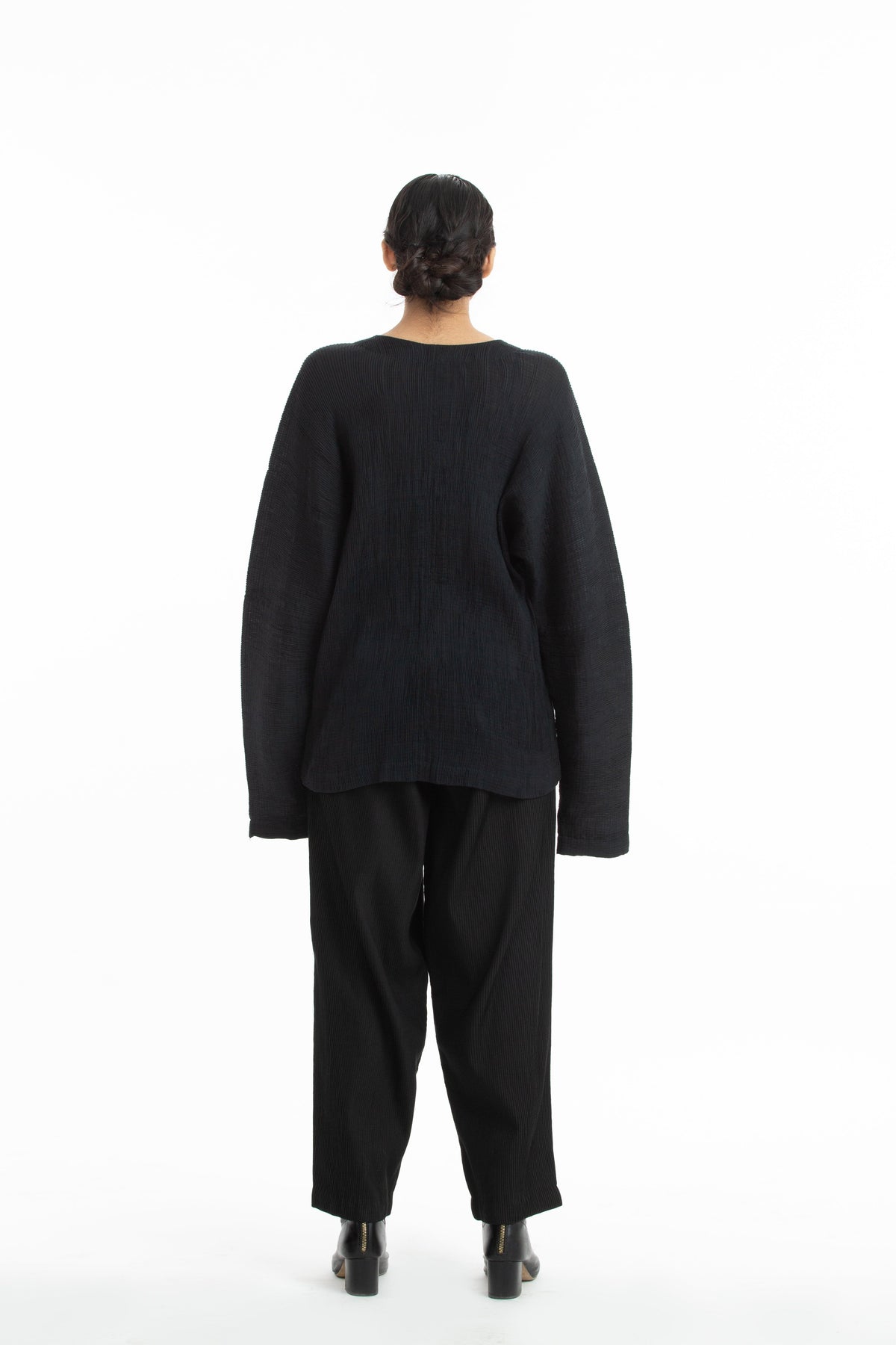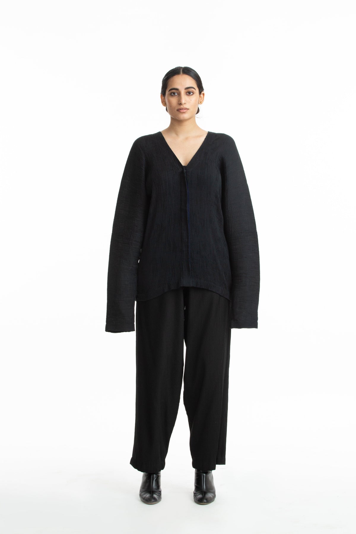 Handwoven in our signature Kinji ( Silk Cotton ) fabric, this top is oversized and is stretchable.The textile is designed & developed on a traditional jacquard