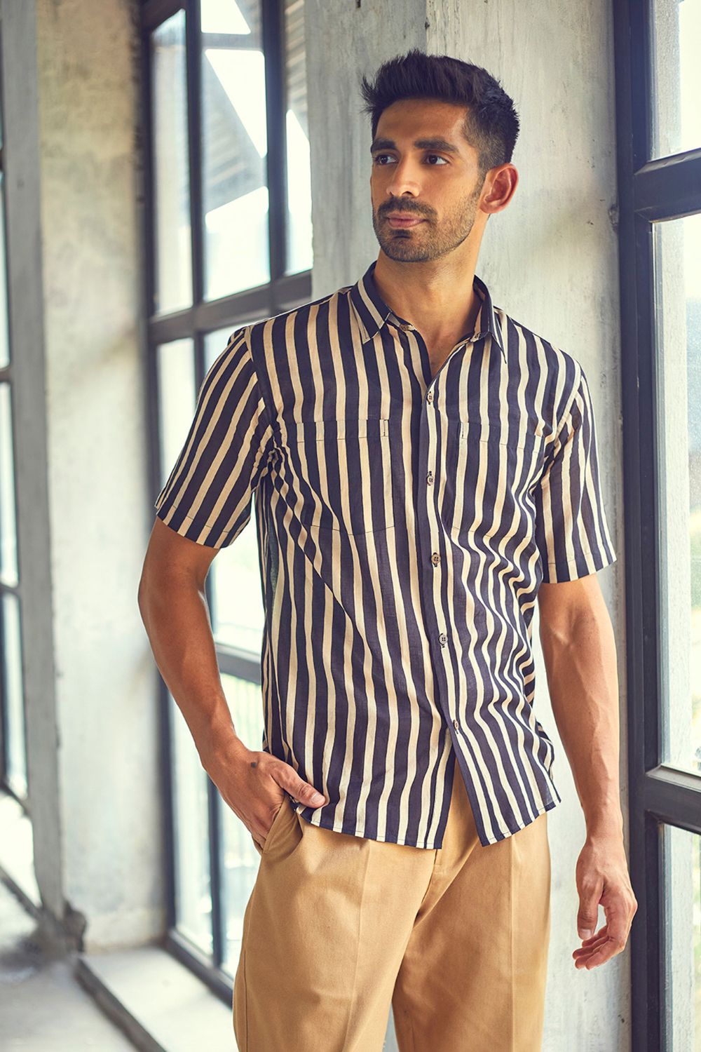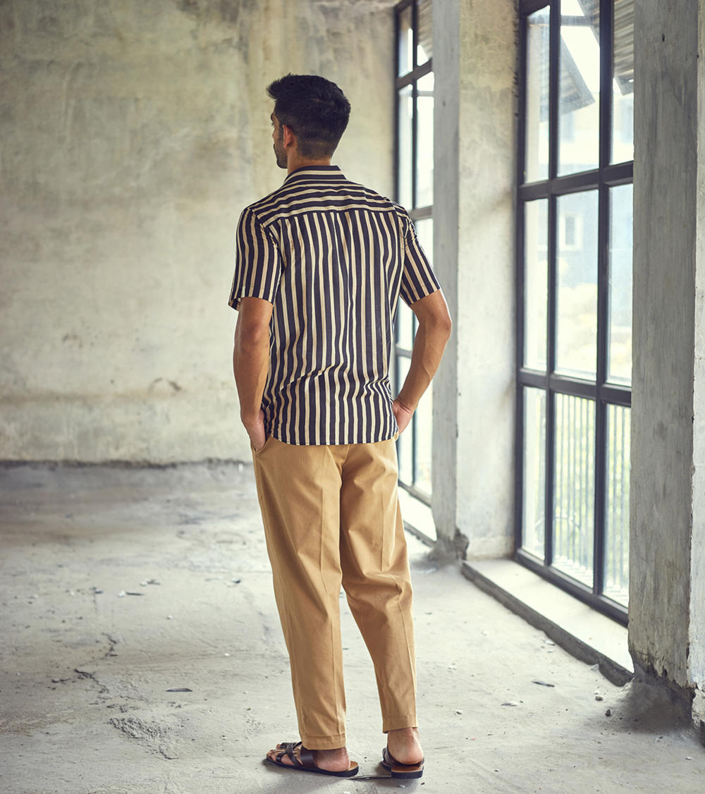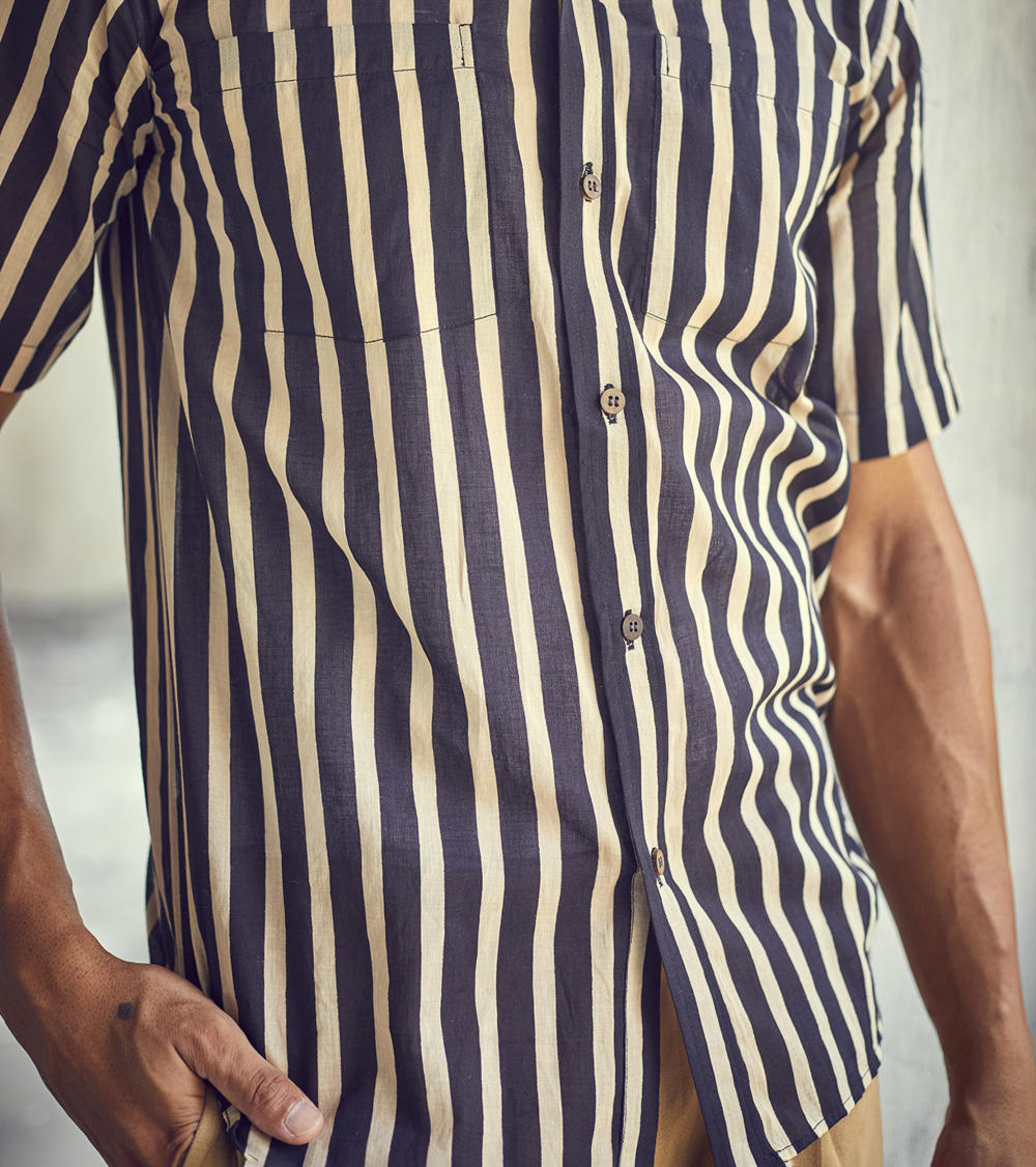 A classic regular fit black and white striped cotton shirt. The soft and breathable fabric construction allows day-long comfort.