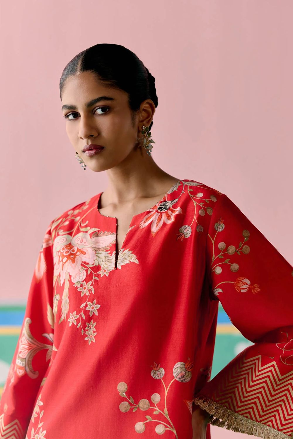 Red Chintz Kurta Set