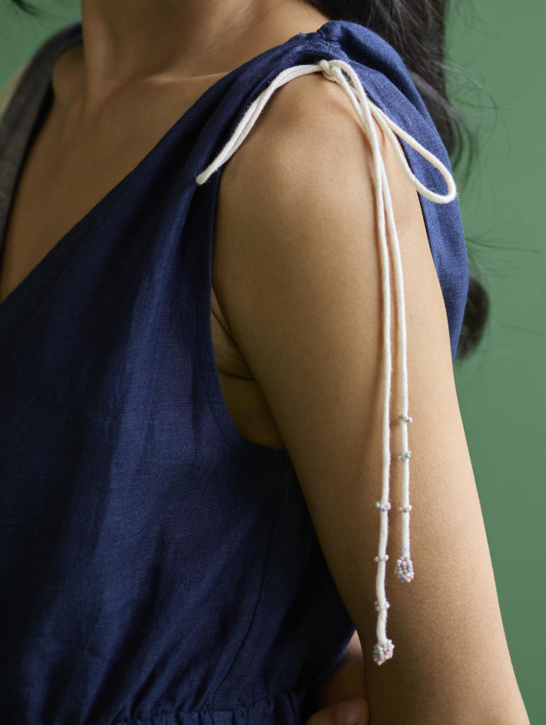 Their signature linens soften beautifully with time, eventually returning to the earth. They work with eri (ahimsa) silk, celebrated for its strength and gentle texture, and craft thoughtful blends of viscose, cotton, silk, and linen for pieces designed to last. Yarn-dyed techniques minimise chemical use and create the subtle, heathered tones that have become a quiet Manan signature.