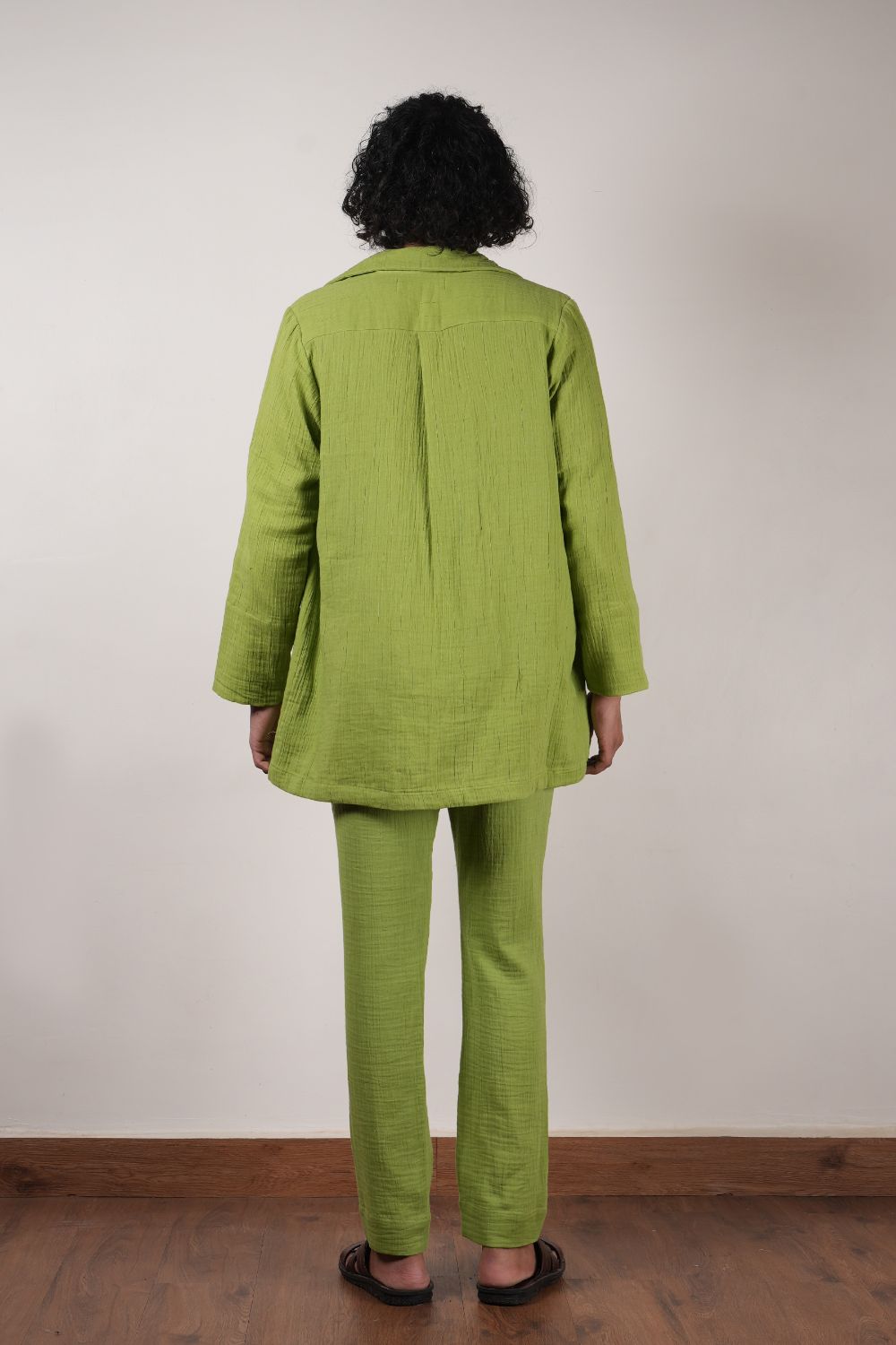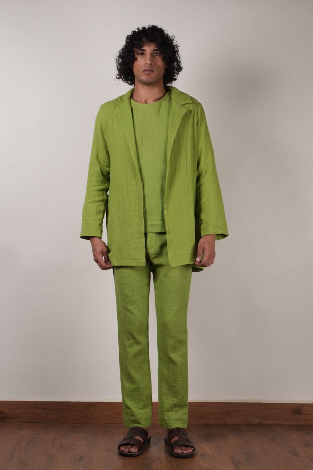 A comfort fit t-shirt with side shoulder zipper opening and extended sleeves comes with crush cotton pants and crush jacket all made in 100% natural cotton. Total 3 pcs.
