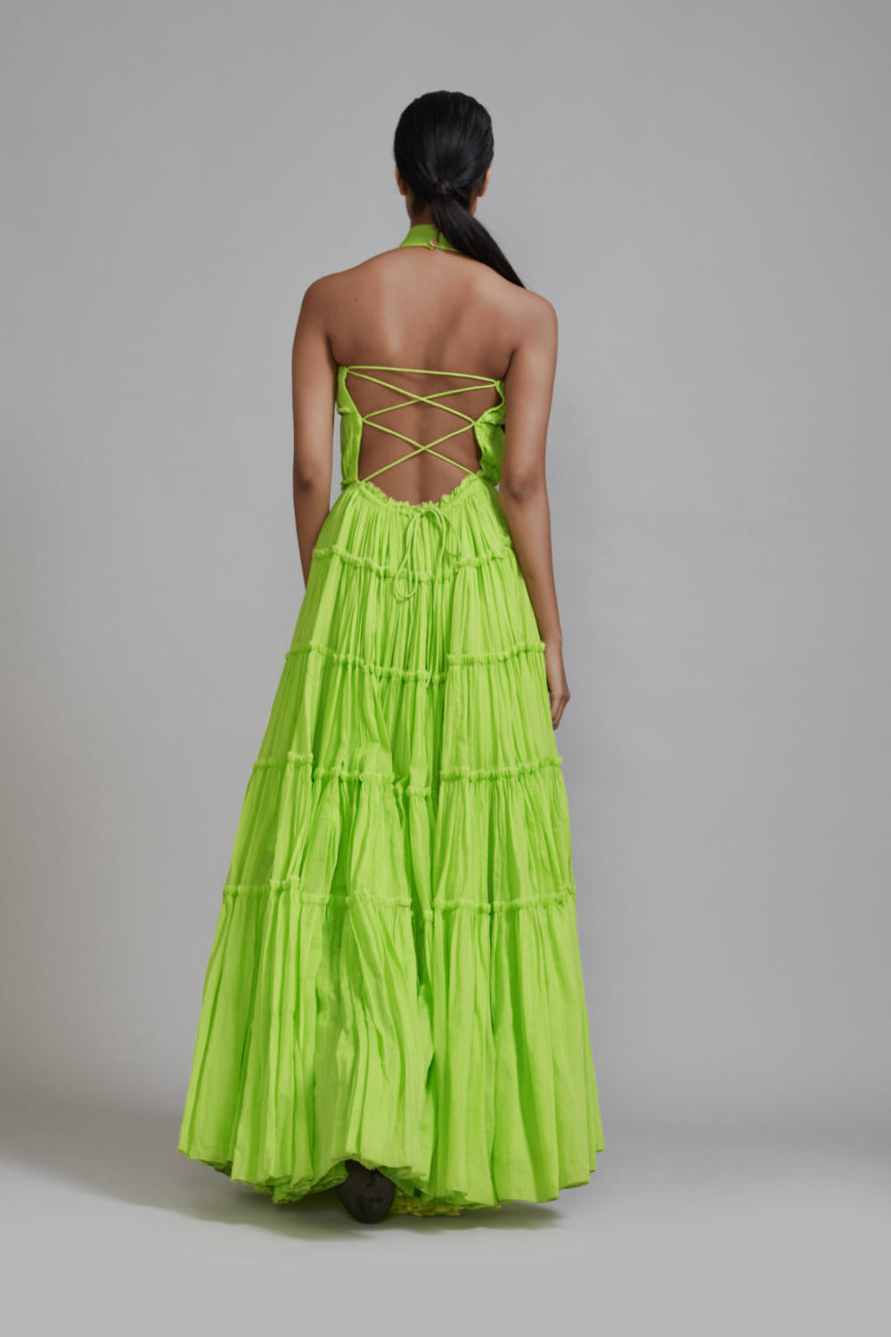 Neon Green Backless Tiered Gown