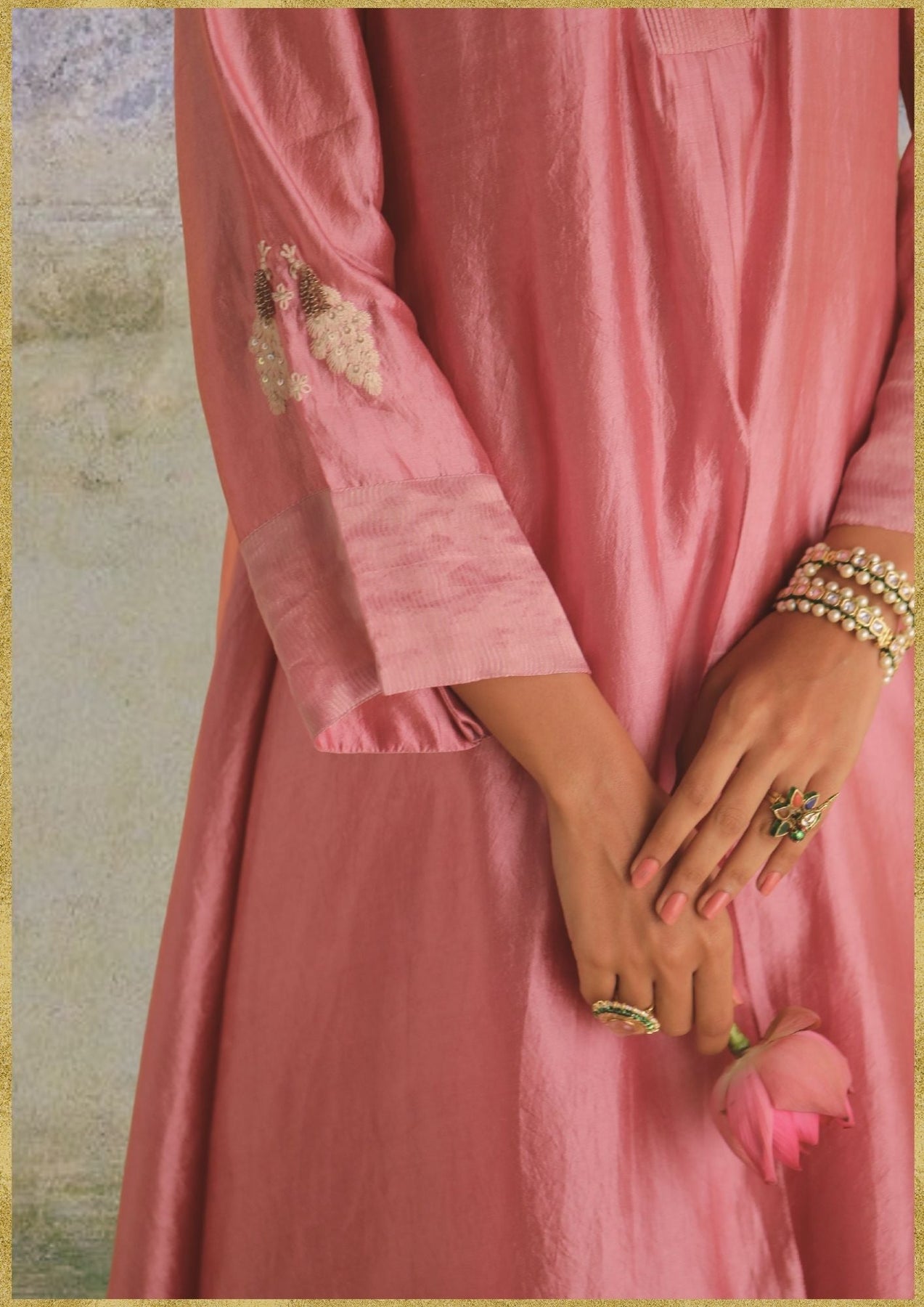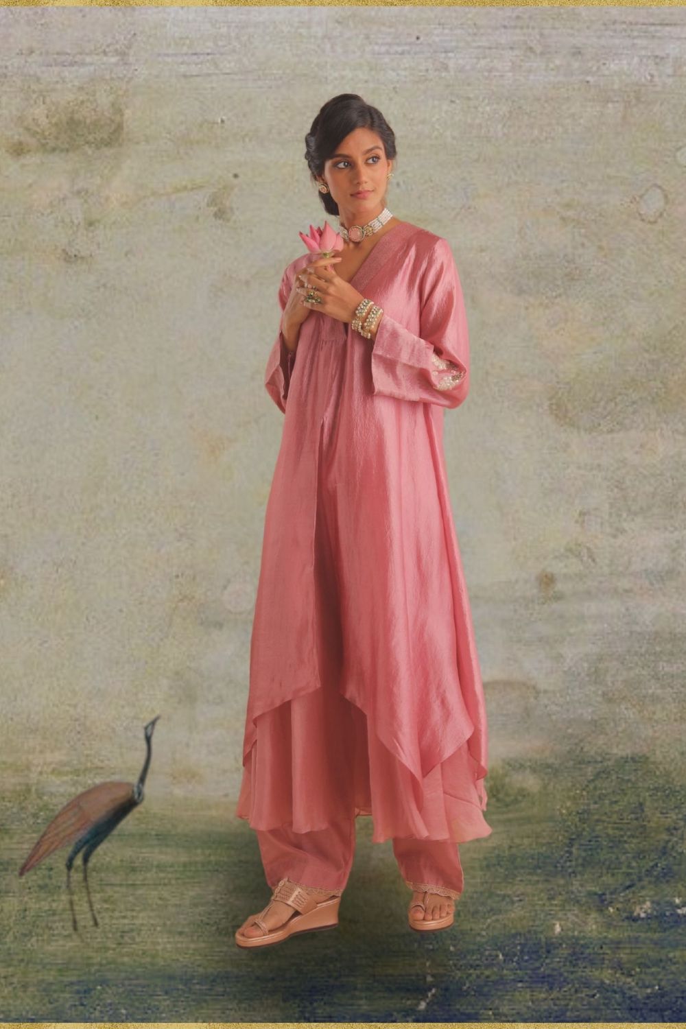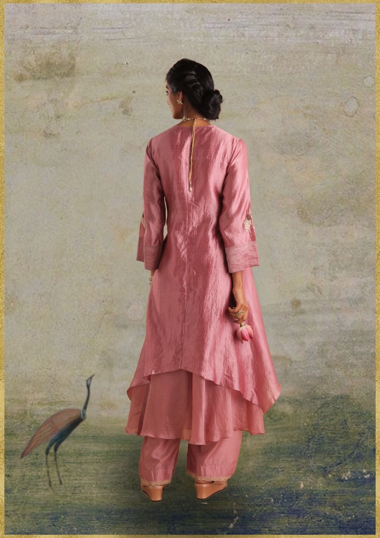CIRCULAR DOUBLE LAYER KURTA WITH HAND WORK ON SLEEVE N DETAIL NECK WITH PANT