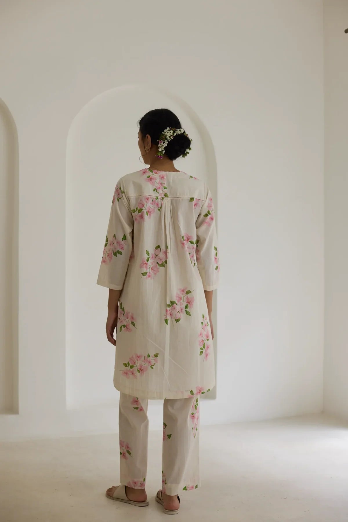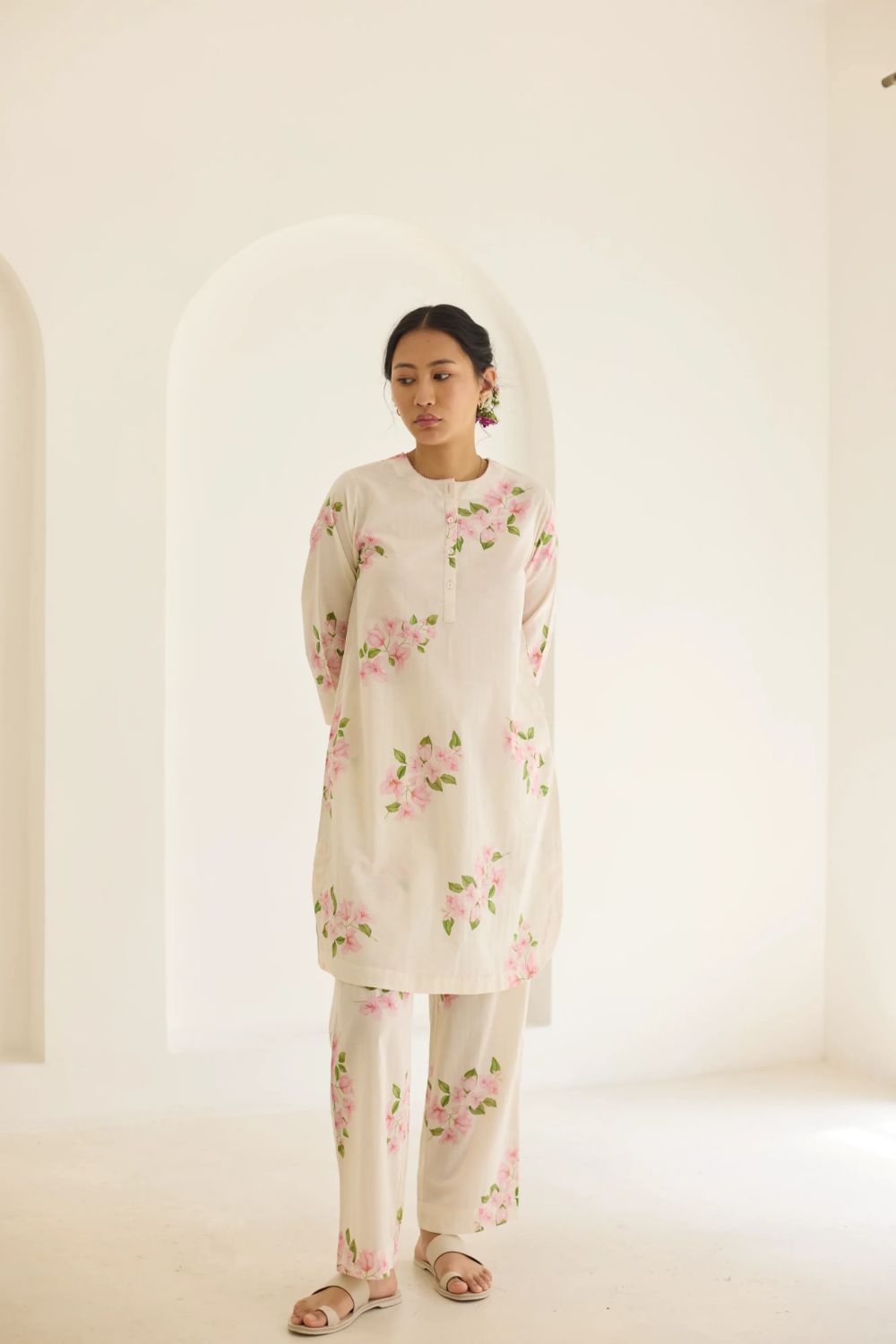 Their prints—hand-illustrated by artists who study flora with almost meditative devotion—carry the softness of garden blooms, the whimsy of wildflowers, and the quiet romance of flowering trees. Each motif is rendered with care, arranged in patterns that feel thoughtful and deeply personal. No loudness, no clutter — just beauty distilled into its purest form.