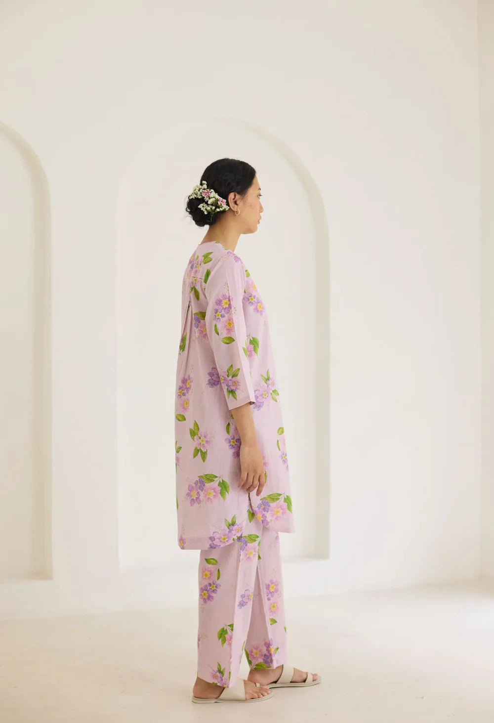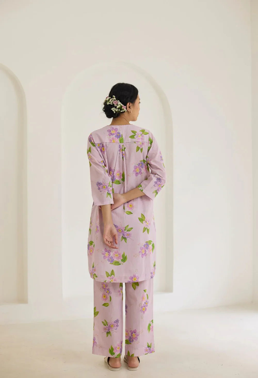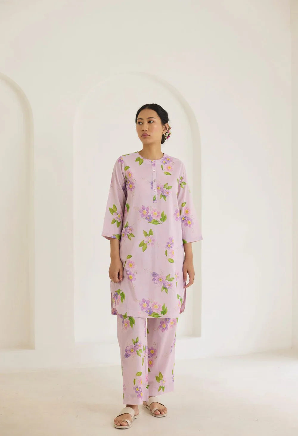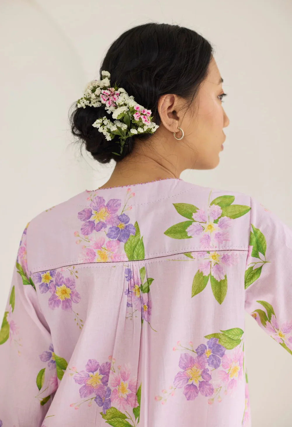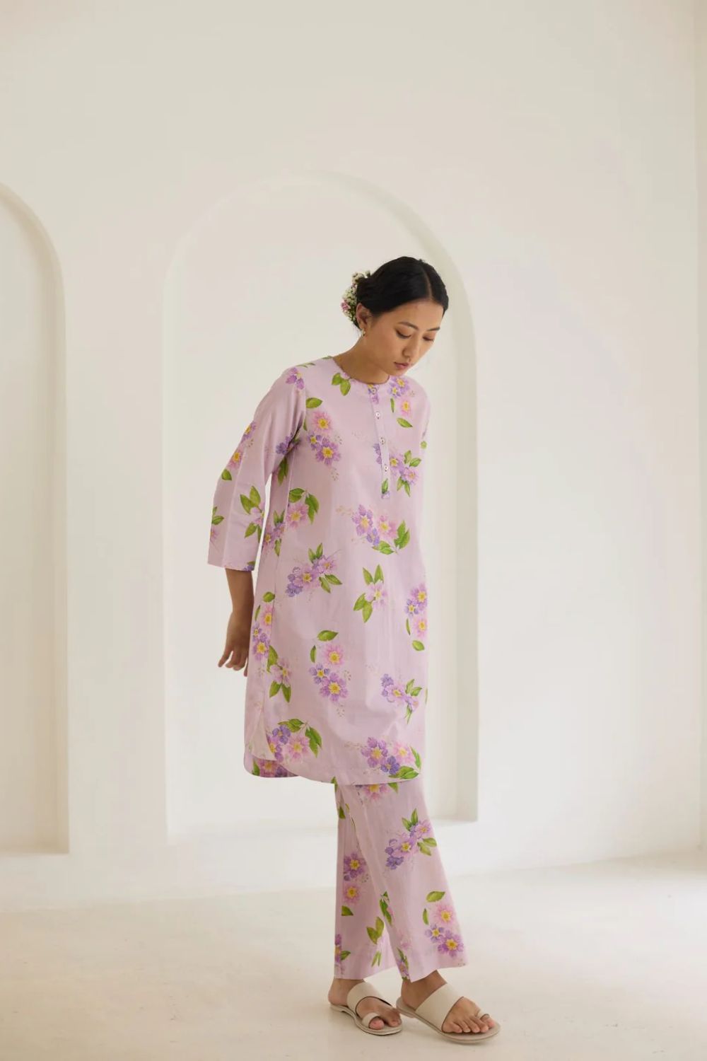 The Jarul flower in the prettiest and most delicate Lilac colour exudes a sense of serenity, grace, and timeless beauty. The soft lilac shades paired with the Jarul flower print create a harmonious blend that feels both soothing and uplifting.