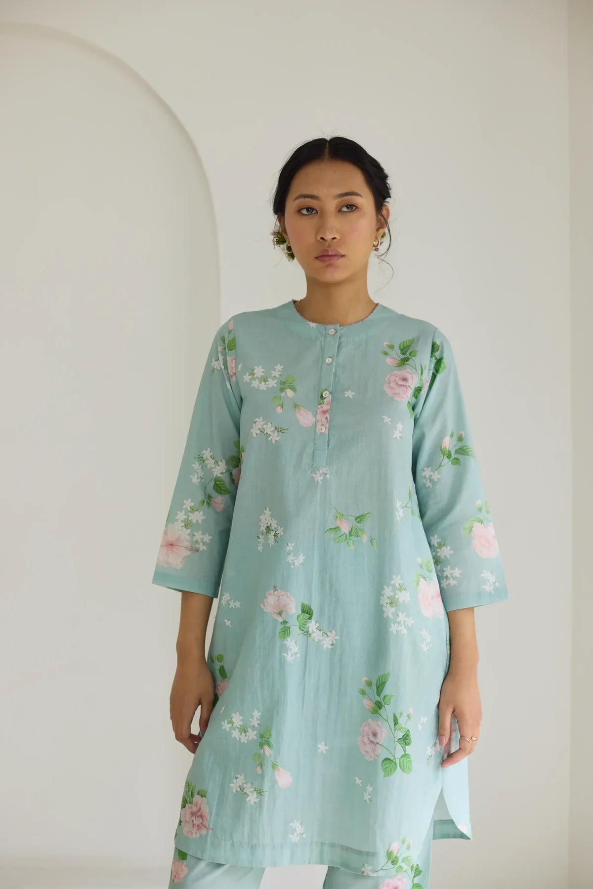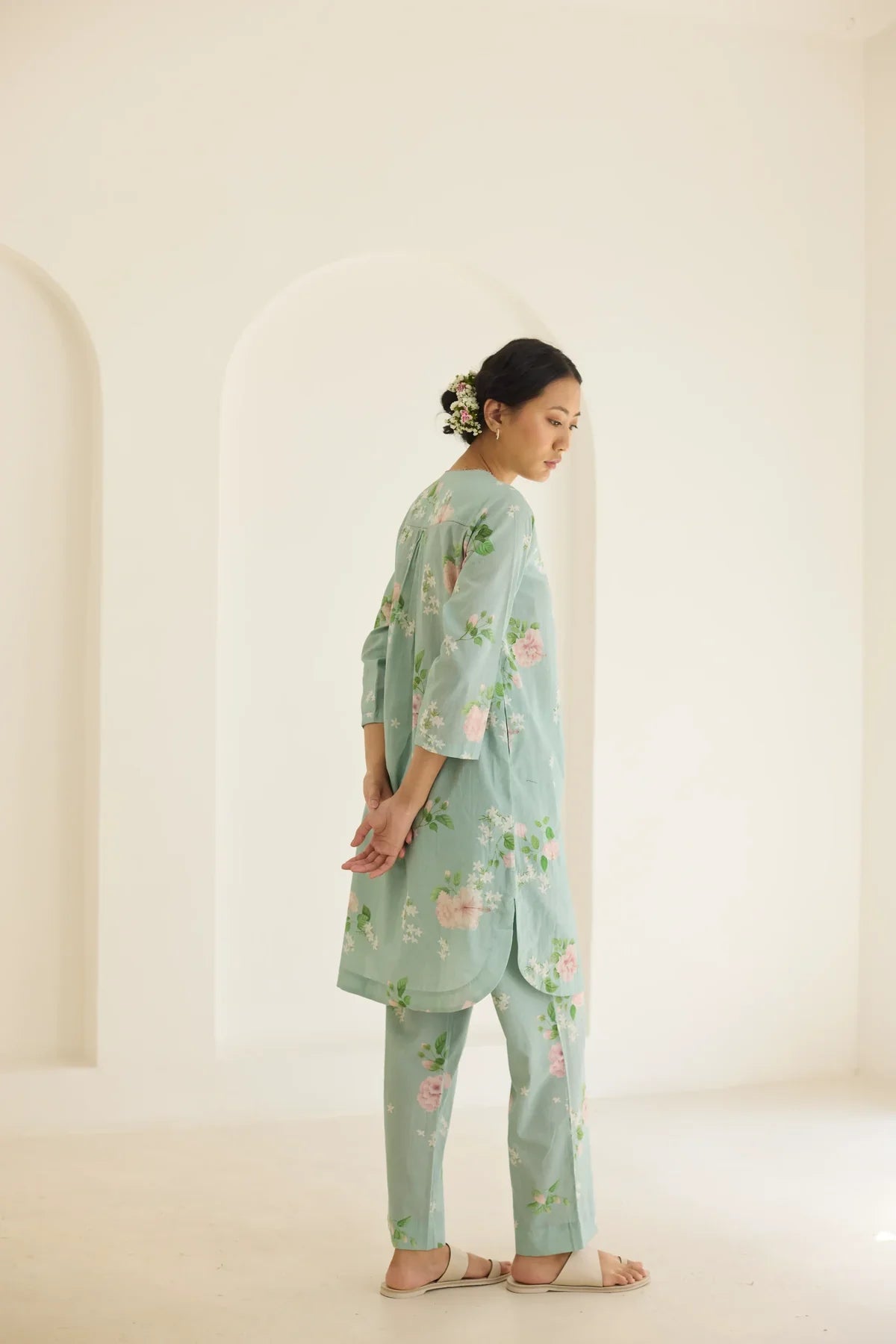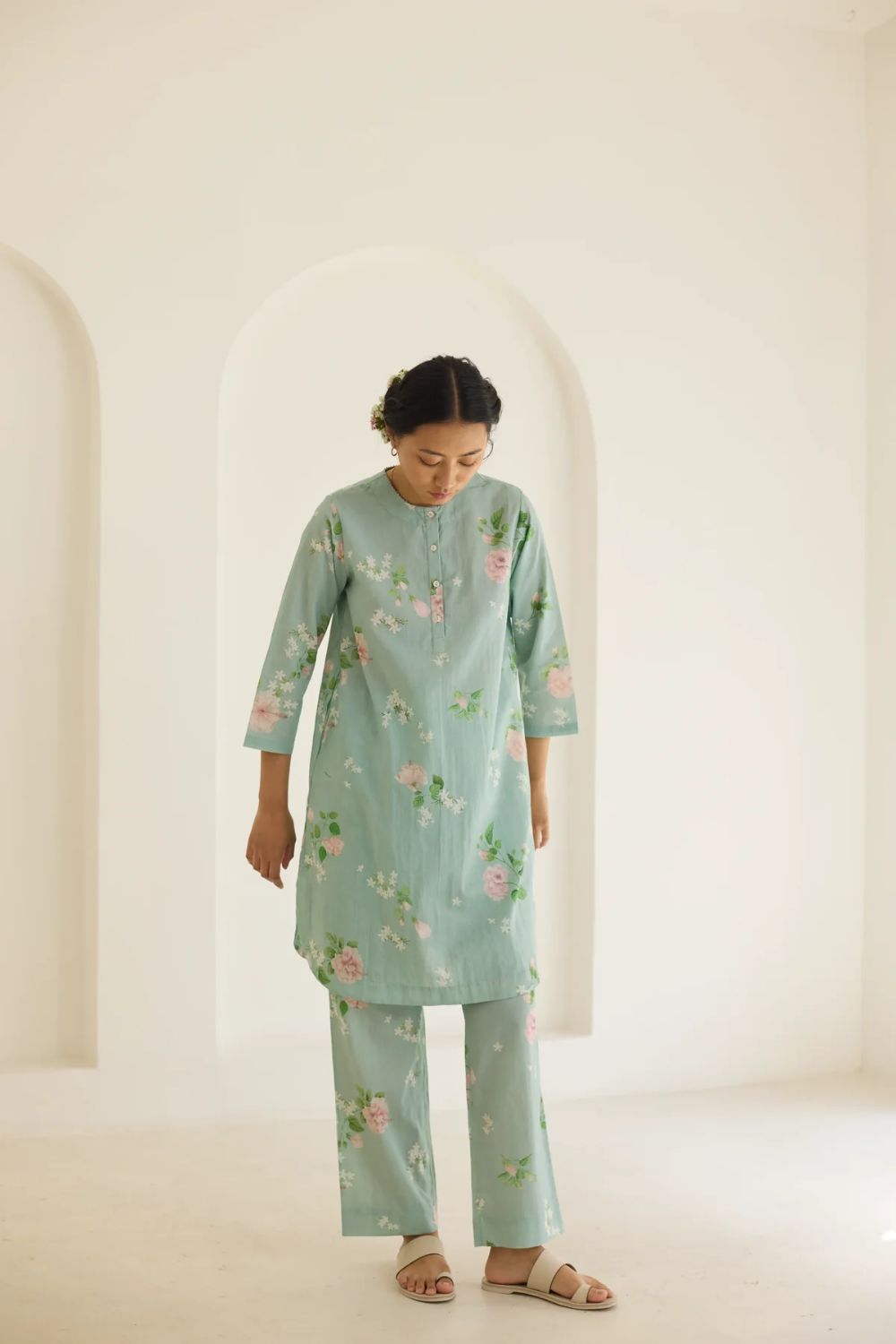 Their prints—hand-illustrated by artists who study flora with almost meditative devotion—carry the softness of garden blooms, the whimsy of wildflowers, and the quiet romance of flowering trees. Each motif is rendered with care, arranged in patterns that feel thoughtful and deeply personal. No loudness, no clutter — just beauty distilled into its purest form.