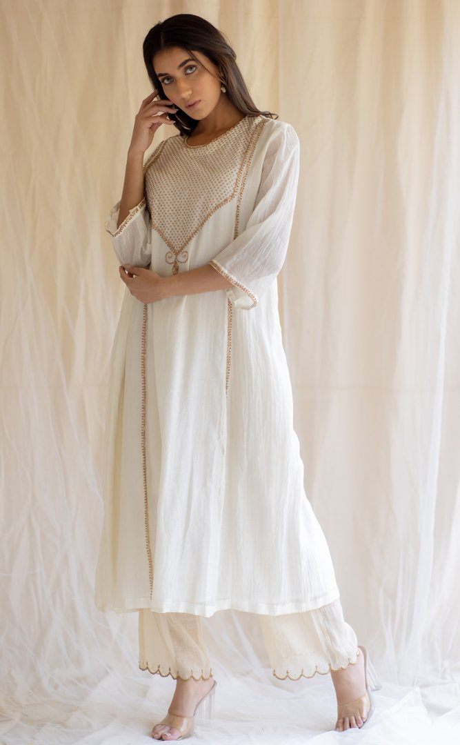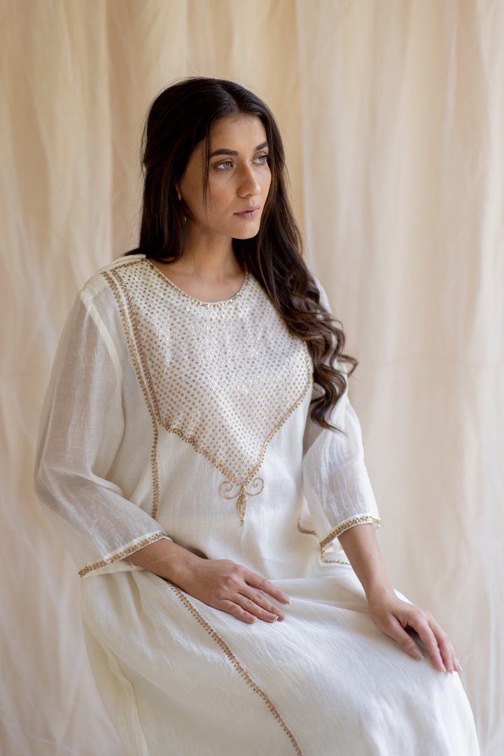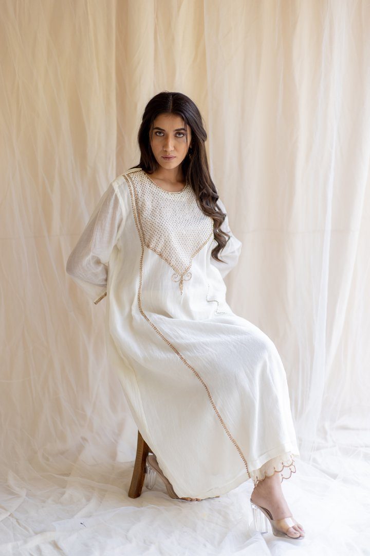 Keeping the tenderness of the fall intact, this silhouette speaks of the fluid organic femininity. Abha moulds and adapts like a woman does.