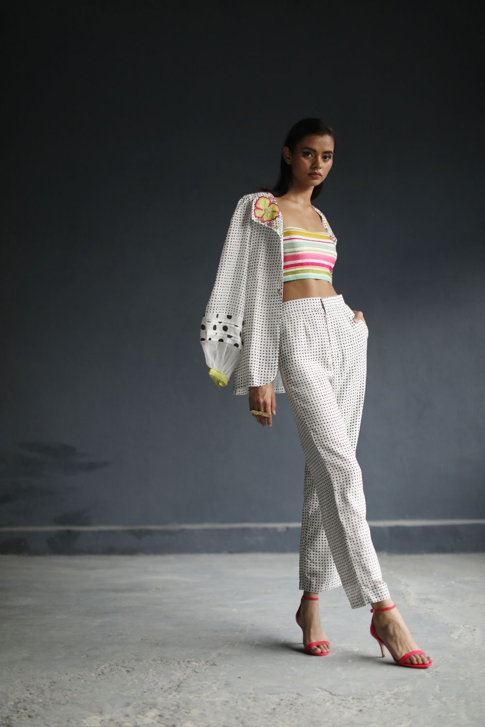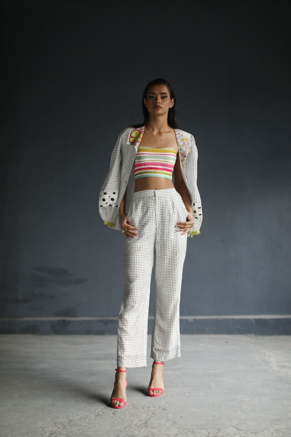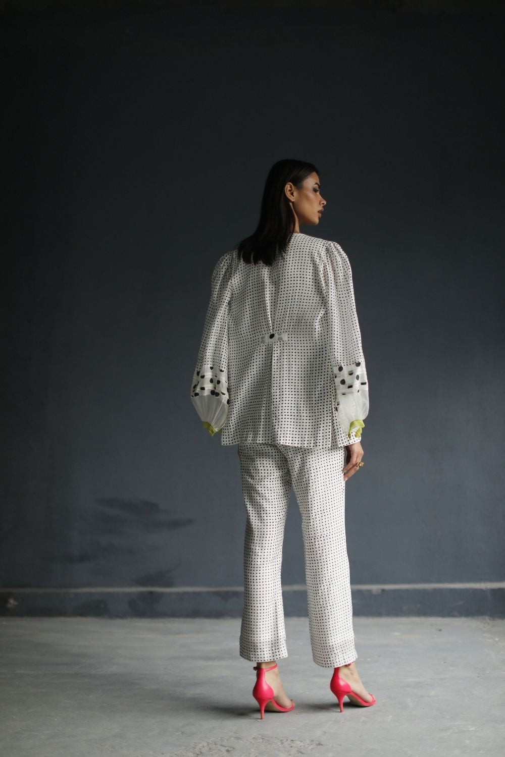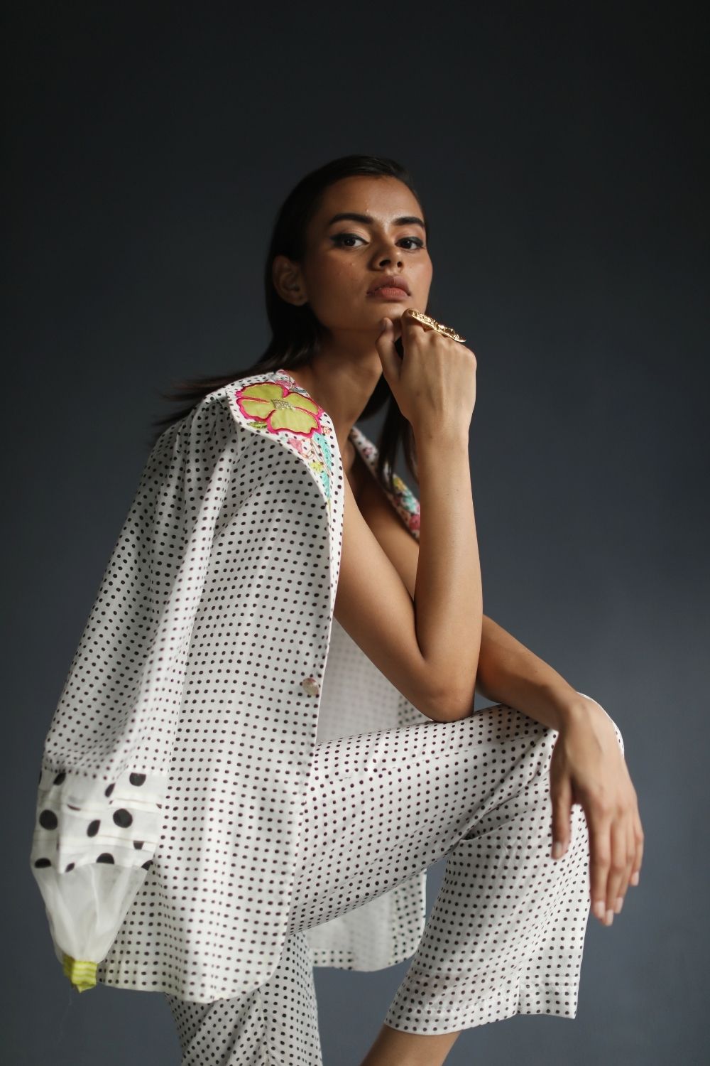 Their work is an ode to handcrafted Indian design — rooted in traditional embroidery techniques like zardozi, dabkaa, and fine threadwork, yet shaped into silhouettes that feel refreshingly contemporary. Clean cuts, relaxed forms, pure fabrics, and a distinctive palette come together to create pieces that travel seamlessly from India to Singapore and beyond.