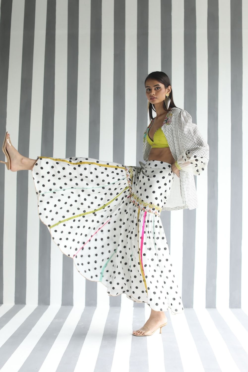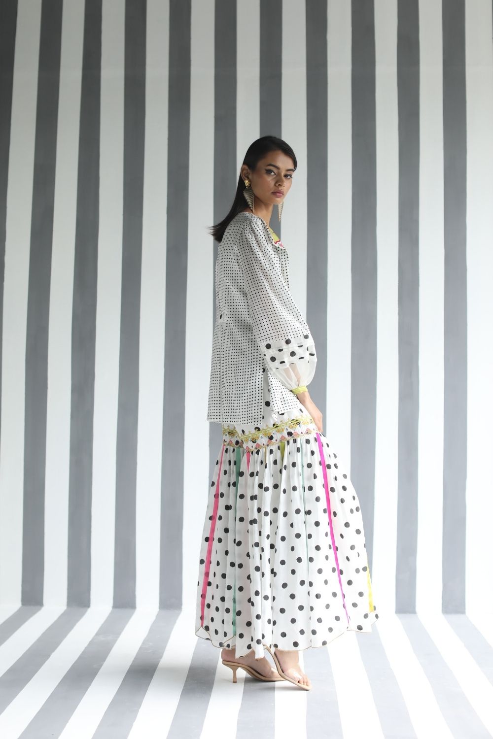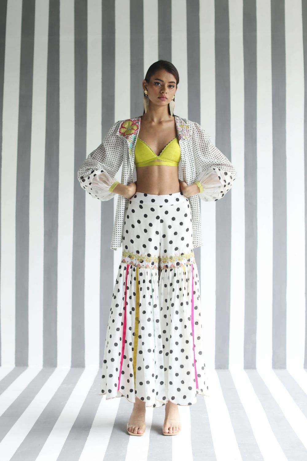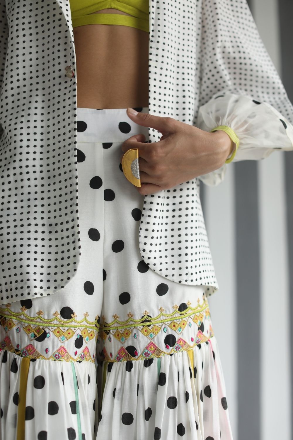 Their work is an ode to handcrafted Indian design — rooted in traditional embroidery techniques like zardozi, dabkaa, and fine threadwork, yet shaped into silhouettes that feel refreshingly contemporary. Clean cuts, relaxed forms, pure fabrics, and a distinctive palette come together to create pieces that travel seamlessly from India to Singapore and beyond.