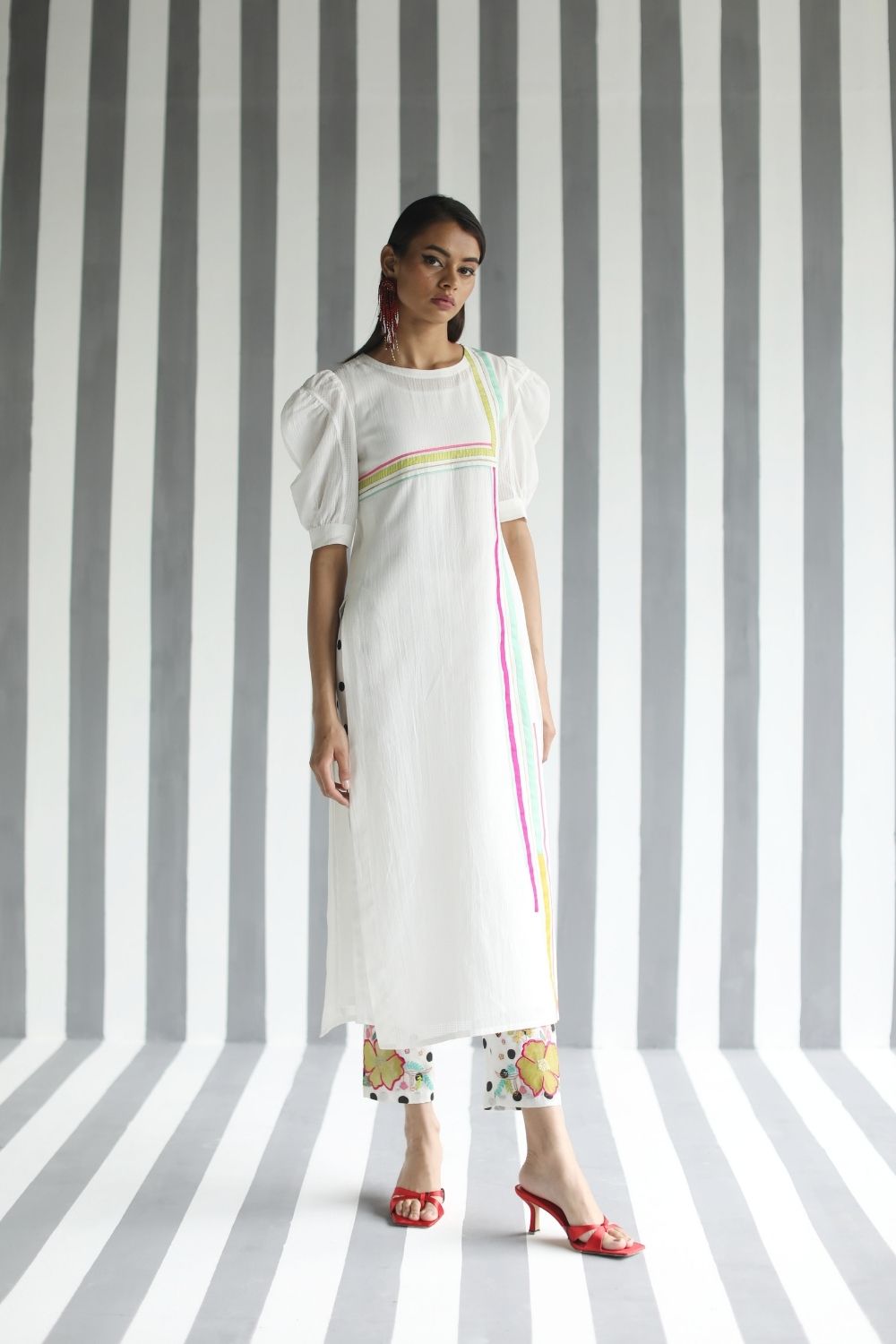 Organic Cotton kurta with appliqué work paired with intricate Embroidered Printed pant.