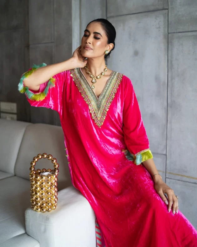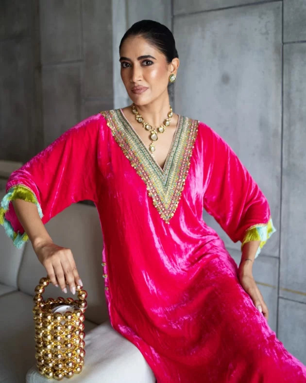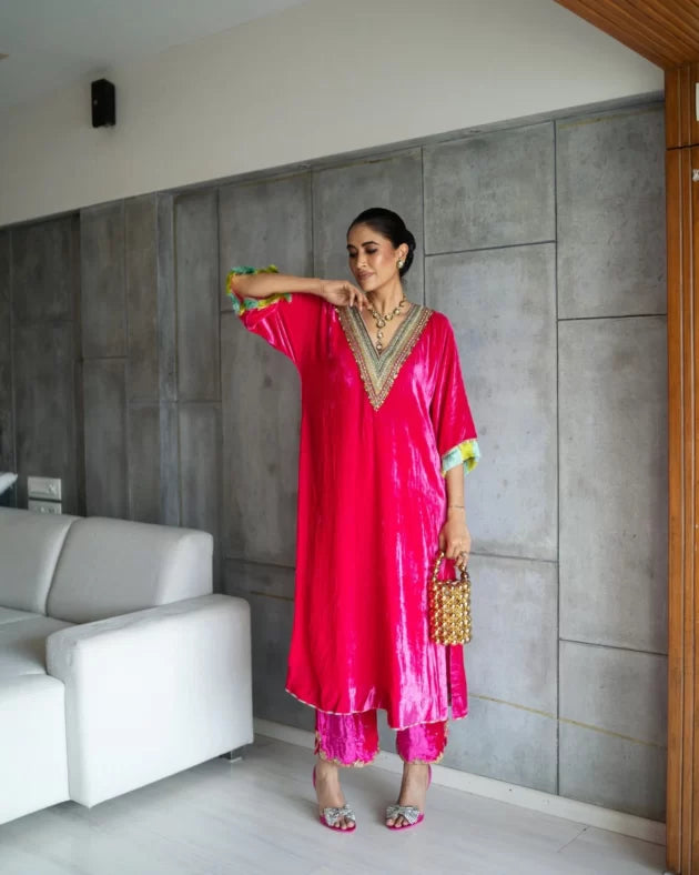 Nadira Hot Pink Velvet Kaftan Kurta Set