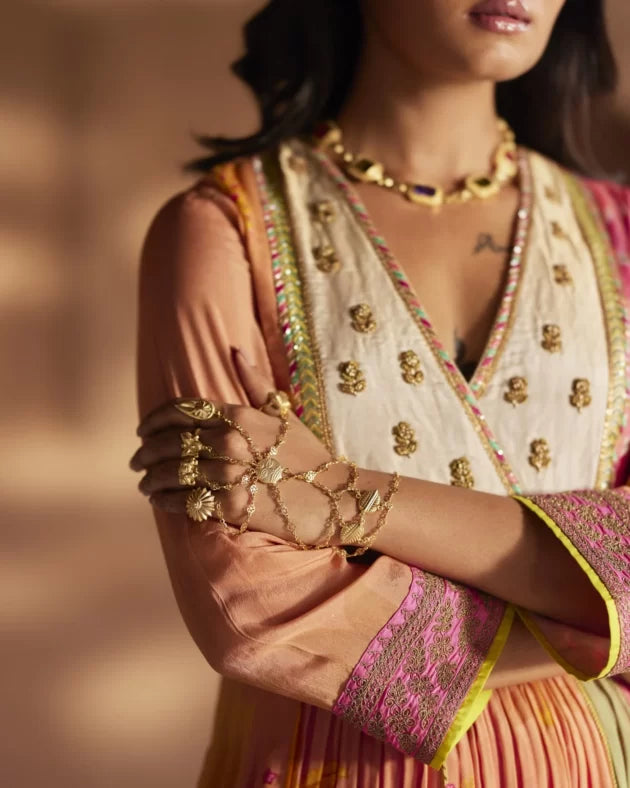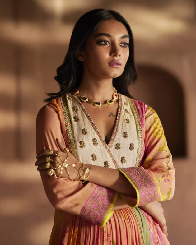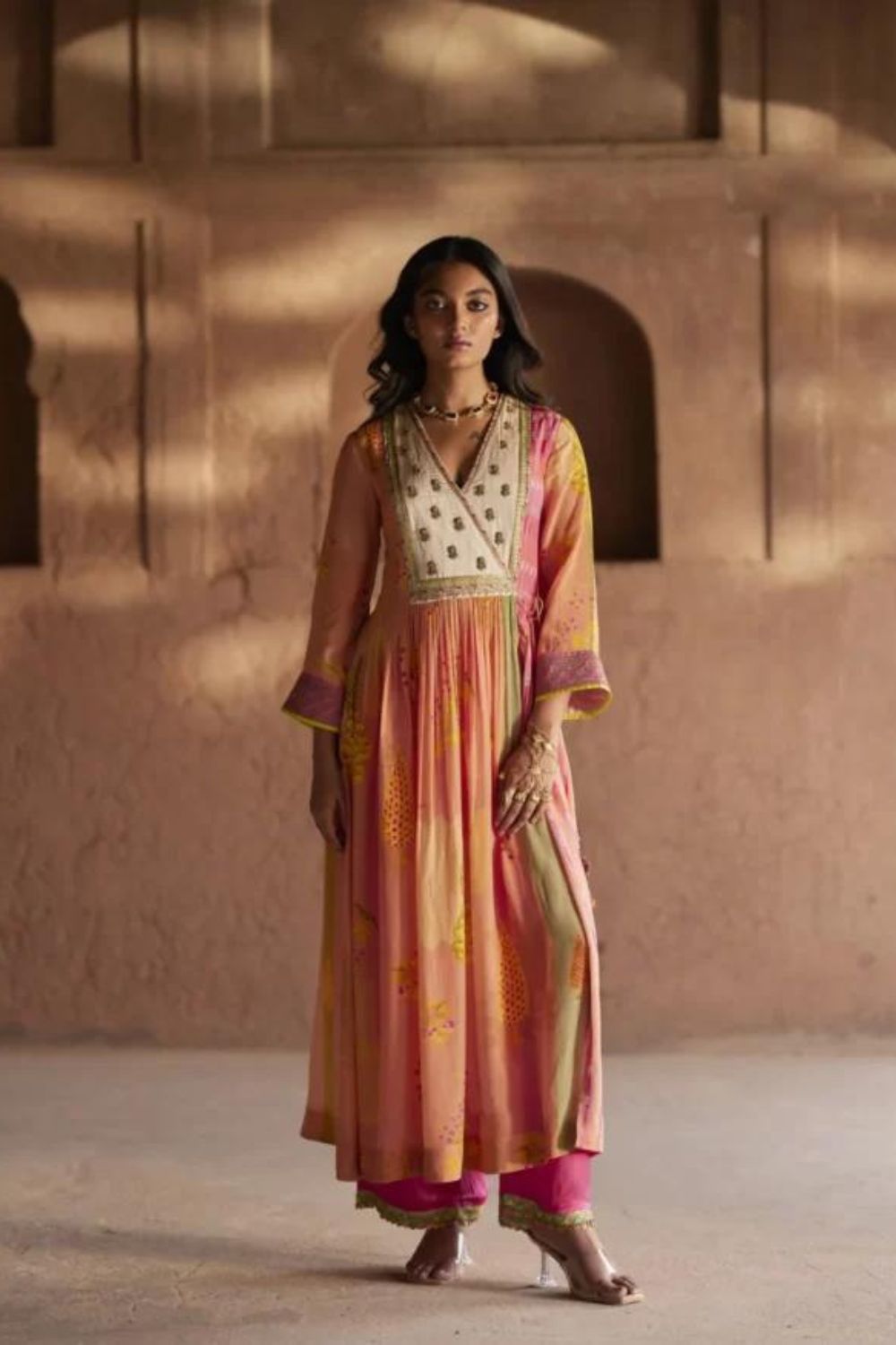 Nadira Pinkish Peach Pintuck Angrakha Kurta Set