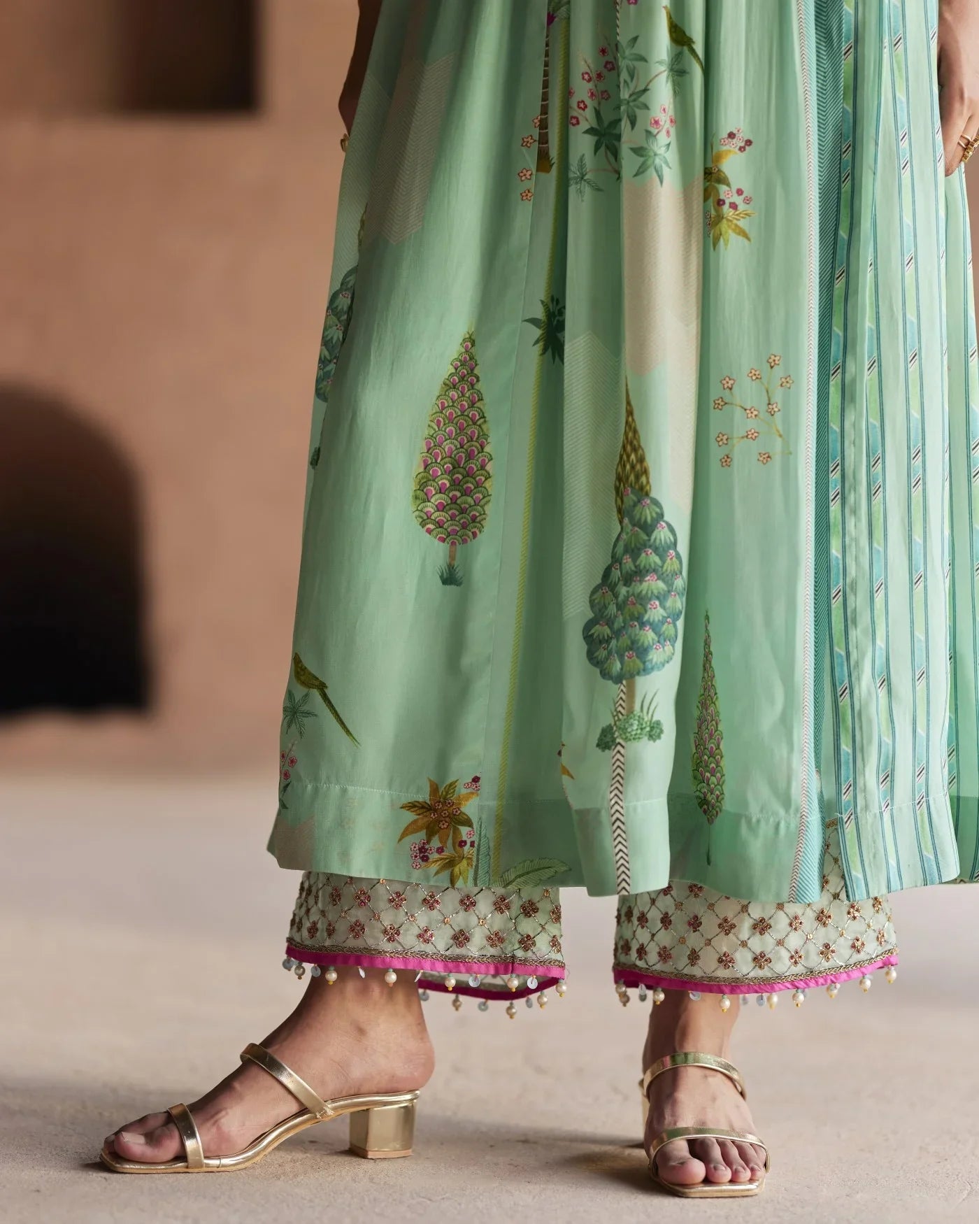 Their work is an ode to handcrafted Indian design — rooted in traditional embroidery techniques like zardozi, dabkaa, and fine threadwork, yet shaped into silhouettes that feel refreshingly contemporary. Clean cuts, relaxed forms, pure fabrics, and a distinctive palette come together to create pieces that travel seamlessly from India to Singapore and beyond.