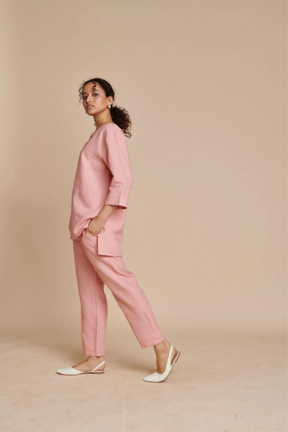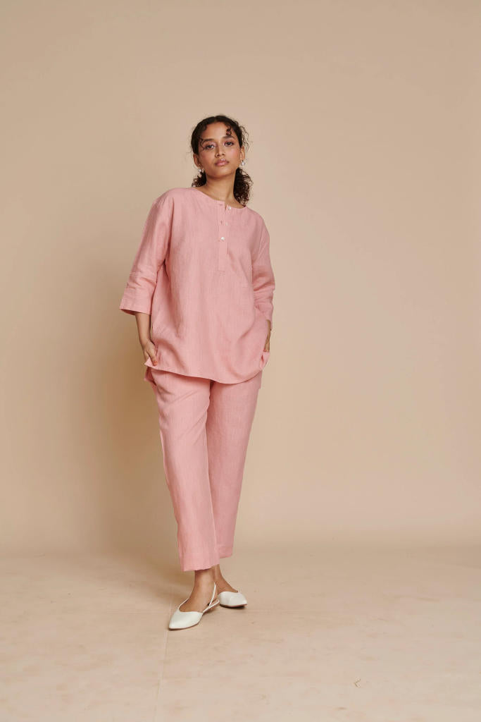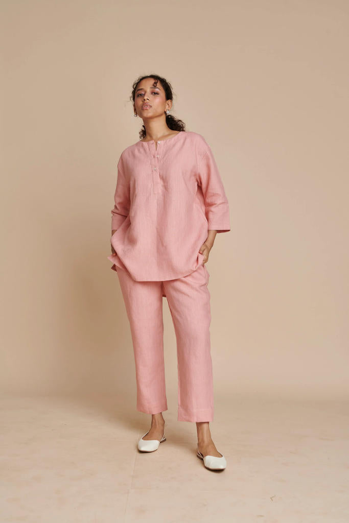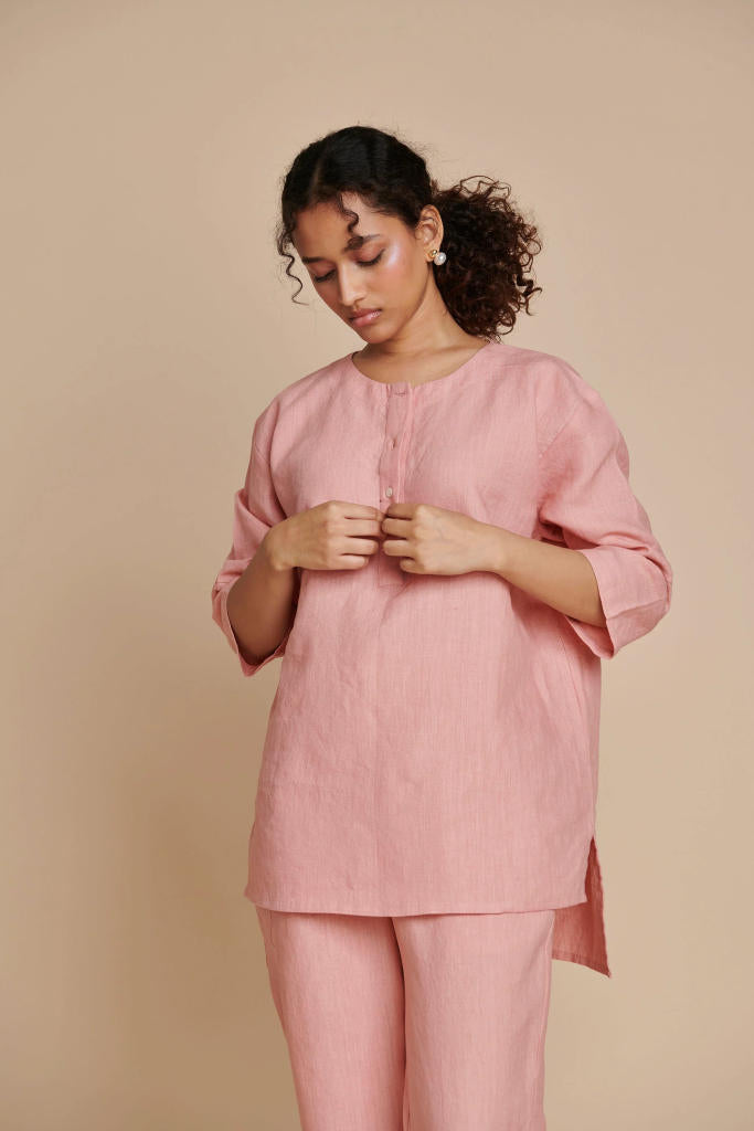 Candy Floss Linen Short Kurta Set