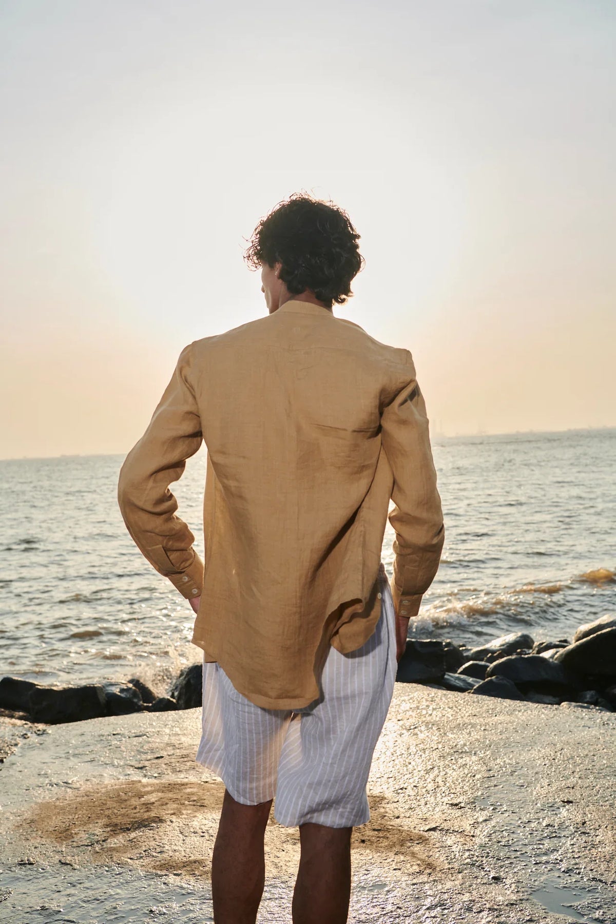Structured yet easy, this shirt is tailored from 100% linen in a classic oxford style. The concealed striped facing adds a quiet layer of depth, while mother-of-pearl buttons elevate the everyday. Designed for clarity and comfort — it moves from weekday formality to weekend lightness with ease.