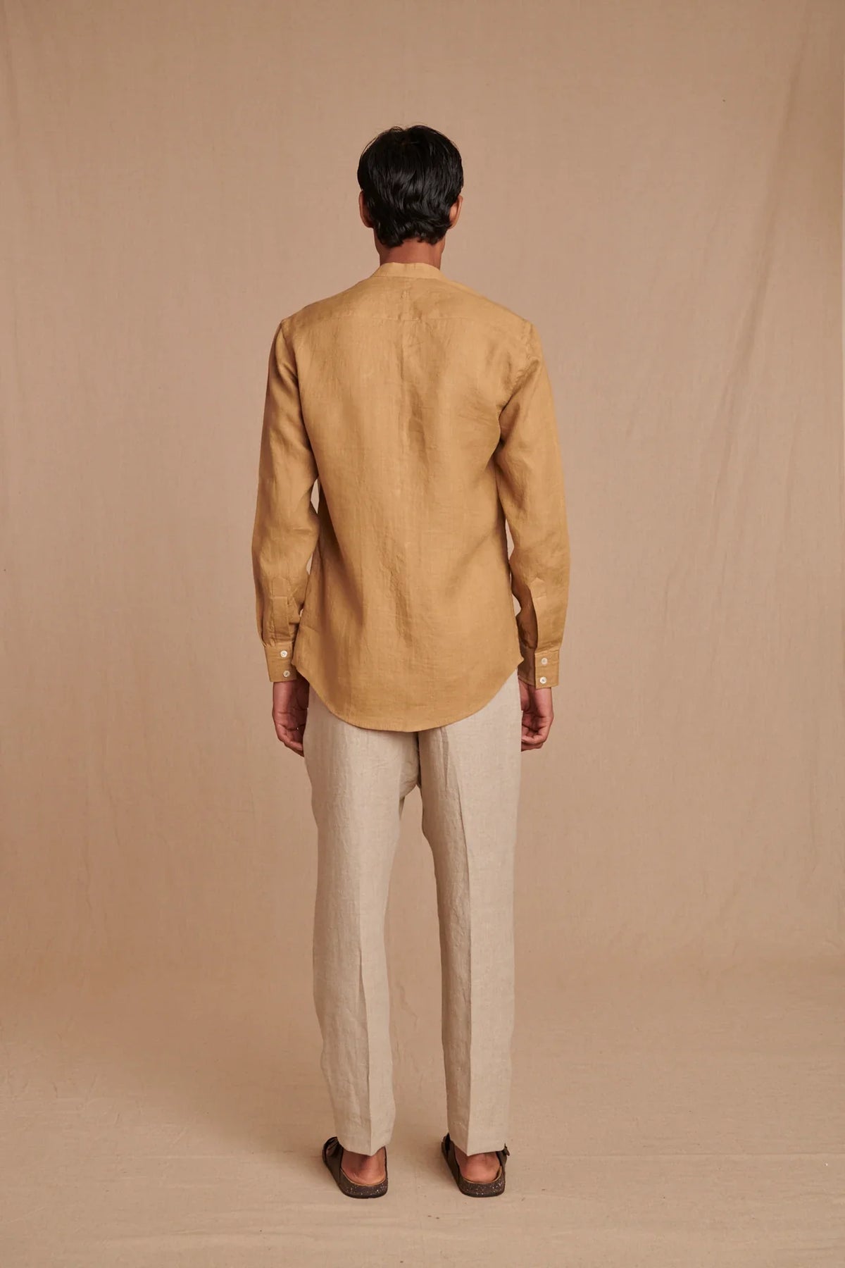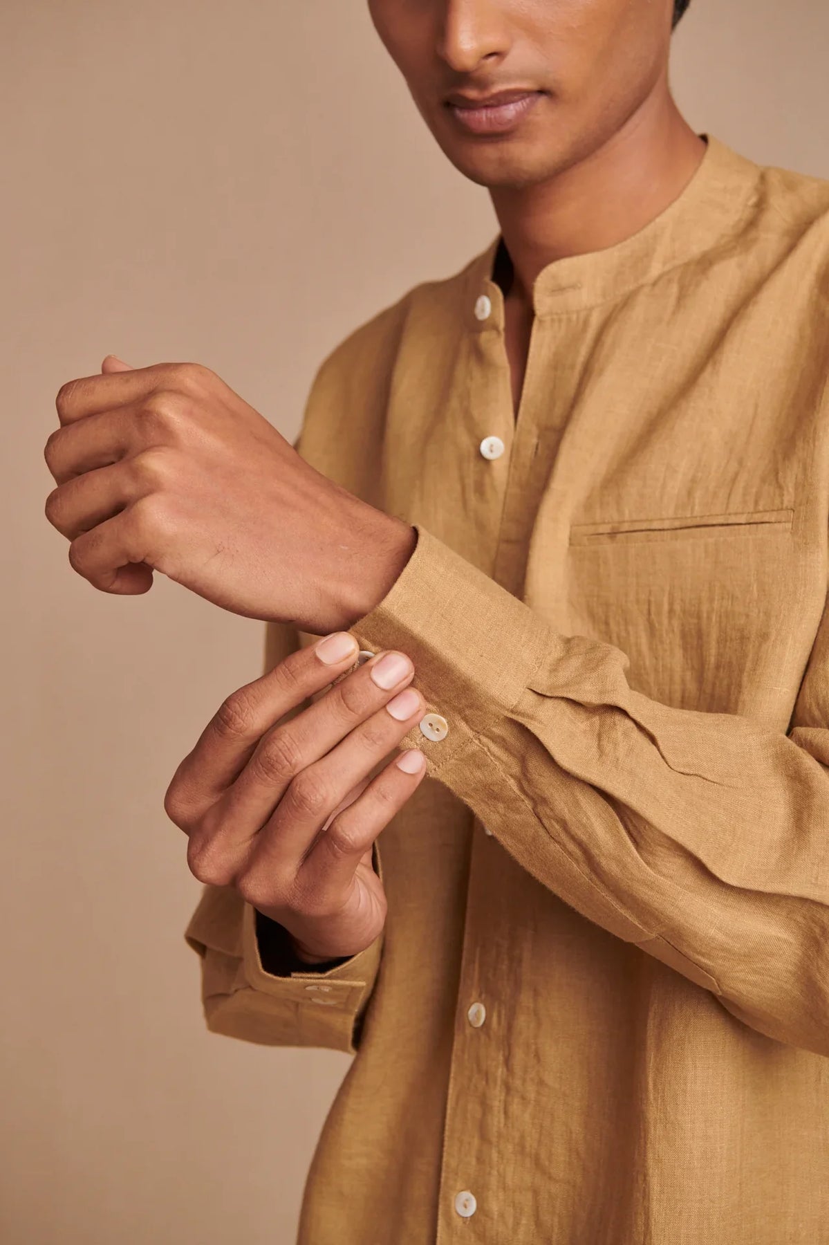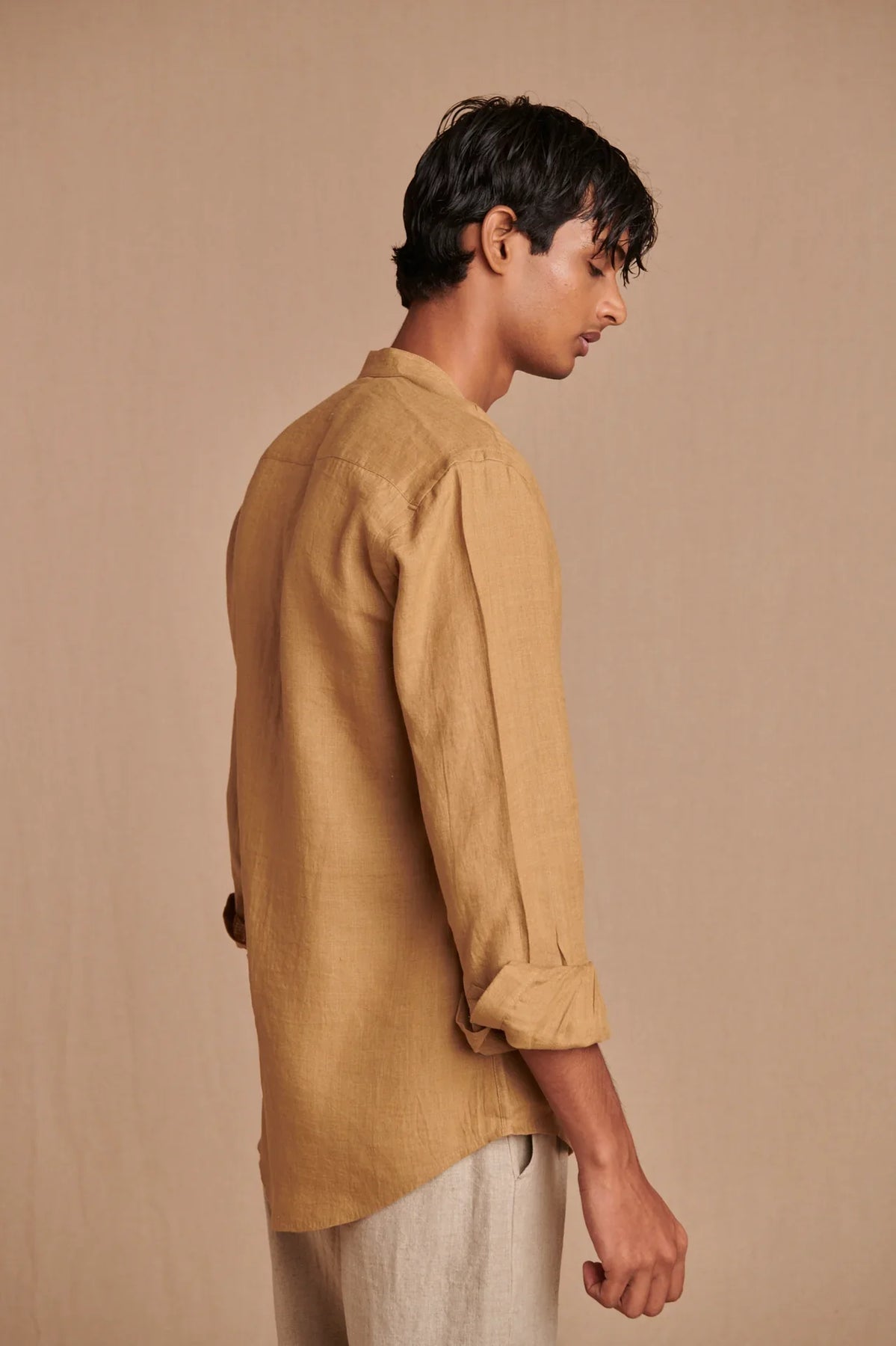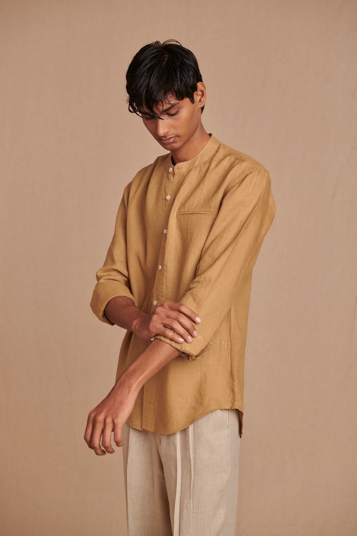Husk Linen Men's Band Collar Shirt - Slim Fit