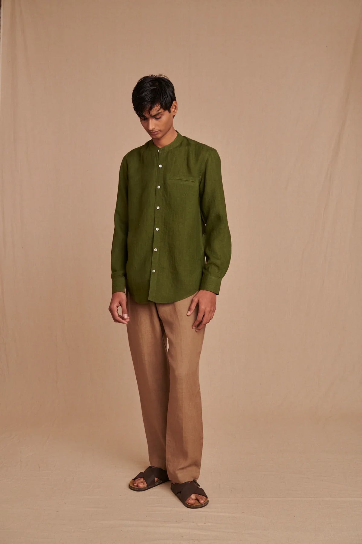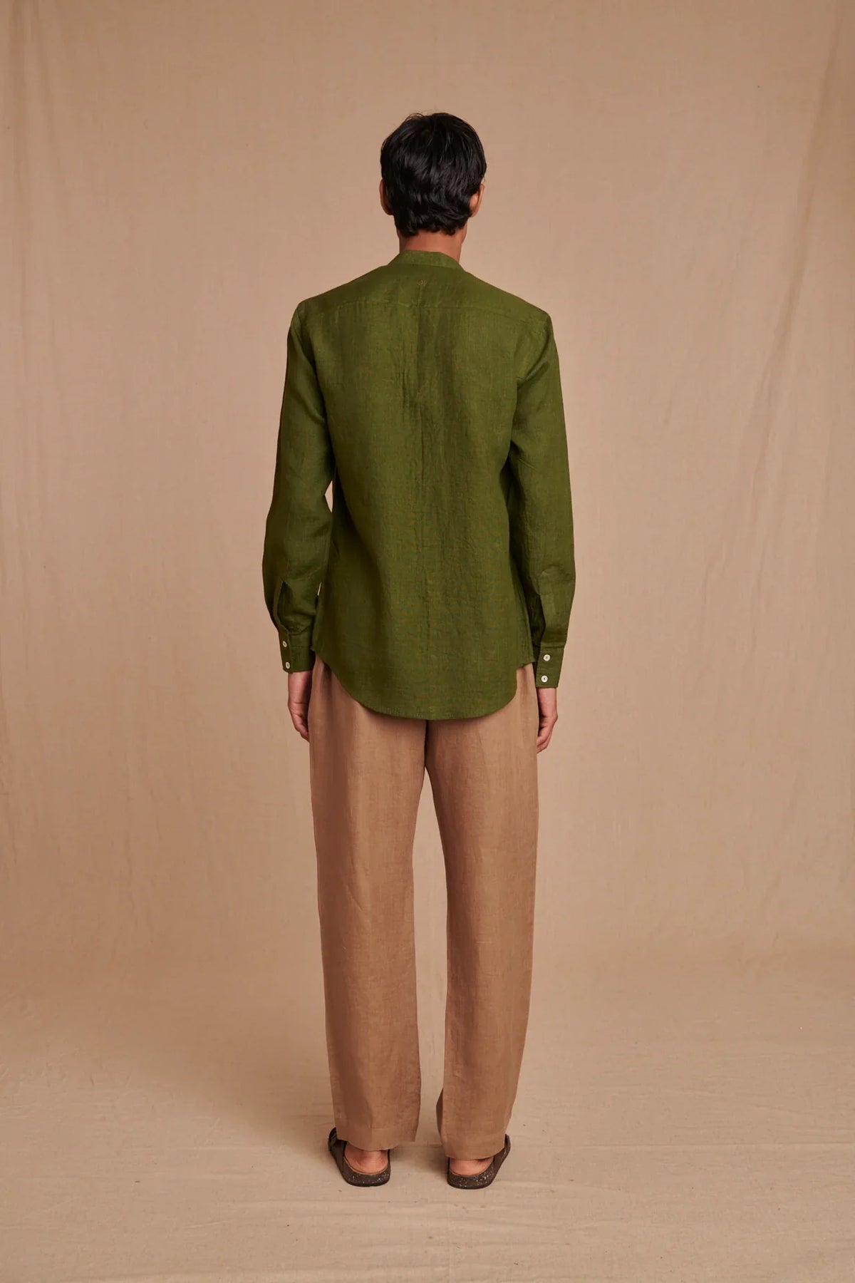 Structured yet easy, this shirt is tailored from 100% linen in a classic oxford style. The concealed striped facing adds a quiet layer of depth, while mother-of-pearl buttons elevate the everyday. Designed for clarity and comfort — it moves from weekday formality to weekend lightness with ease.