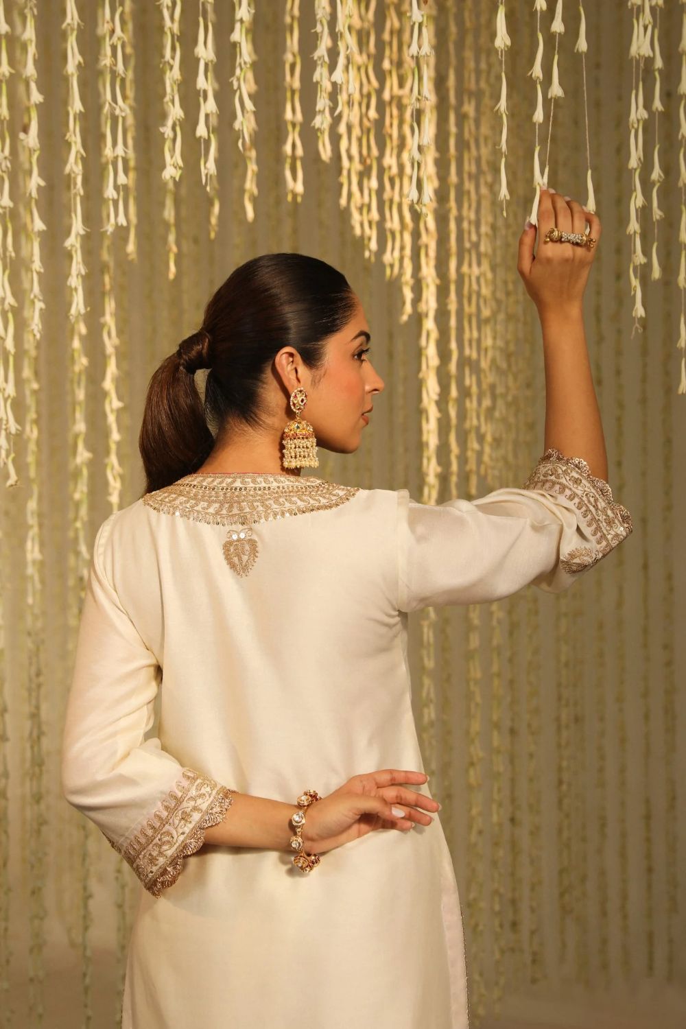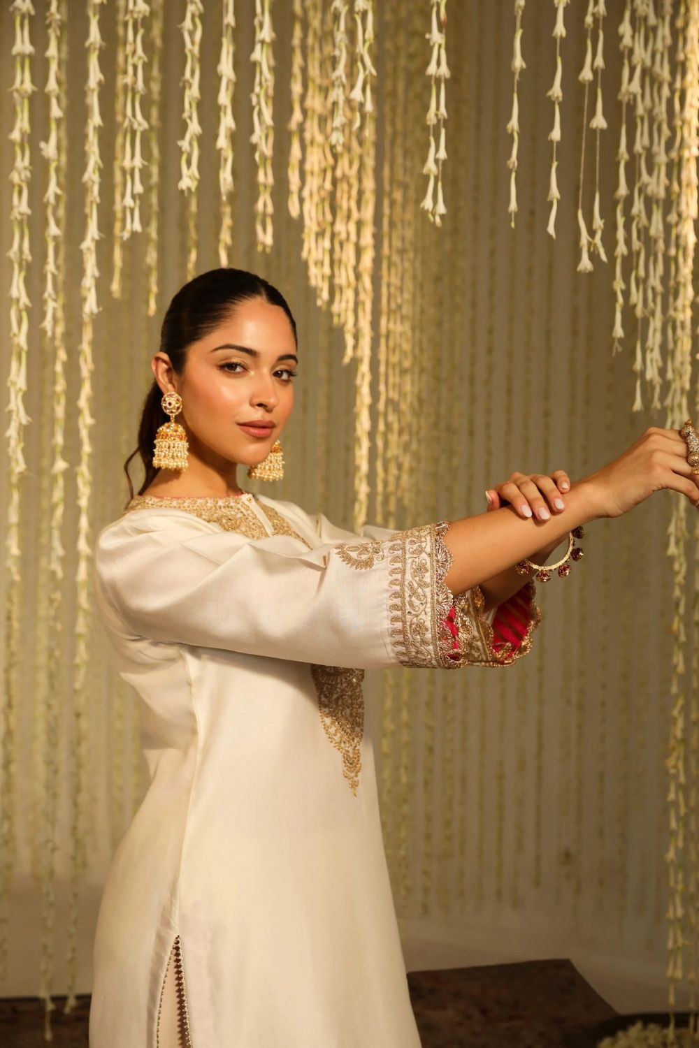 Enisa Straight kurta with Dhoti-Daisy Ivory