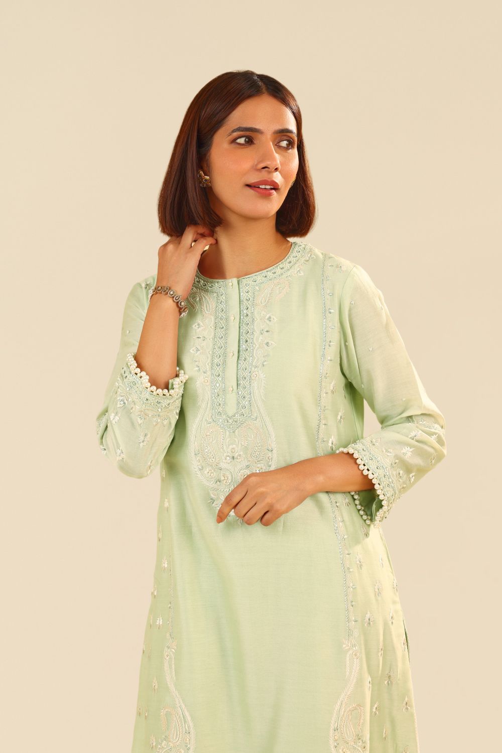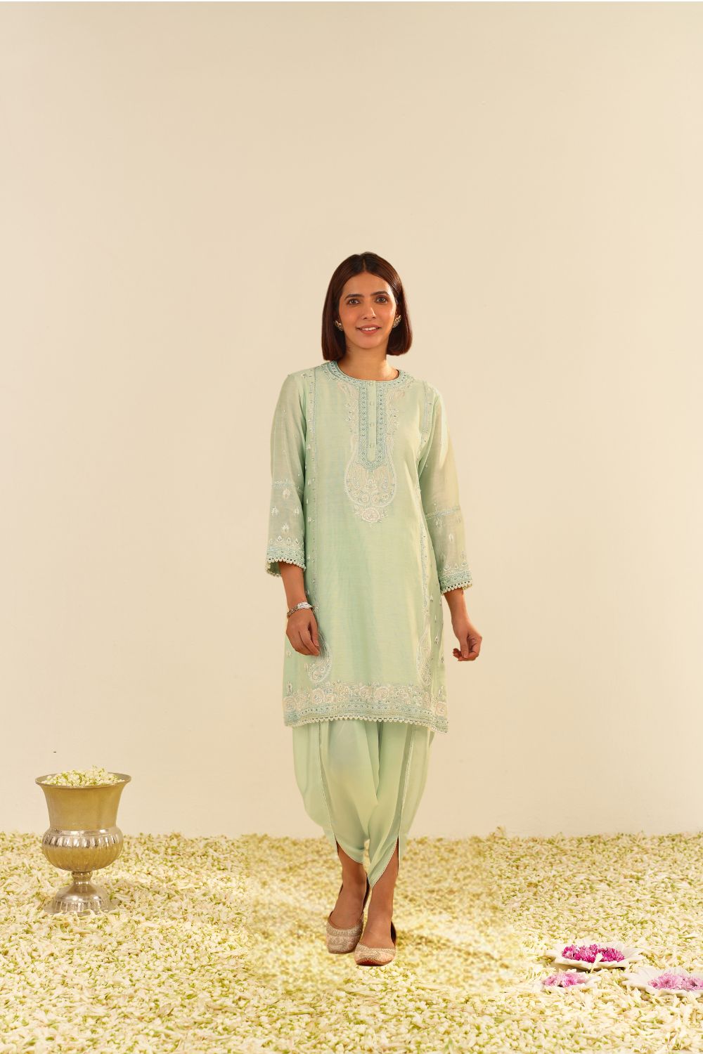Zahra - Short Kurta With Dhoti-Mint Green