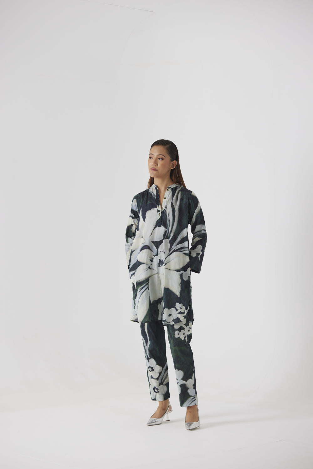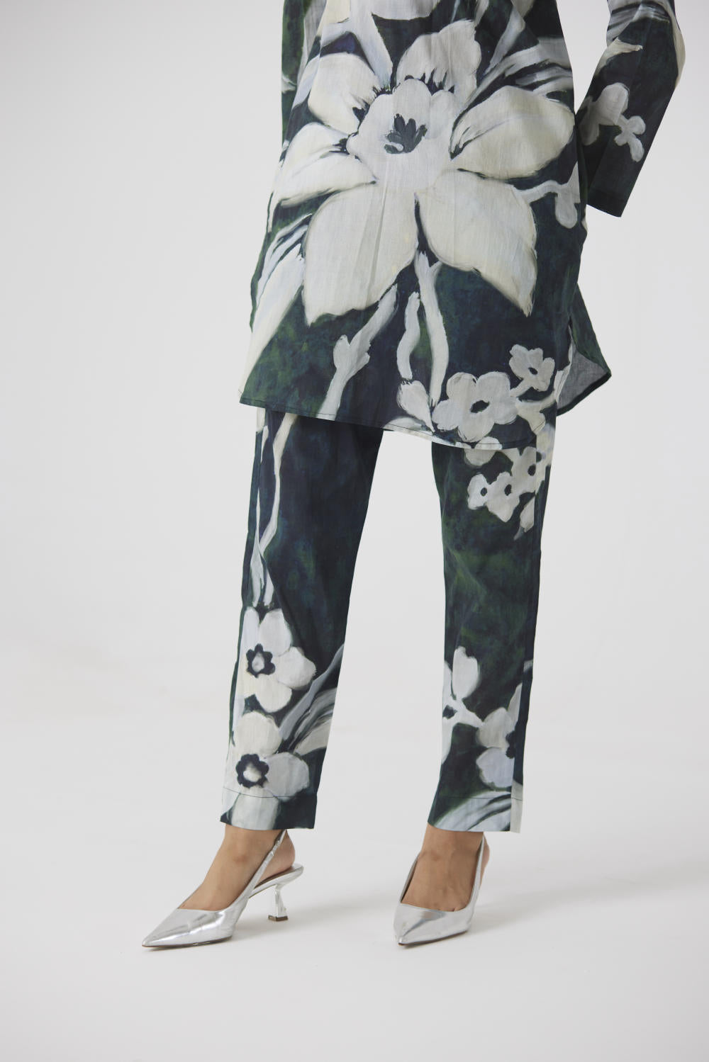 This KURTA set is crafted in the Chicory print carefully printed on Cotton.