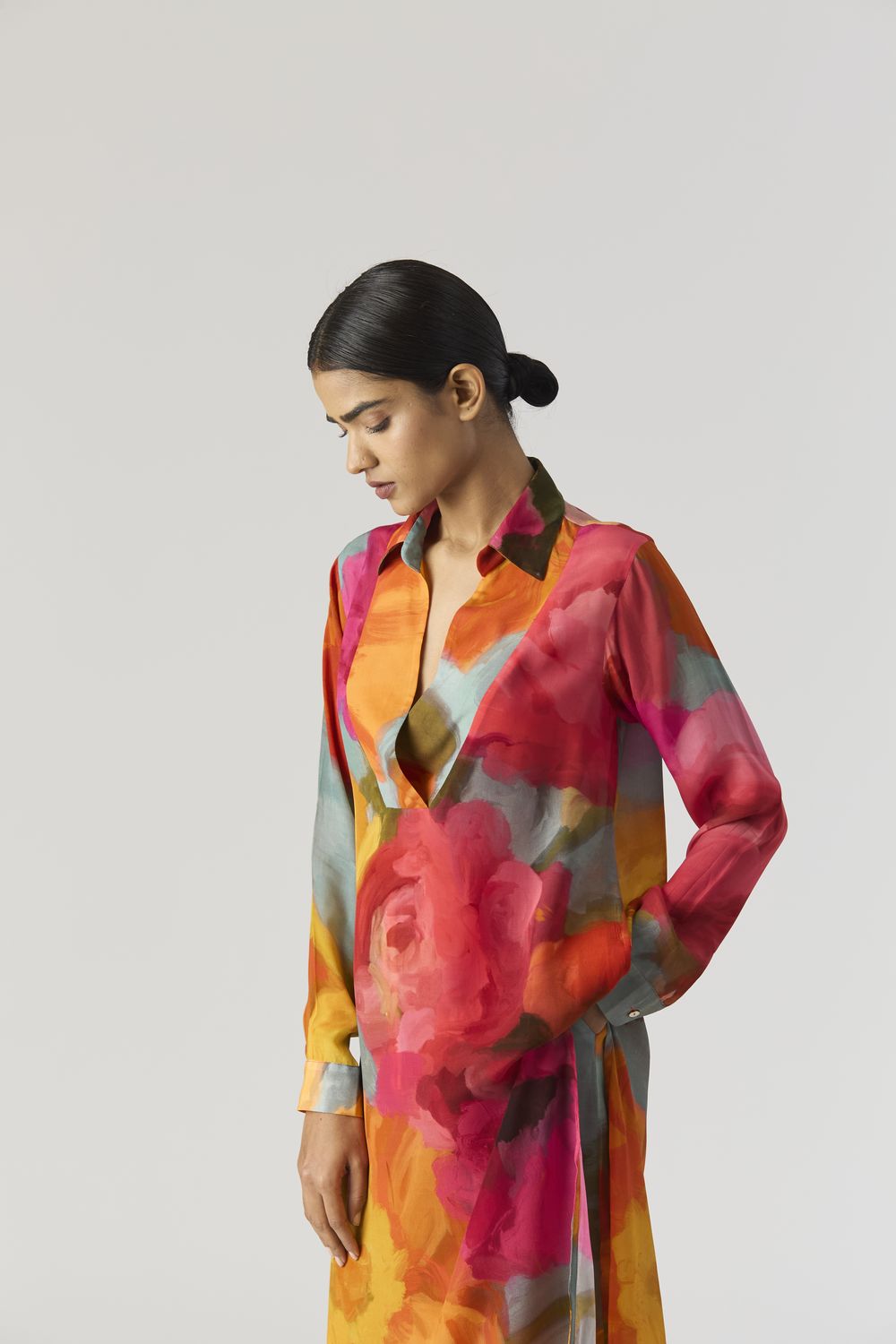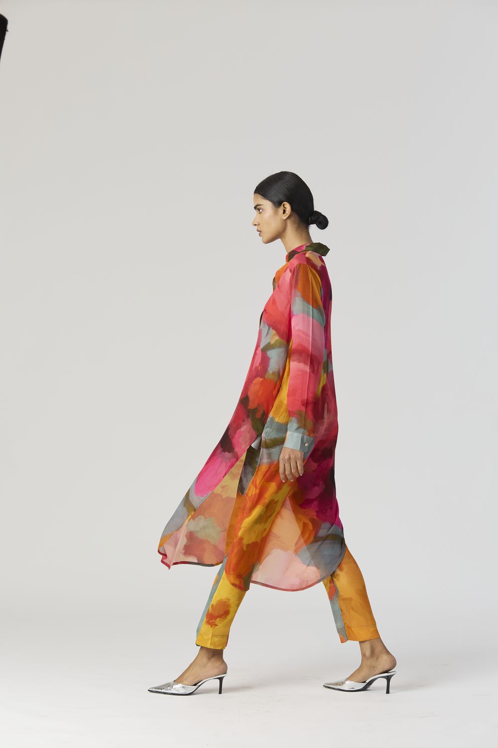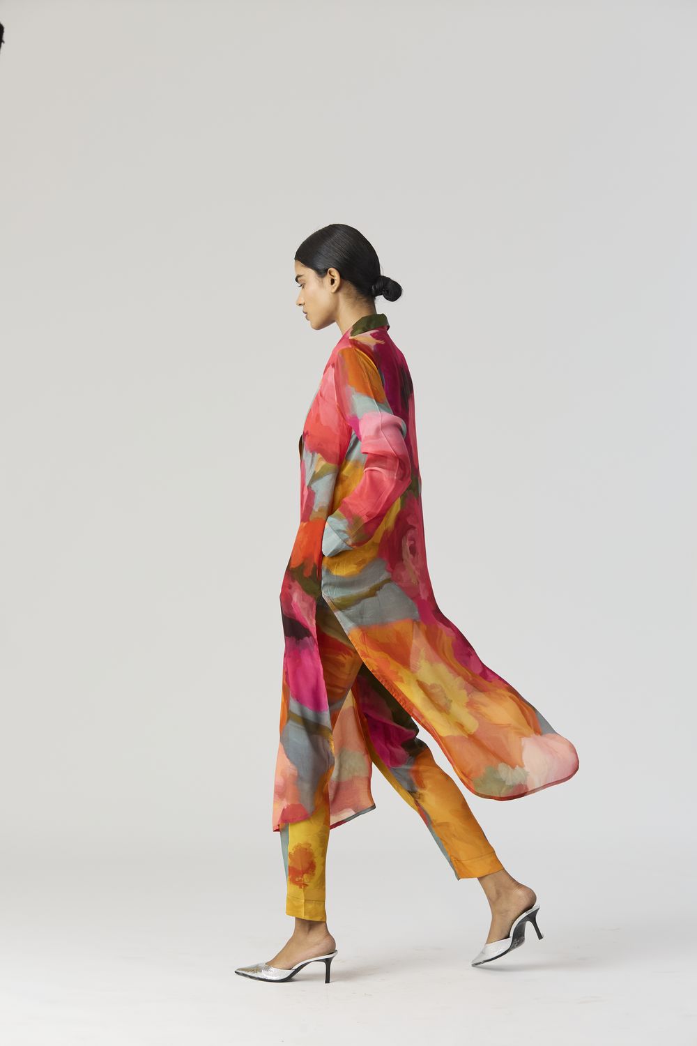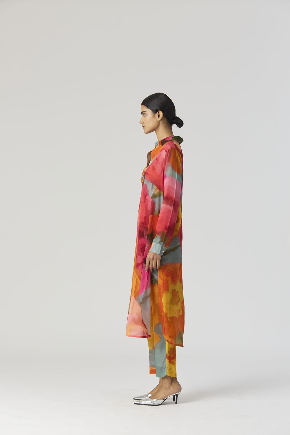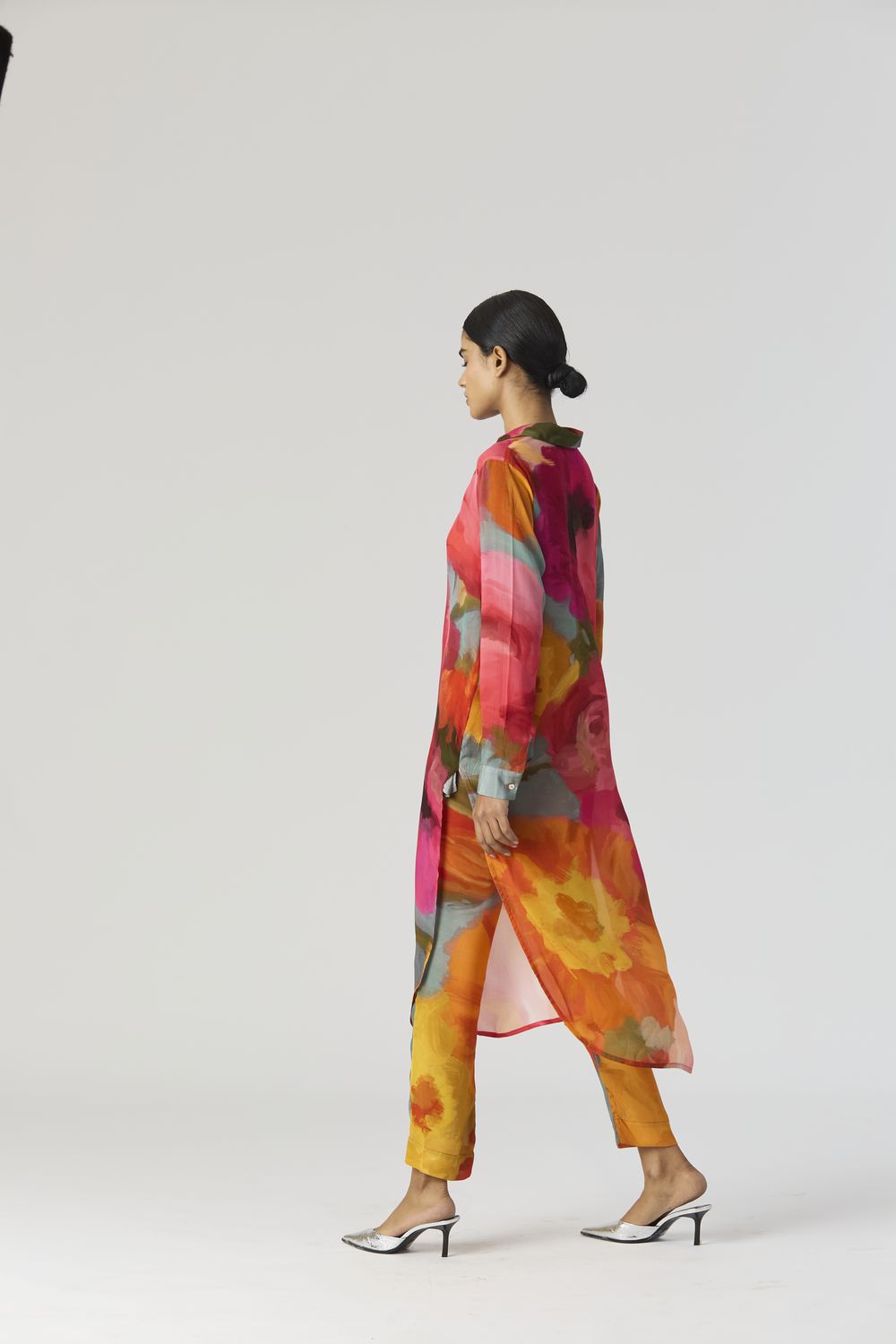 A relaxed fit Kurta and Pant crafted in the Veronica print carefully printed on Crepe. It has pockets and comes with pants in the same print.