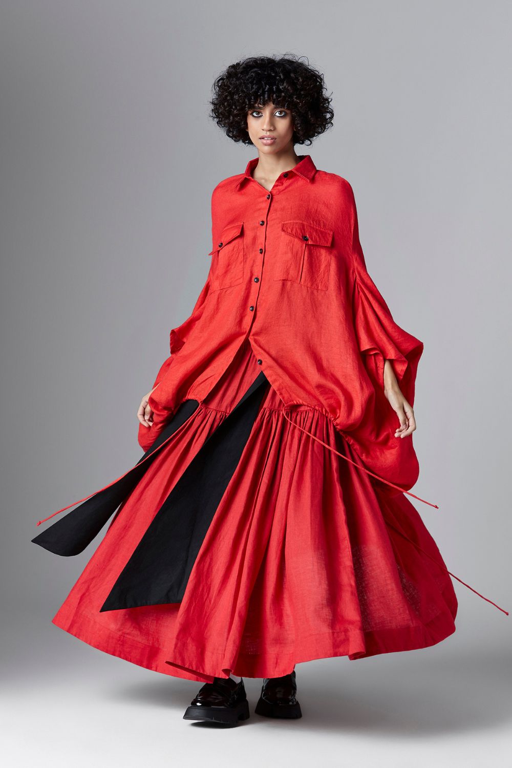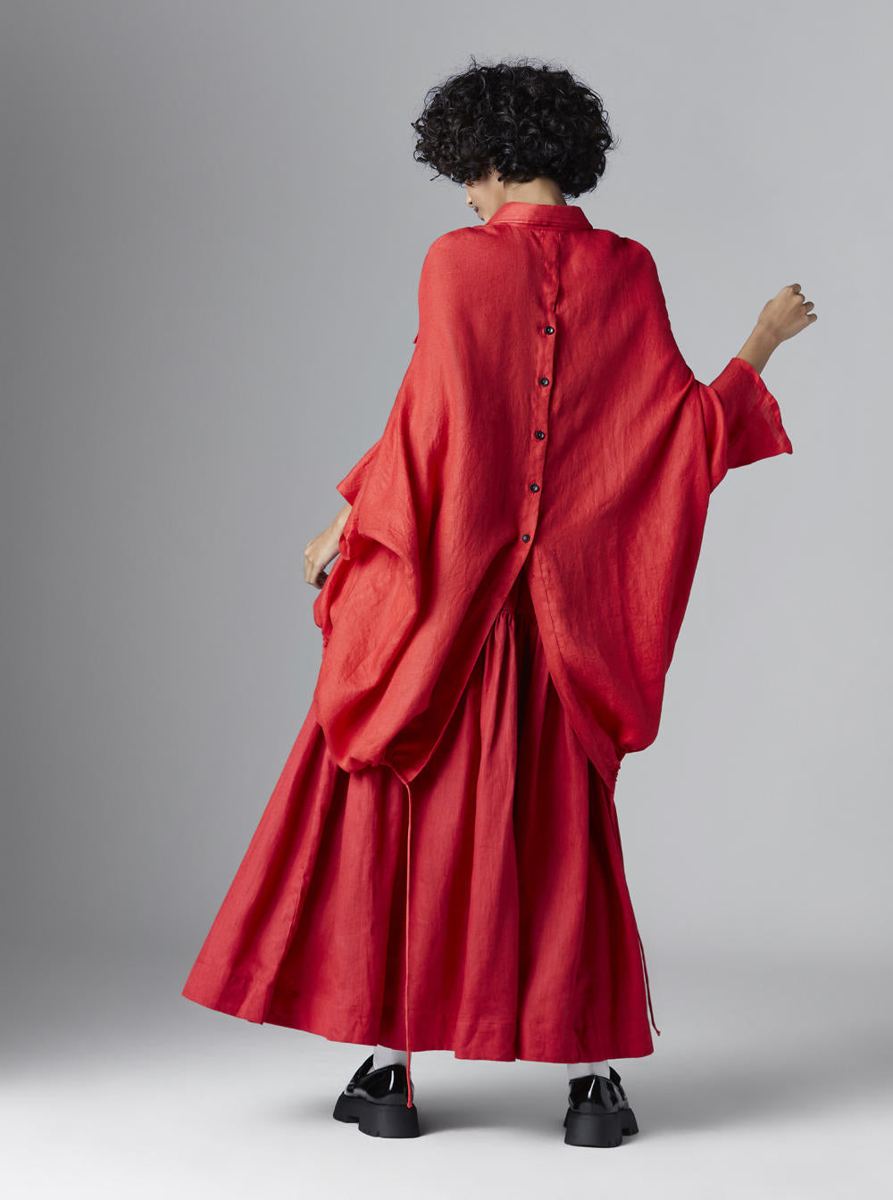 Chola’s universe begins with thoughtful materials. Recycled cottons, post-consumer fabrics, and free-cutting techniques come together in a kind of mindful choreography—one that honours form without creating waste, and prioritises movement over rigidity. This is clothing that feels lived-in yet architectural; pared-back yet quietly avant-garde.