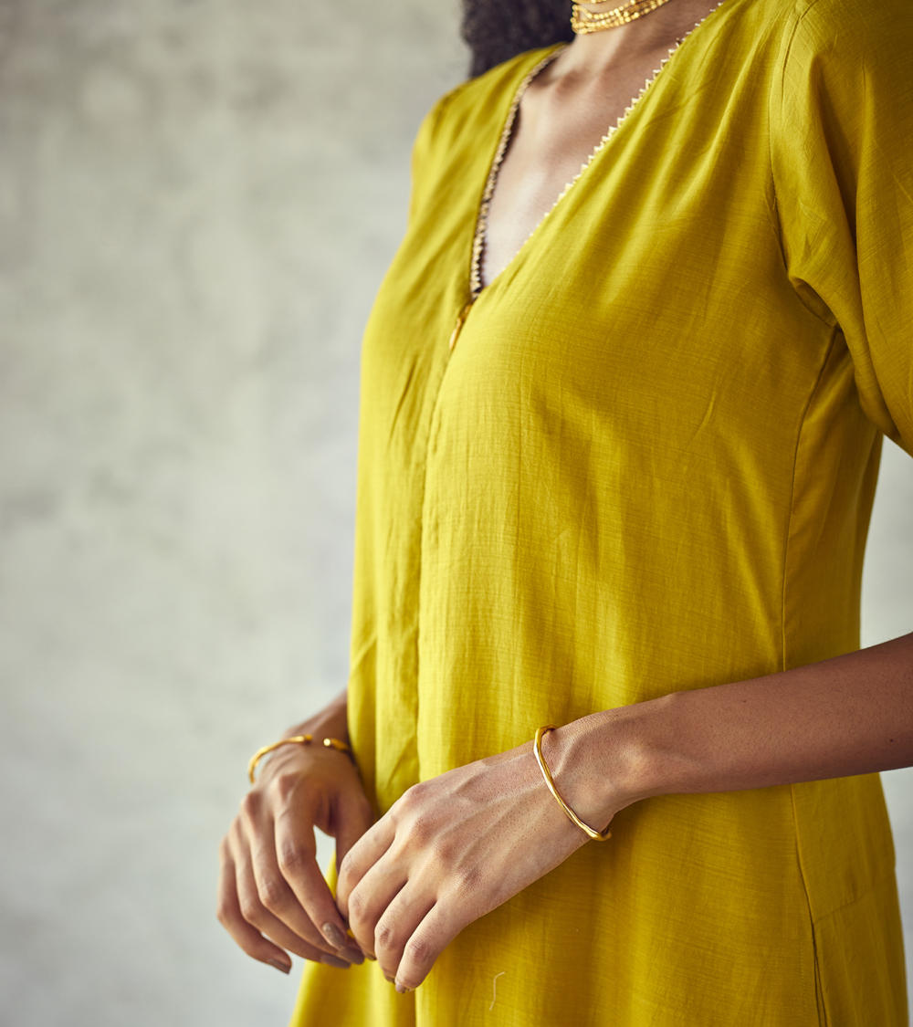 Each piece is grounded in India’s textile heritage yet designed for a woman who moves easily between cultures and climates. The brand’s commitment to homegrown cotton, artisanal processes, and clean, breathable shapes has made these garments not just beautiful, but deeply wearable.