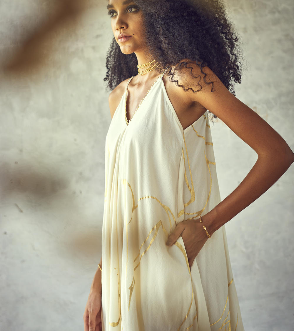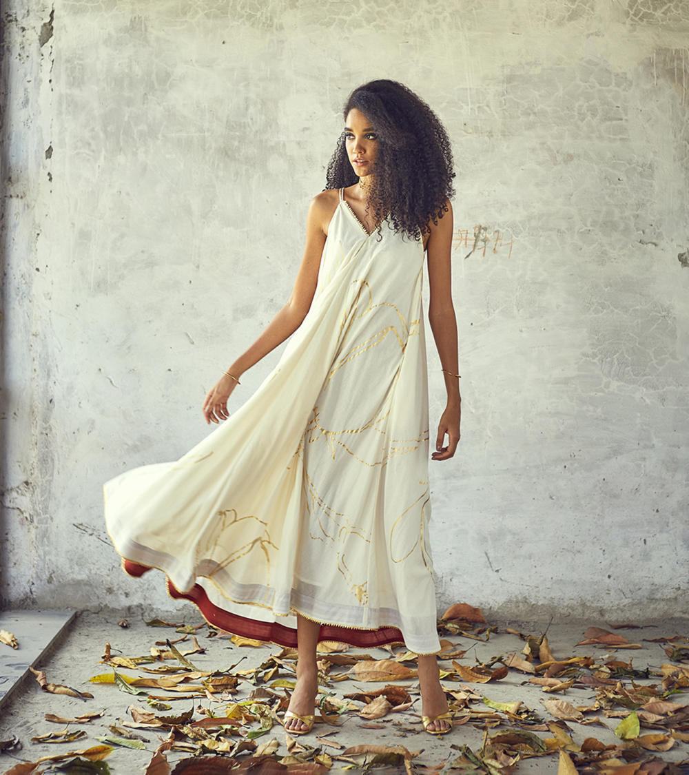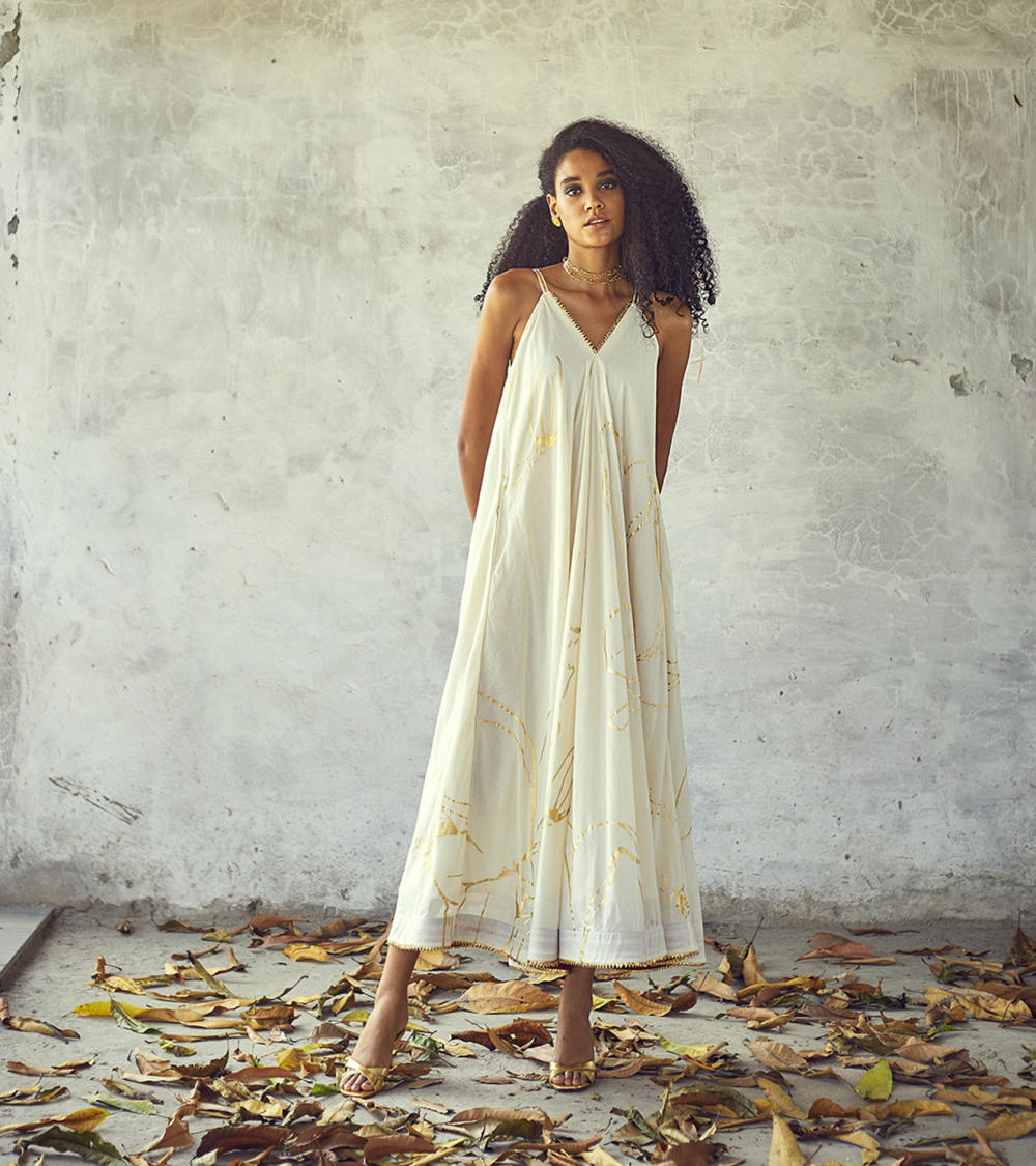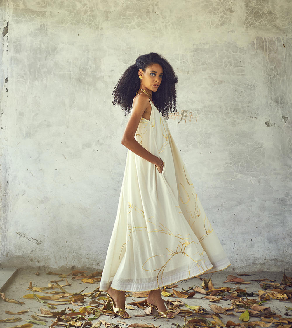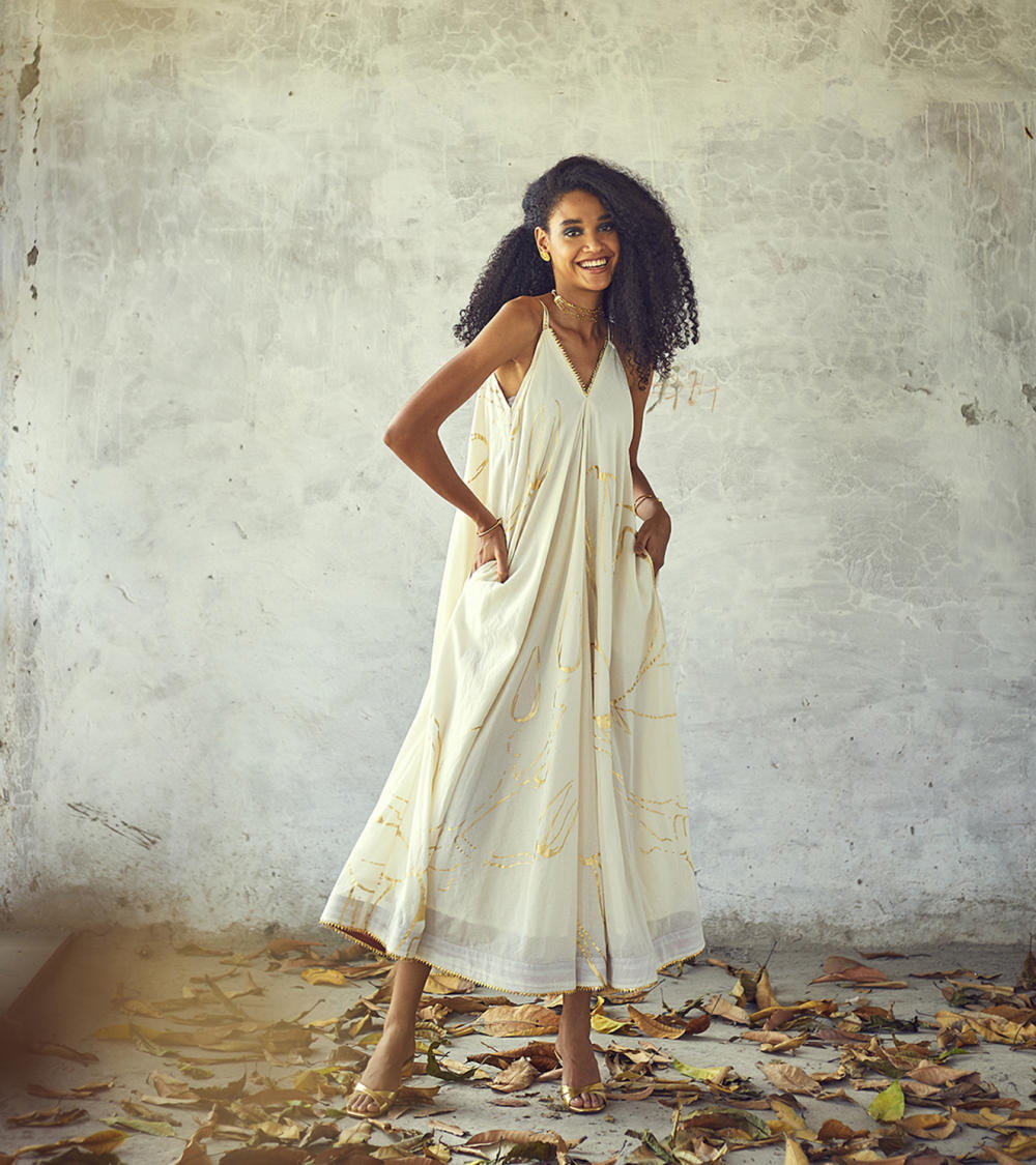 Each piece is grounded in India’s textile heritage yet designed for a woman who moves easily between cultures and climates. The brand’s commitment to homegrown cotton, artisanal processes, and clean, breathable shapes has made these garments not just beautiful, but deeply wearable.