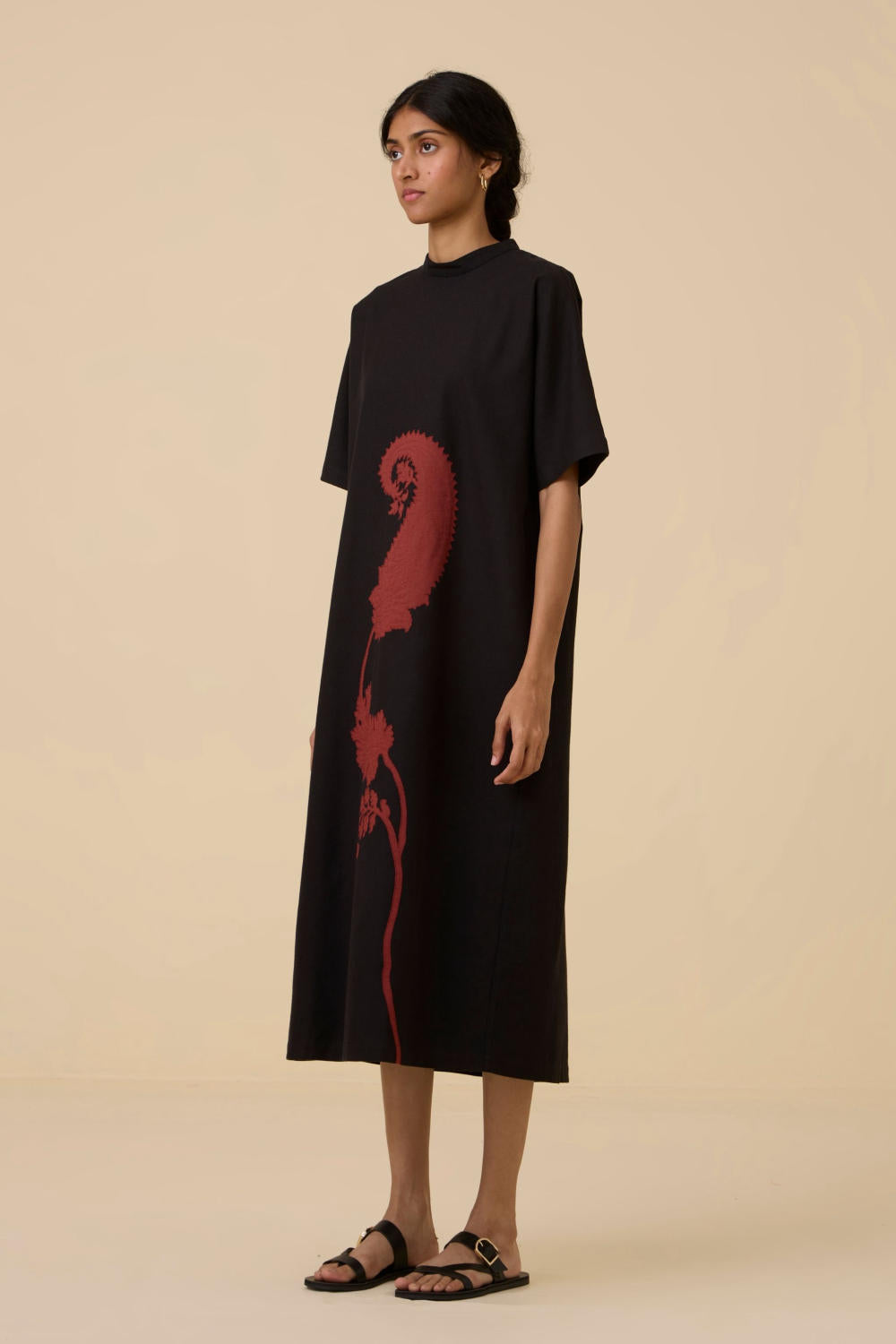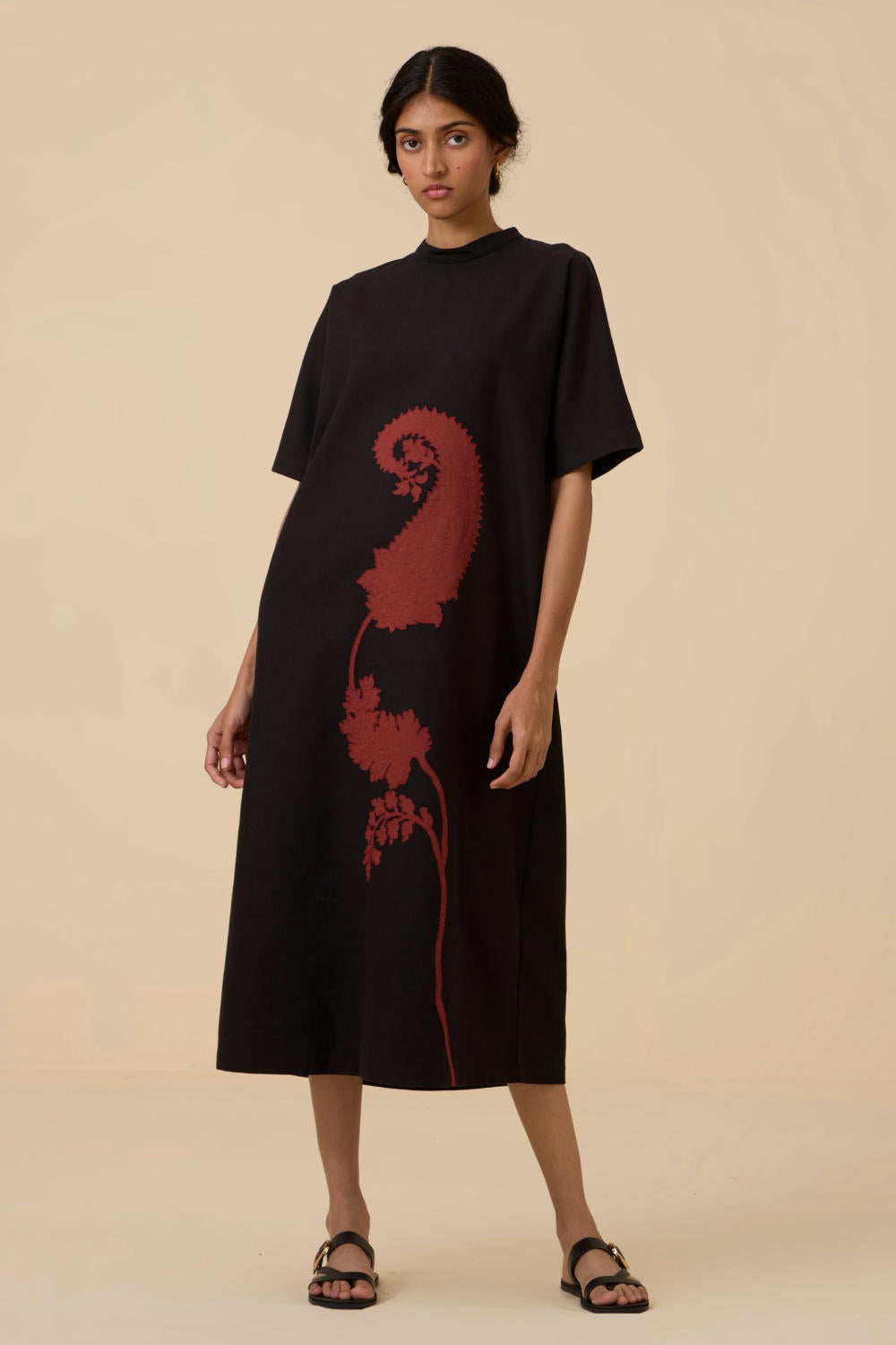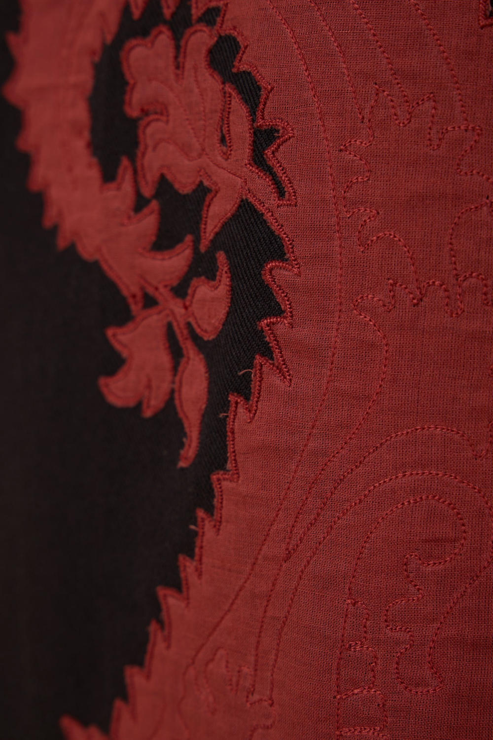 A modern pheran in wool cotton with signature hand appliqué. Drop sleeves. Round neckline. Back button closure. This garment is hand embroidered in The Summer House studio. Note: Slight differences in embroidery speak to the hand processes involved.