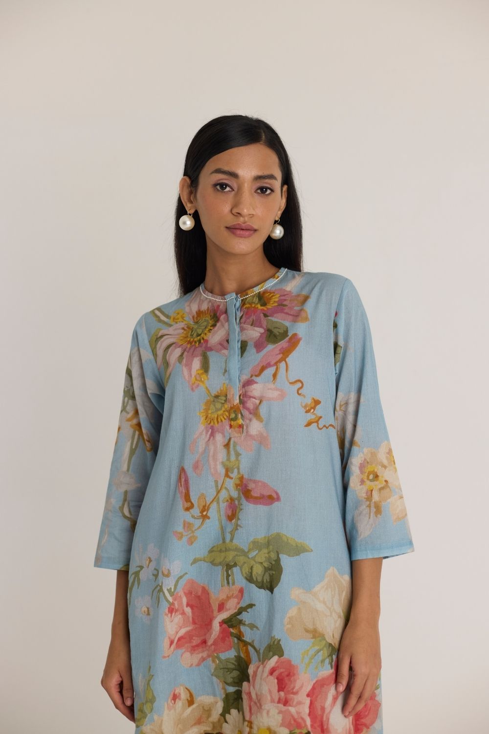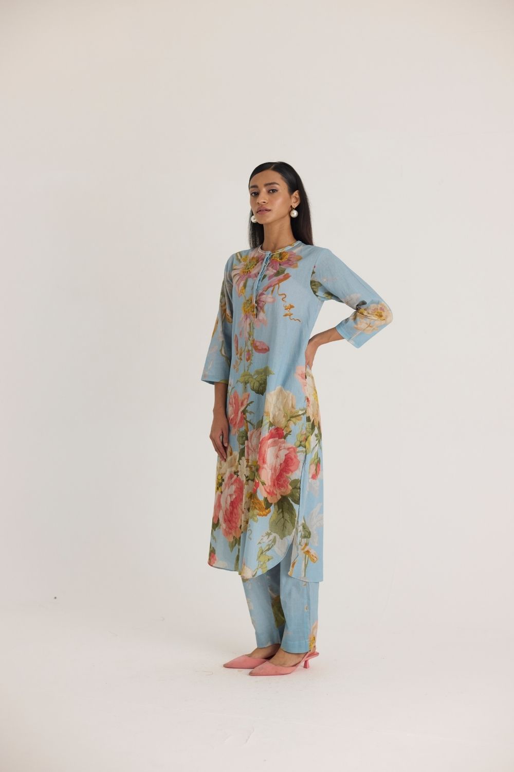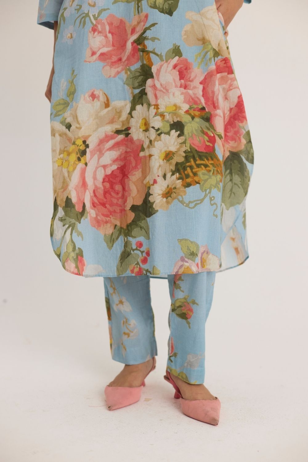 Step into effortless elegance with this beautifully crafted sky blue kurta set, adorned with delicate floral prints that exude grace and charm. Designed for the modern woman who appreciates comfort and style, this ensemble is perfect for both casual gatherings and festive occasions.
