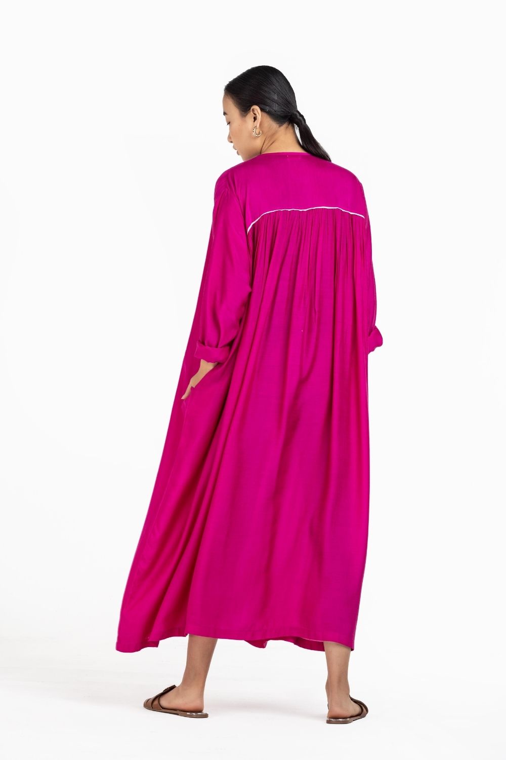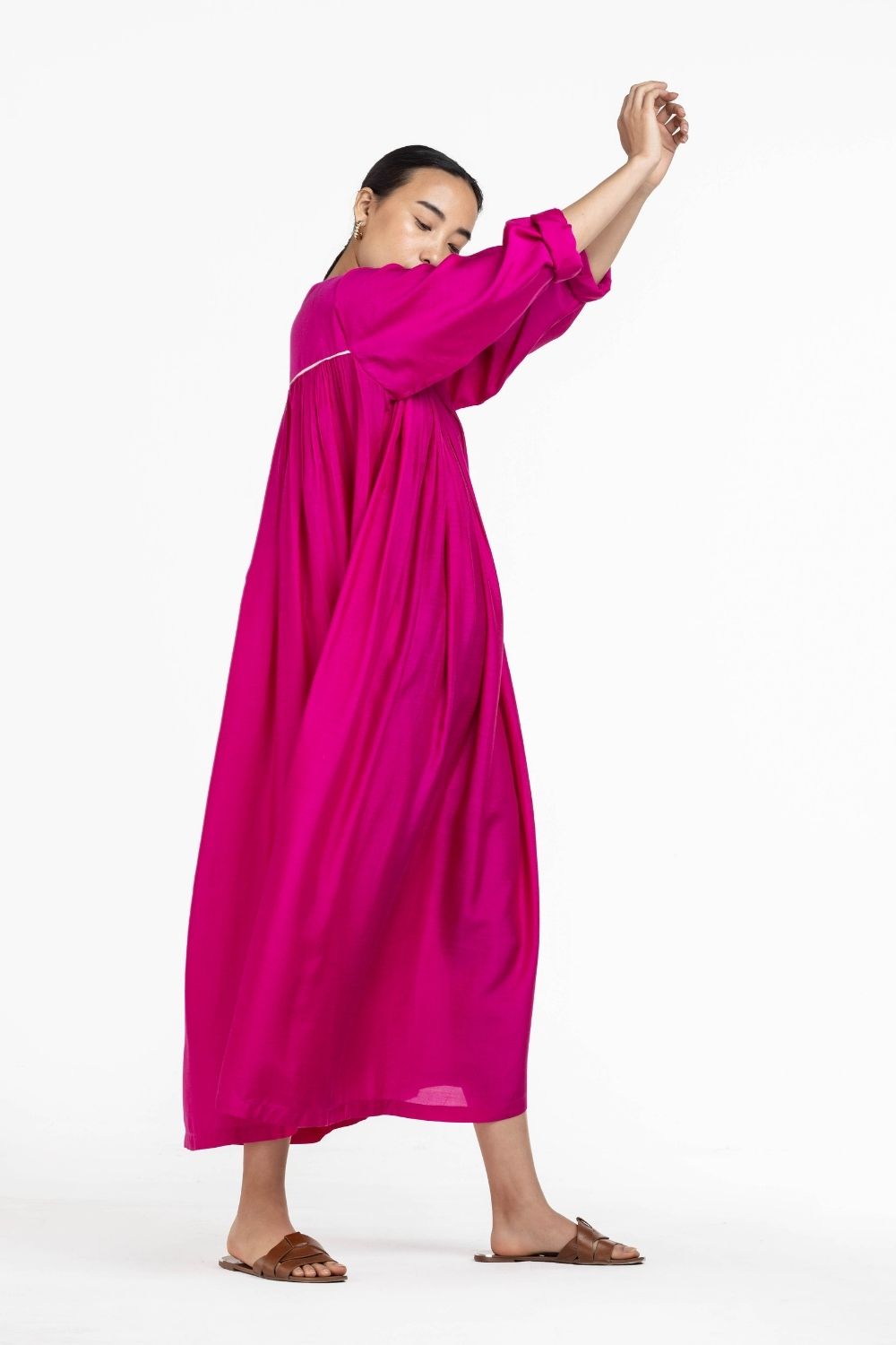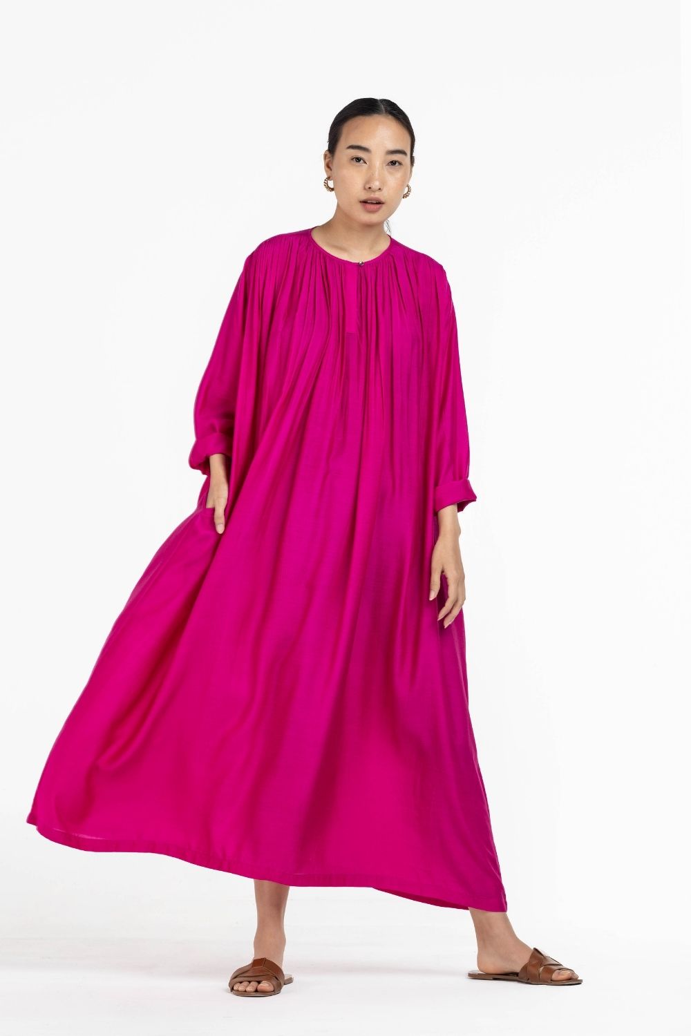 GATHER NECK DRESS HOT PINK