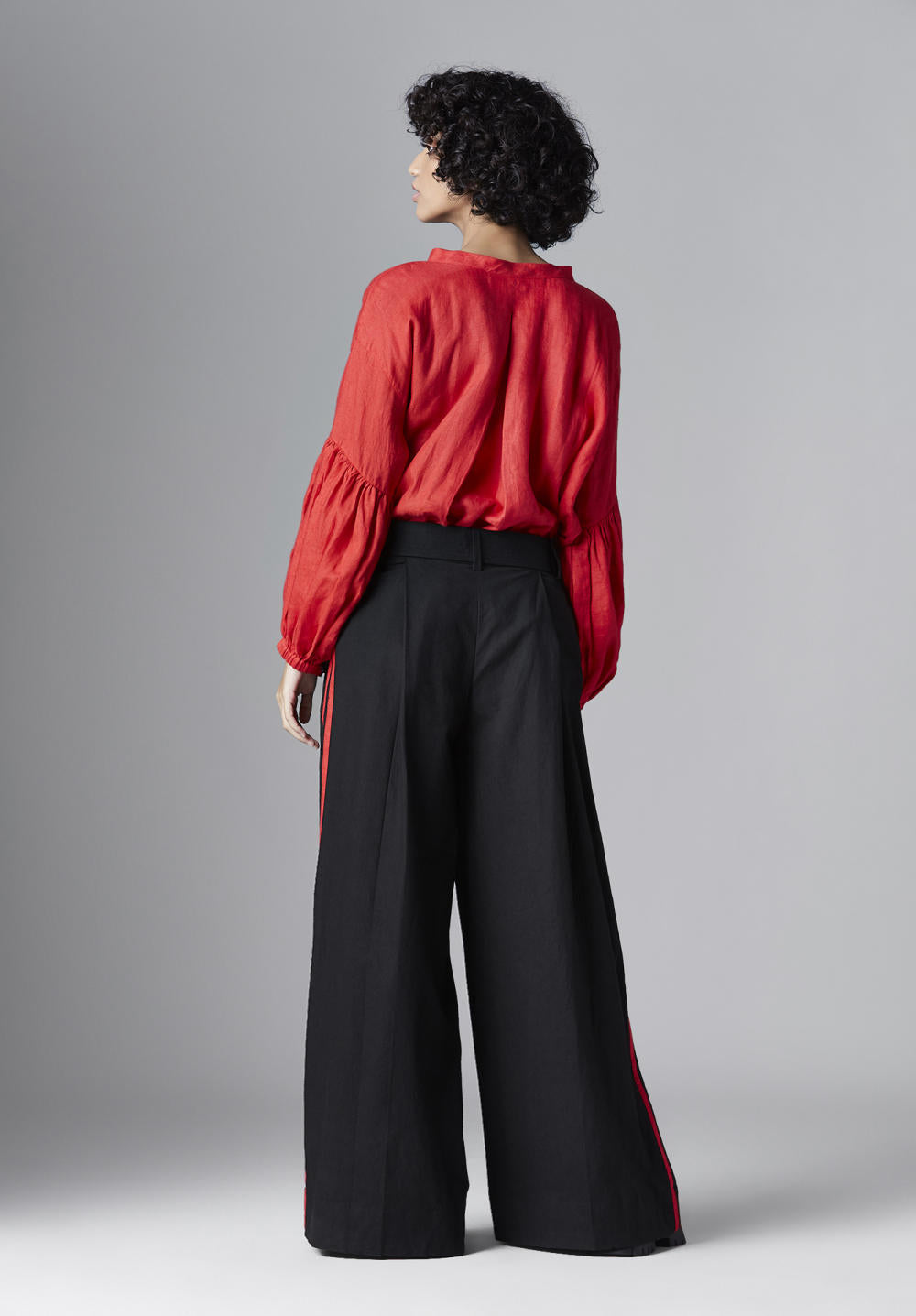 PLEATED TROUSERS WITH DOUBLE SIDE PANELS AND A BELT