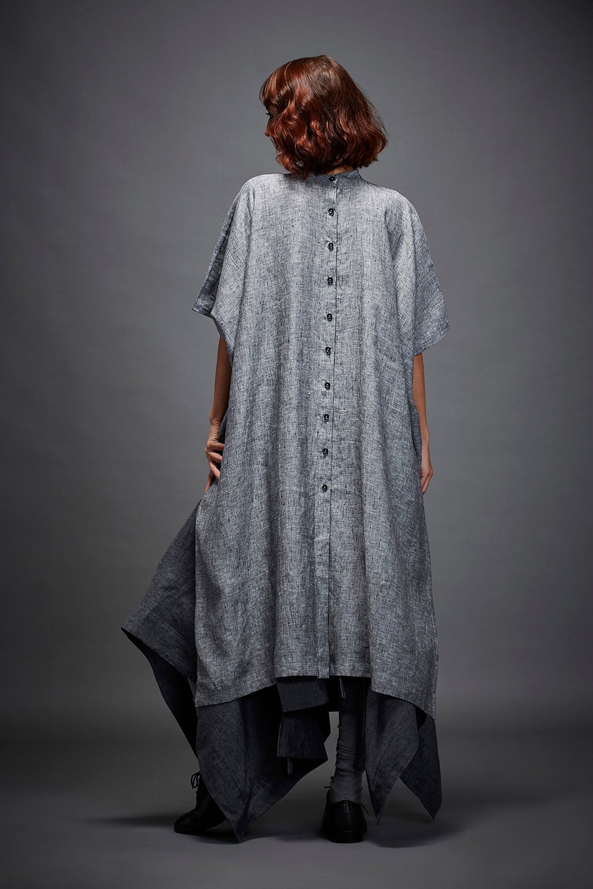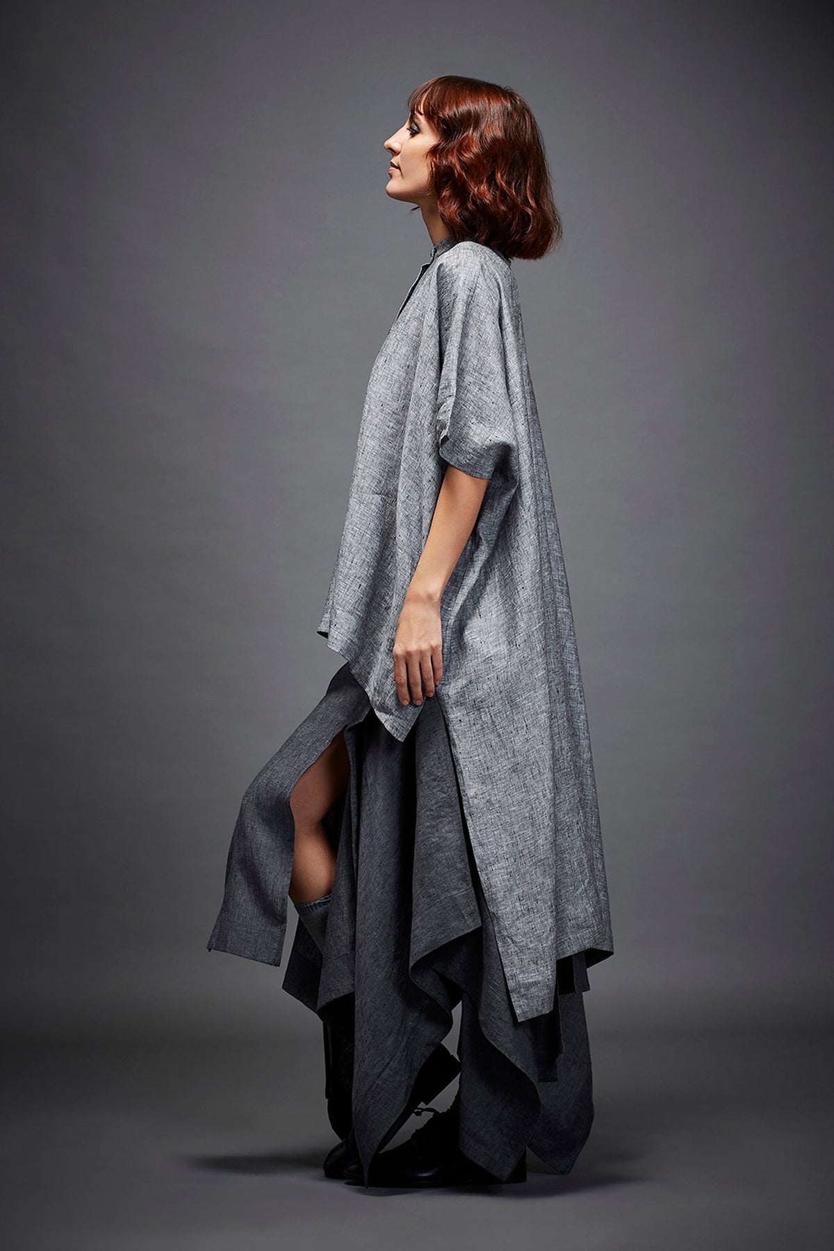 TWO PIECE HIGH LOW DROP SHOULDER SHIRT WITH BAND COLLAR