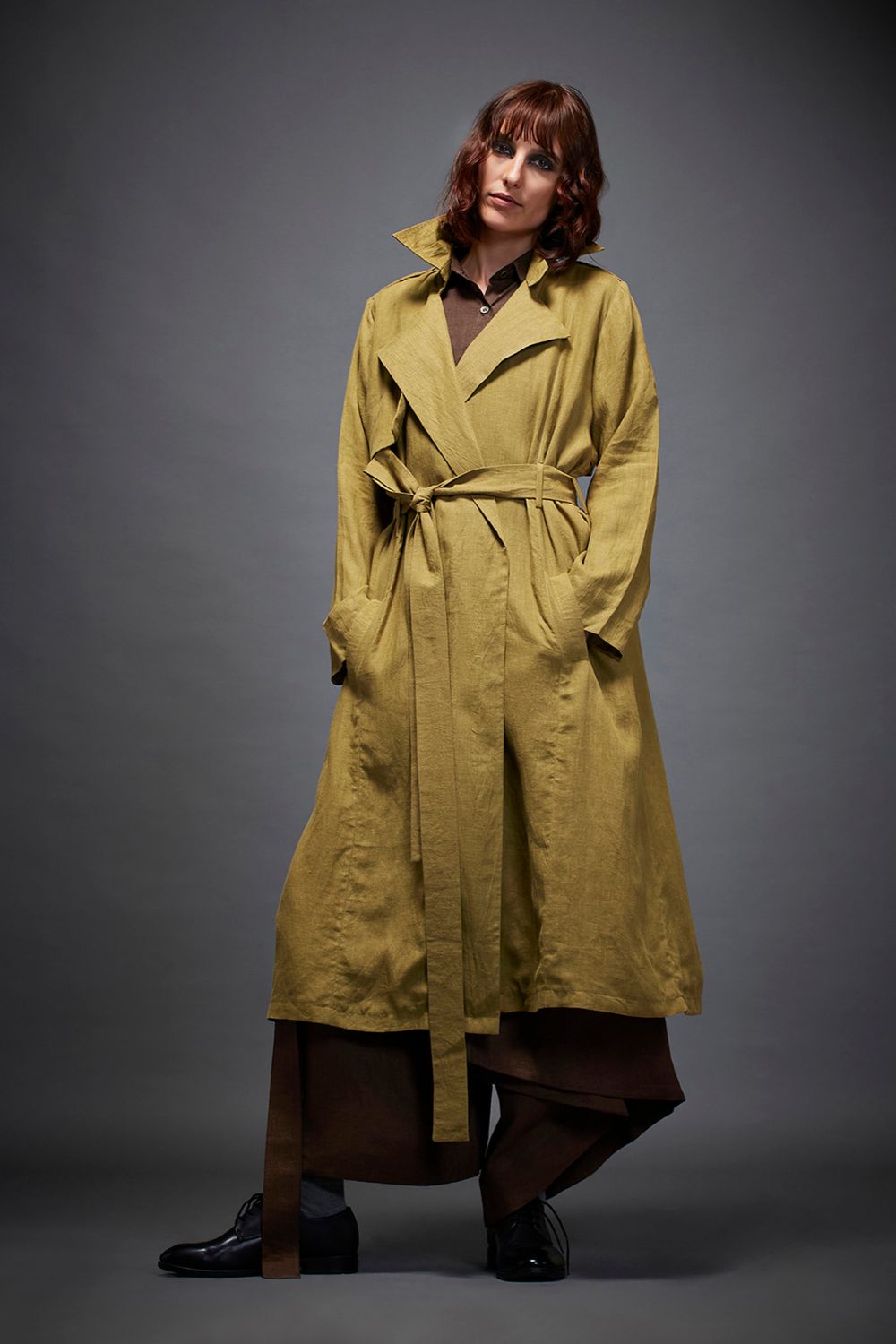 TRENCH JACKET WITH WIDE LAPELS, FULL SLEEVES, BACK SLIT AND A TIE UP BELT