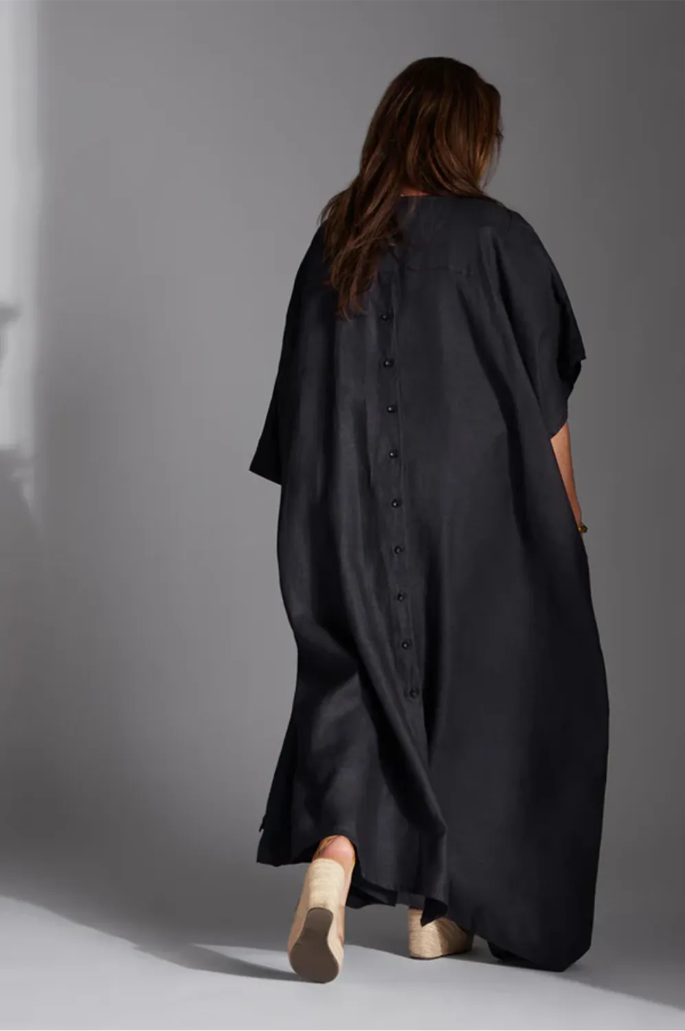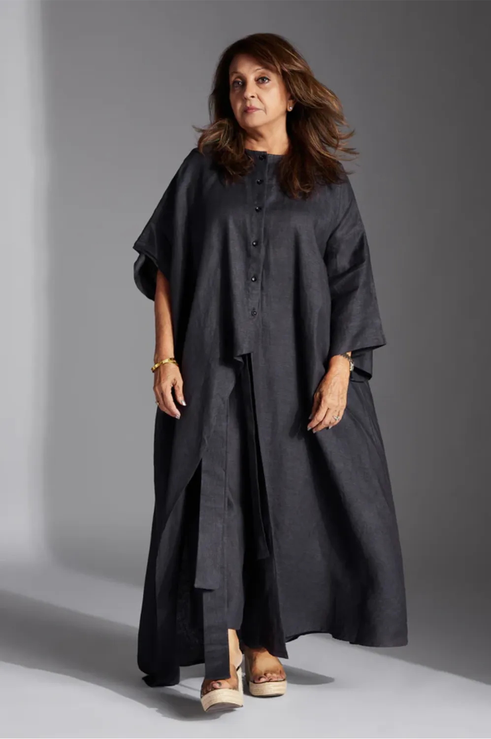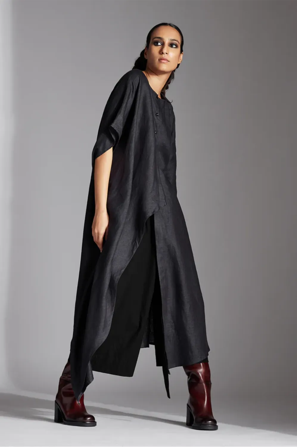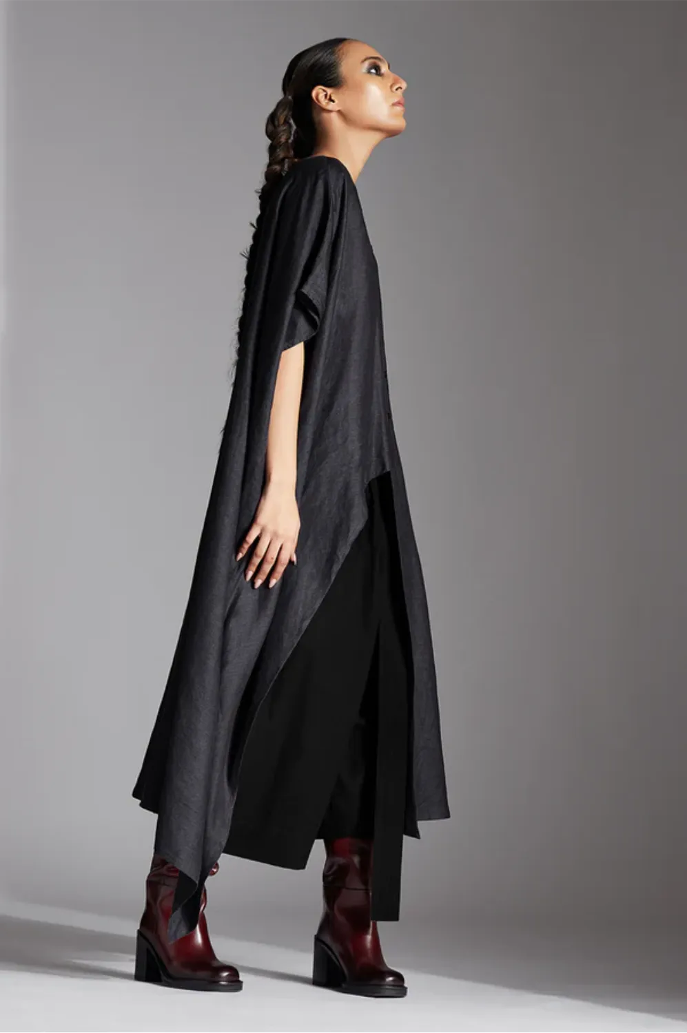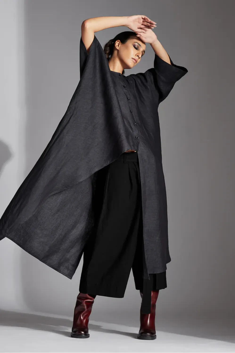 The Nysa shirt features a half kaftan style with band collar and front and back button down placket.
