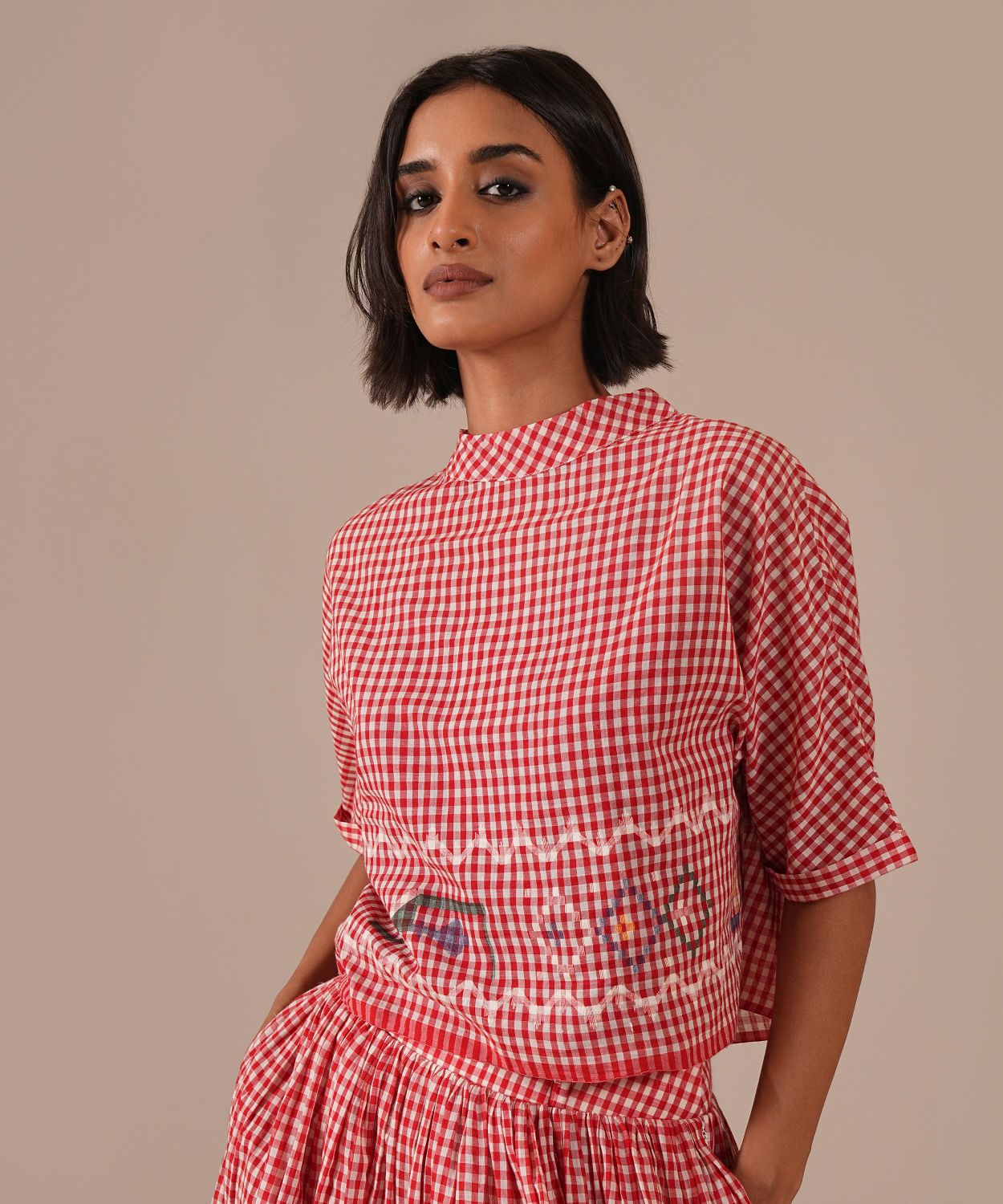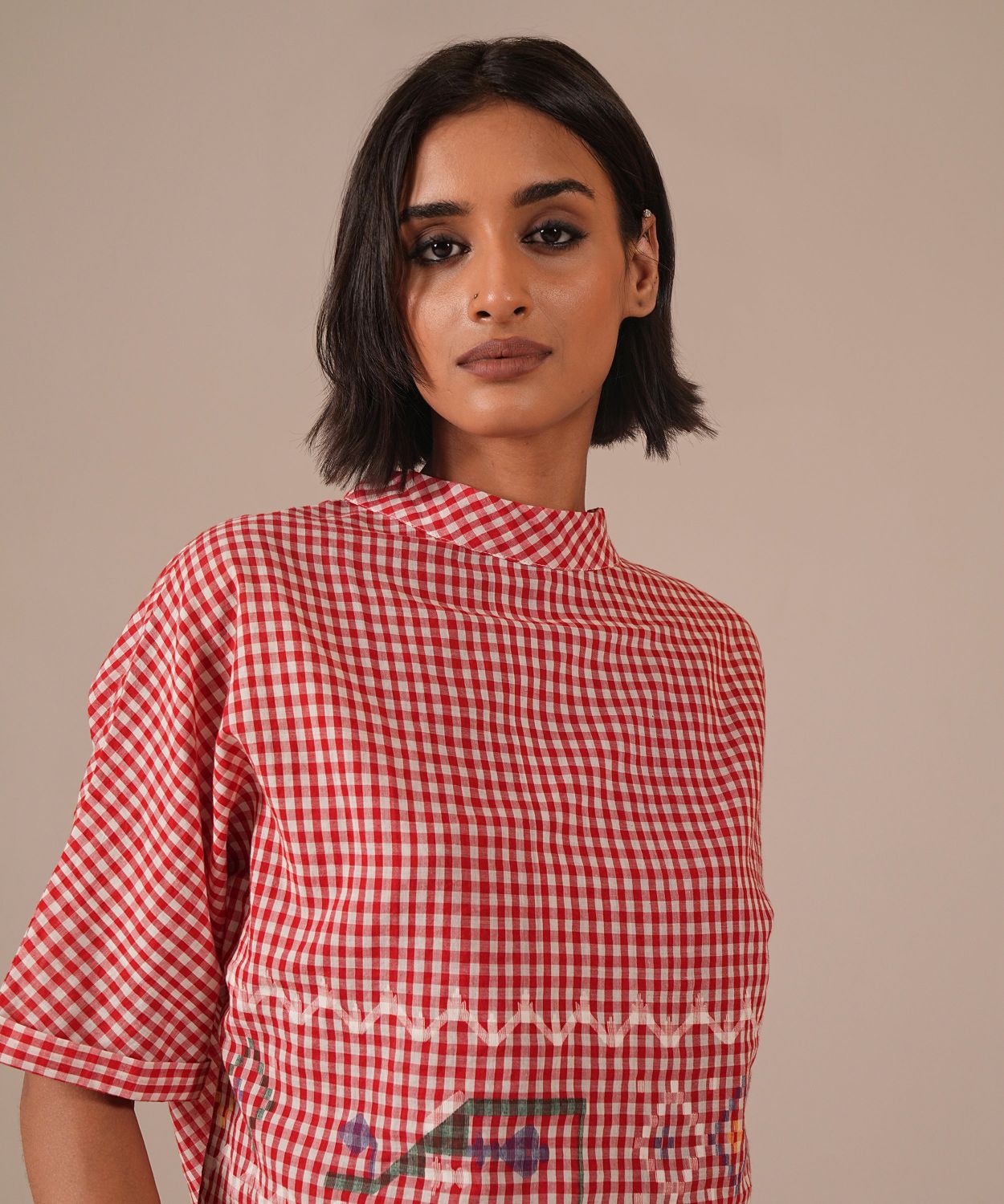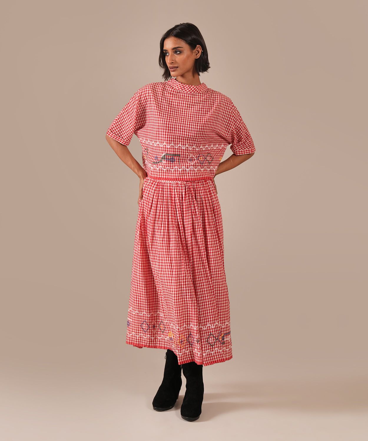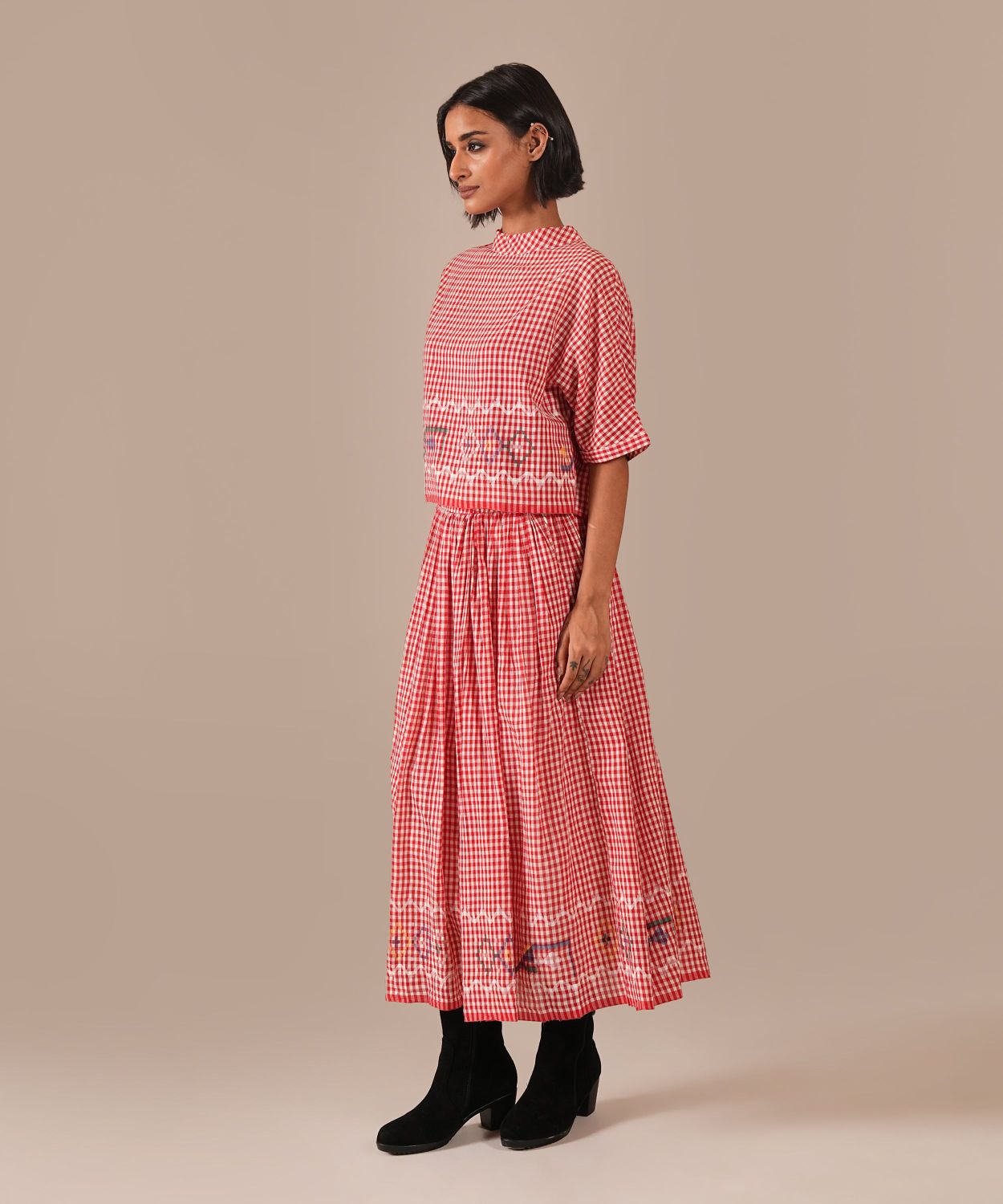 A classic jamdani co-ord set featuring jamdani gathered skirt with side pockets and a boxy top is a perfect choice for your wardrobe.