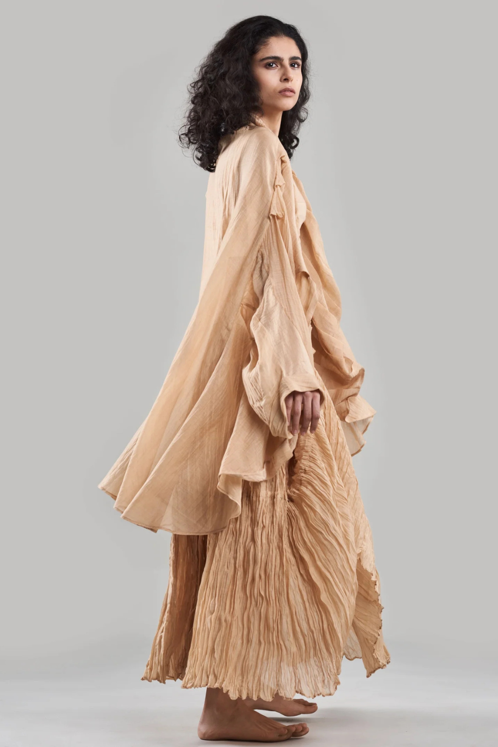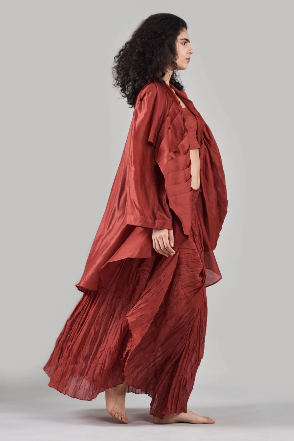 The brand’s silhouettes are thoughtfully designed to flow with you, not against you. From versatile dhoti pants that transform into dresses to garments inspired by ancient techniques like kantha handwork, Ituvana redefines how clothes can move with the rhythms of life.