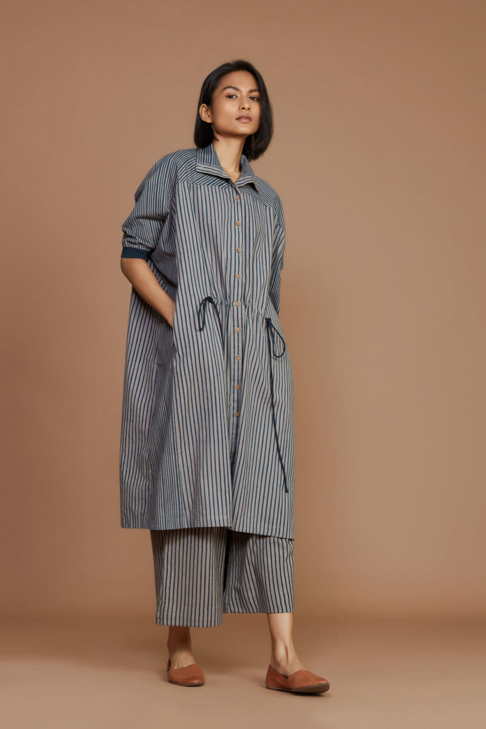 This smart set of High collar kaftan is a perfect bold yet comfortable look for your closet. It has an Easy fit with drawstrings at the waist gives a beautiful cinched look. A versatile set which can be styled separately.