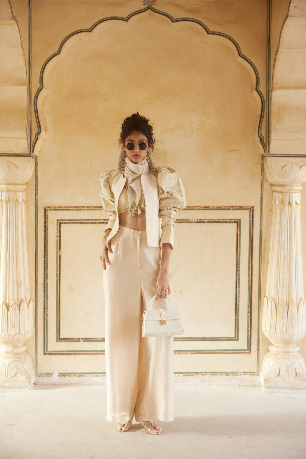 PH-2318 04 Jacket Blouse Trouser Scarf Set-Ivory