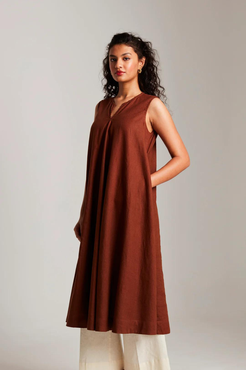The flared sleeveless kurta set, perfect for a relaxed yet stylish look for any occasion. Accentuated with subtle beadwork on the neckline, it comes with side pockets! Best paired with our comfortable palazzo pants.