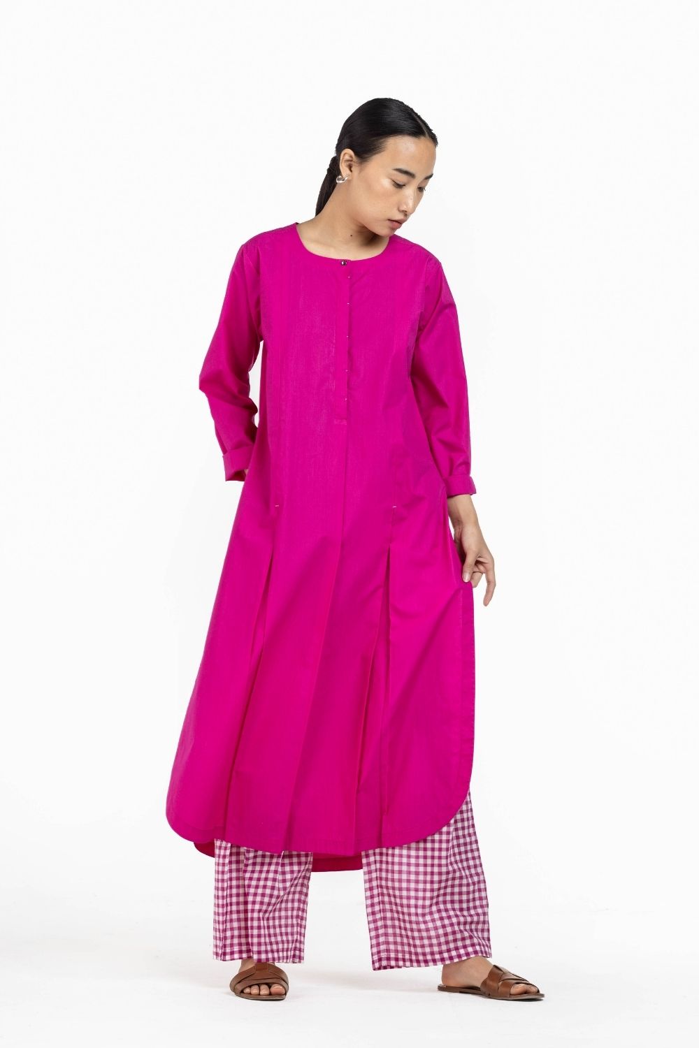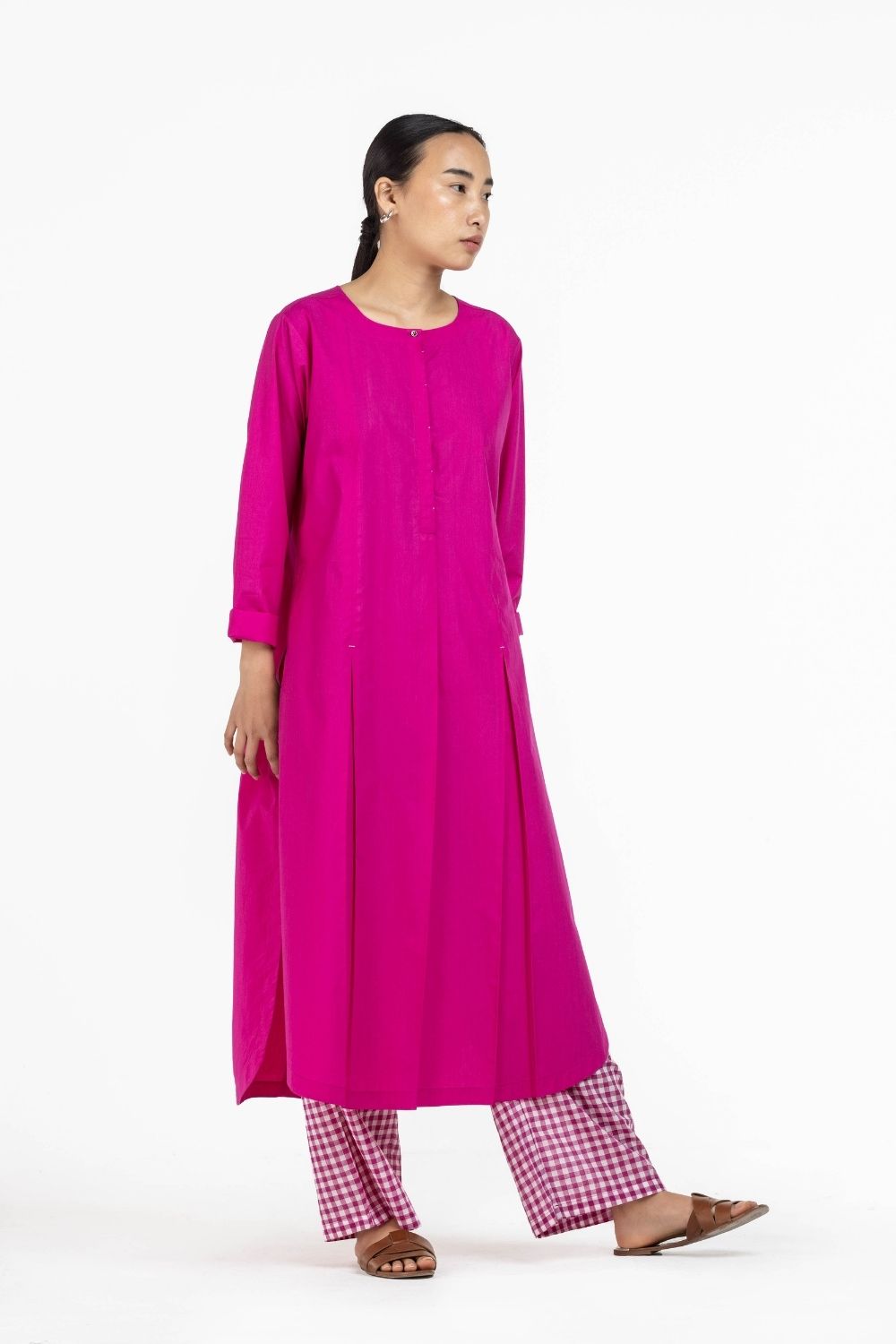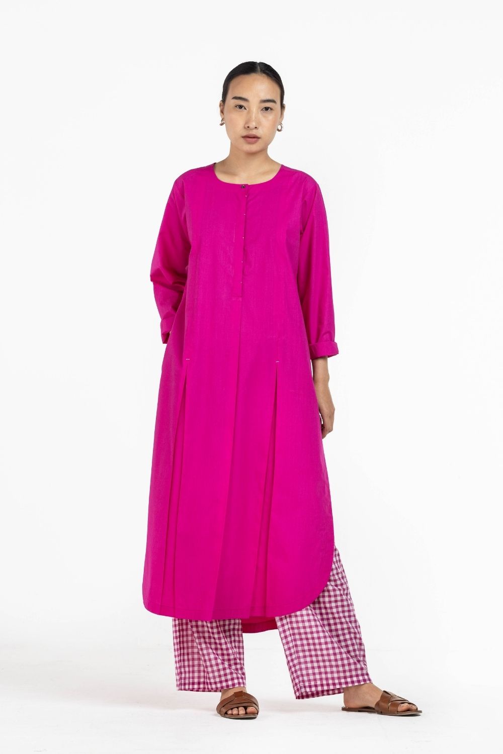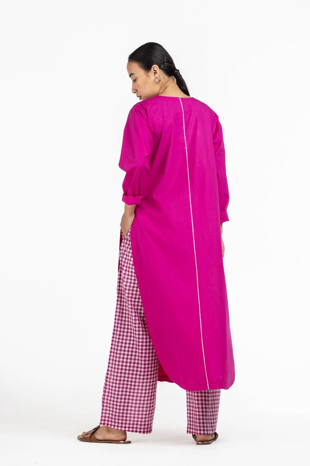 Co-ord Set of 2 contains:��U HEM KURTA HOT PINK & BROAD BOTTOM HOT PINK CHECK